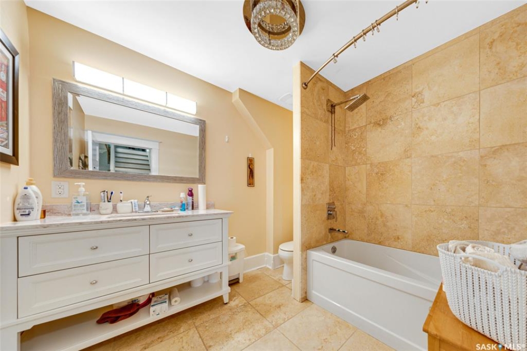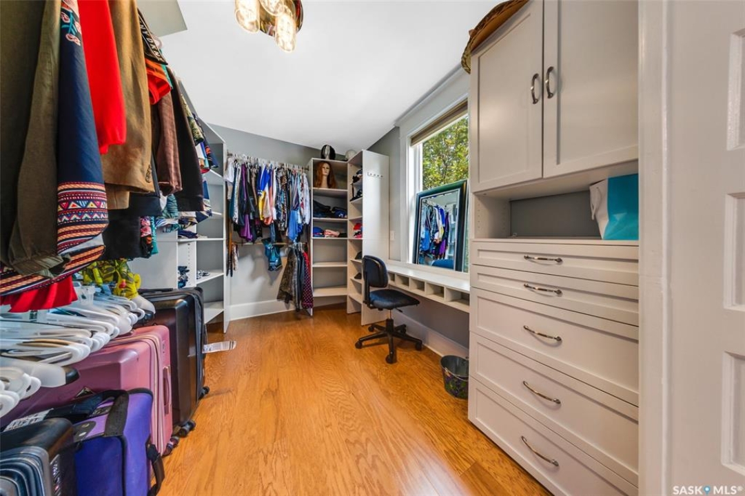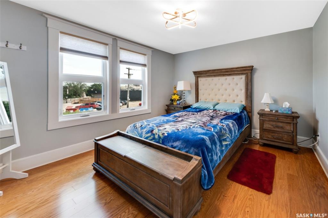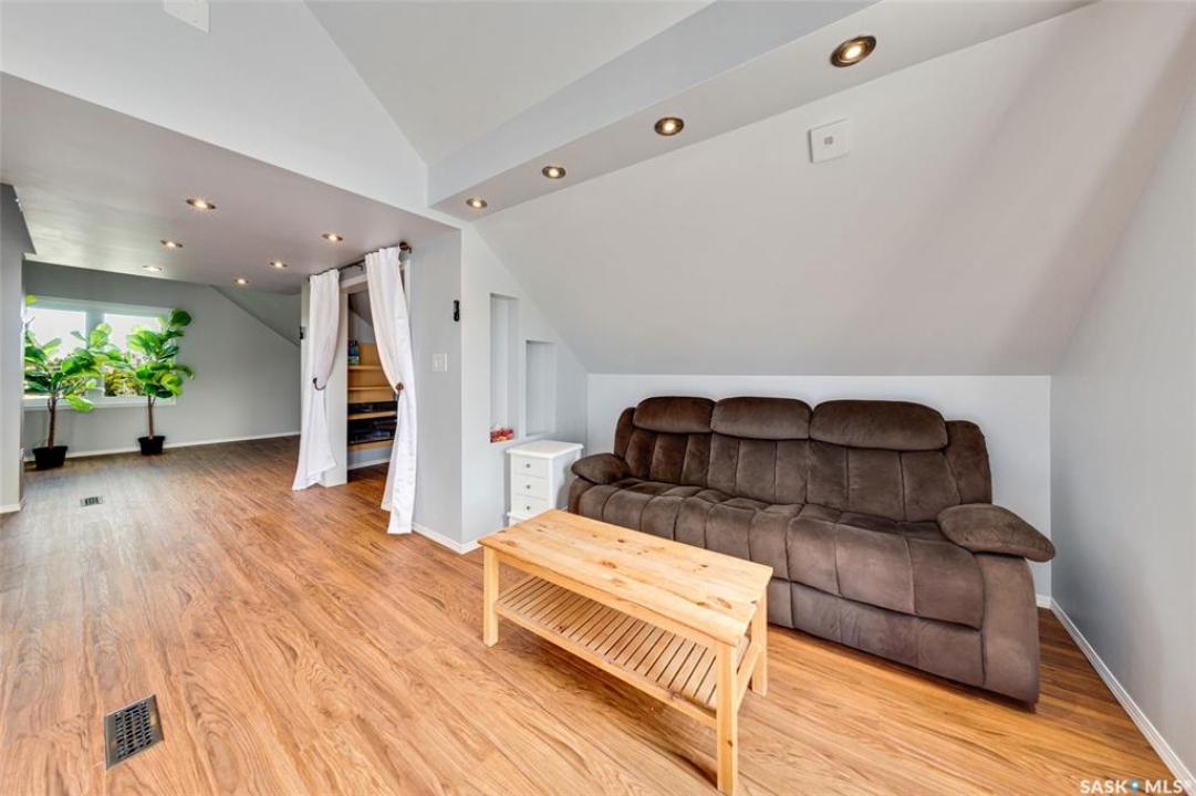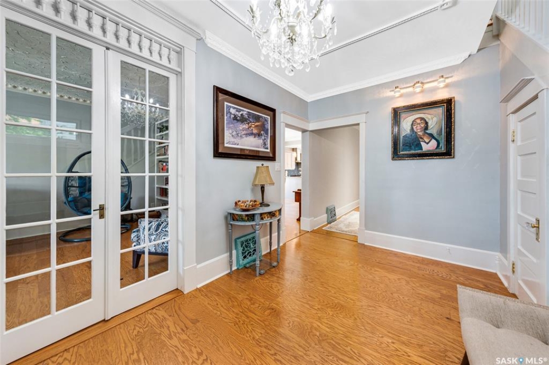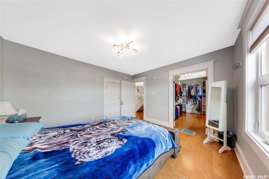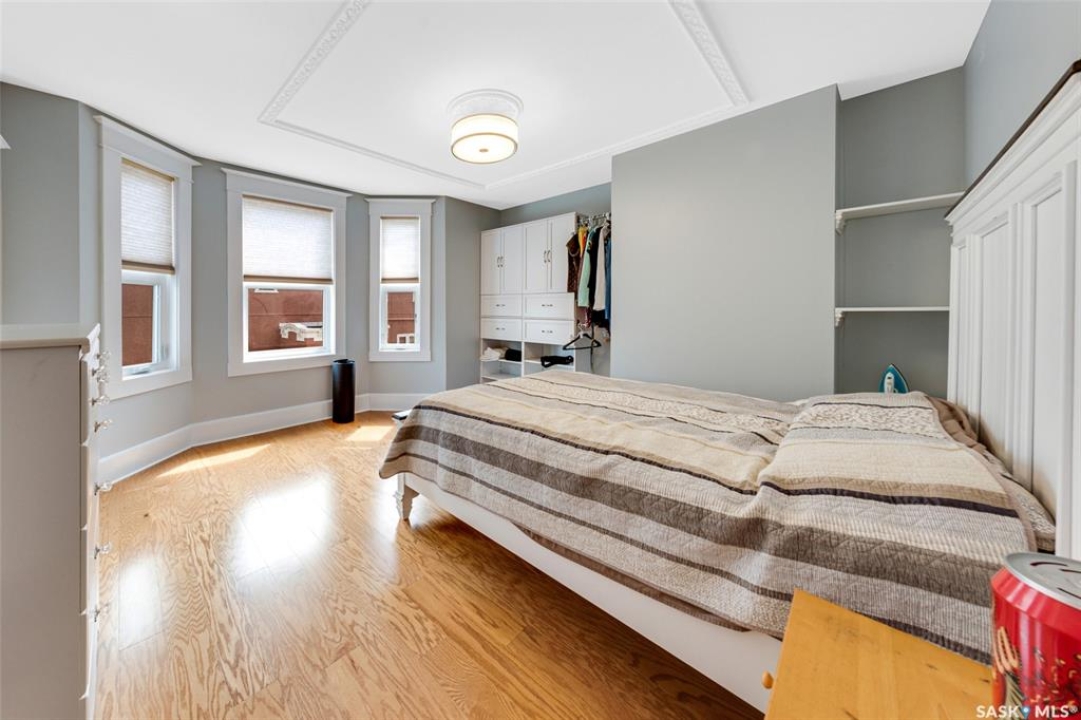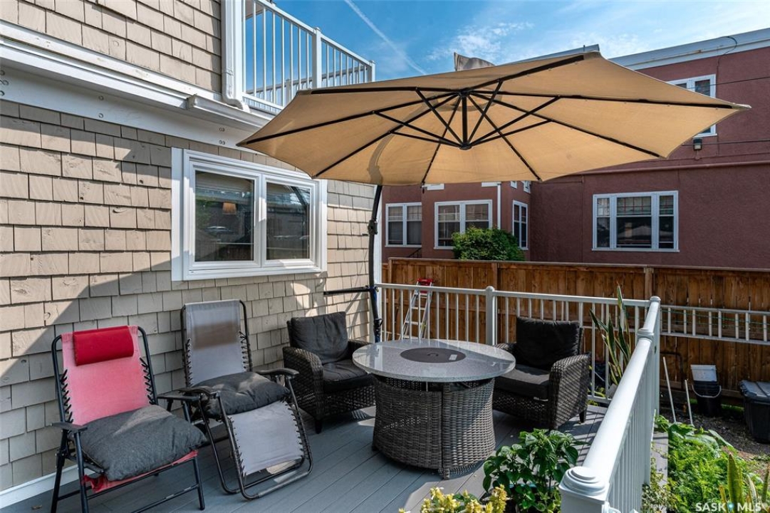 Just steps from the Saskatchewan River, tucked into the historic Nutana Neighbourhood, this Character 1911 home has been lovingly restored for clients who appreciate the history and location of this property. This spacious home has a completely renovated kitchen with quartz countertops, new cupboards and backsplash, under counter lighting, all new appliances, including a newer large wine and beer fridge and a nice open floorplan flowing through to the dining room and living room. An office space and main floor laundry are a great convenience on the main floor. Four- piece bathrooms on each of first two floors and half bath on third floor are convenient. Three large bedrooms on the second floor, one with a very large walk-in closet with window. (Could be used as a nursery.) One of the bedrooms on the second floor can also be used as a Sunroom. A new staircase leads to the third floor where the primary bedroom could be located. This room could also be used as a bonus room or very large office. Owner has replaced much of the crown molding to return this property to its original glory. There are South facing decks off the second and third floor as well as a back deck off the kitchen, also South facing. Most windows are new. Furnace, water heater and reverse osmosis recently changed. New paint everywhere and new engineered hardwood flooring make this is a turnkey property (Vinyl planking on the 3rd floor). Arches, tall baseboards, bay windows and glass doors complete the historic look of this home. This property has a completely fenced in backyard with board sidewalk leading to parking off the back alley. There is room for a garage. The owner has also created a small oasis of gardening boxes tucked around the back yard which is drenched in sunshine most of the day. Come and visit this beautifully renovated historic home, you'll be glad you did.