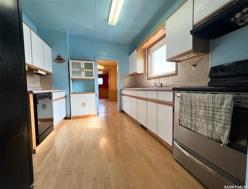 Just a quick walk from Riverside Park with tennis courts, walking trails, a spray park, green space galore and O'Rudy's Creek House, this 1.5 storey 2 bedroom, 1 bathroom 1146 sq/ft home also features a spacious, partially-fenced yard and a detached garage. Inside the front door, you will enter the living room with hardwood floors, a bright window, and a sightline through to the dining room. There is a good-sized bedroom off of here with a large closet and mirrored closet doors. Moving forward you will enter the dining room which is a comfortable central space for a full dining set. Left from here is the 2nd bedroom, and to the right is the sizeable 4-piece bathroom with ample storage cabinetry and loads of potential. The galley-style kitchen features black and stainless steel appliances including a dishwasher, a comfortable amount of cabinetry including a coffee bar area, there is laminate flooring and a bright window over the sink looking out to the side yard. Tucked beside the kitchen is the main floor laundry room with stairs which lead up to the bonus loft space. This area could be used as a kids bedroom and play area, storage space, a studio or relaxation space, or whatever you desire. The simple basement space hosts the furnace and newer water heater. Back on the main floor and also just off of the kitchen is a porch area with storage space which leads outside to the deck area with natural gas BBQ hookup. This home also features a low maintenance stucco exterior, central air, underground sprinklers and the shingles were replaced last year. The property could be well suited to a first-time buyer, a young family, or an investor! Call for more info or to book your own personal showing!