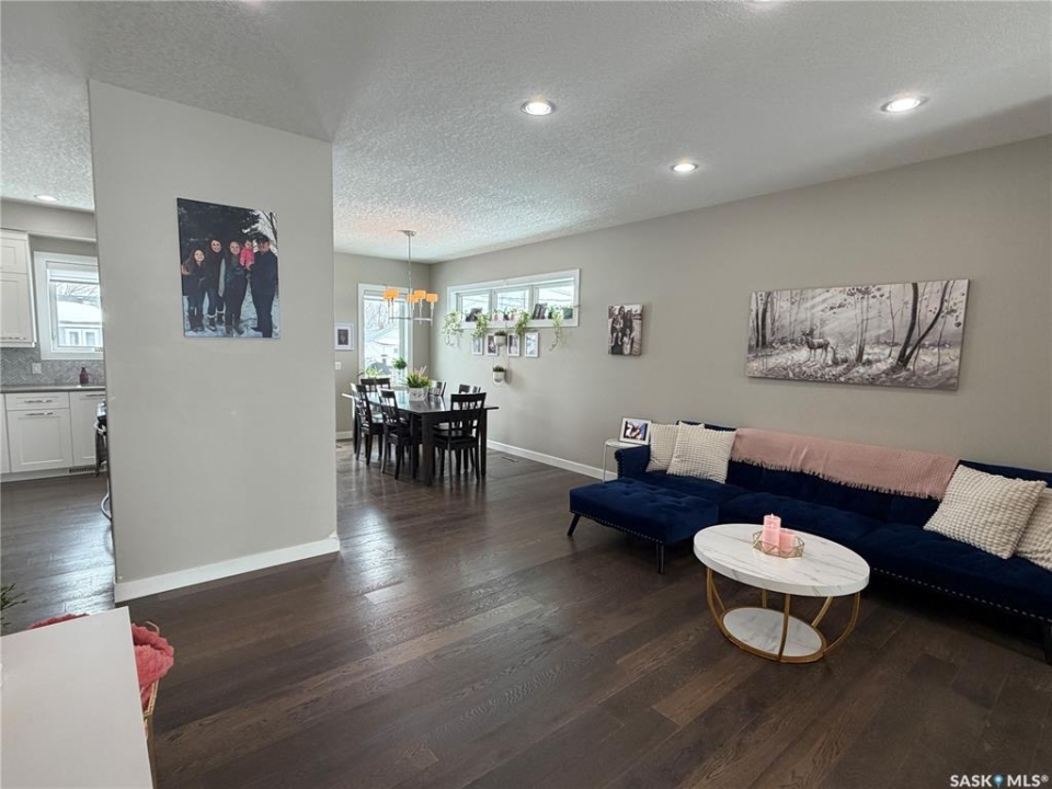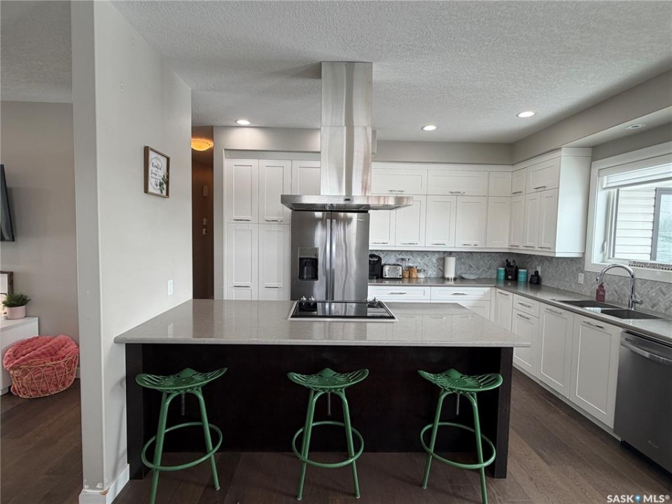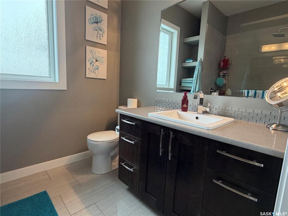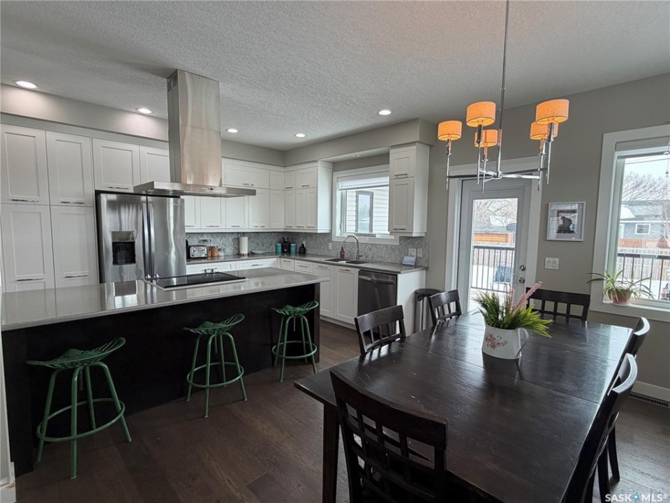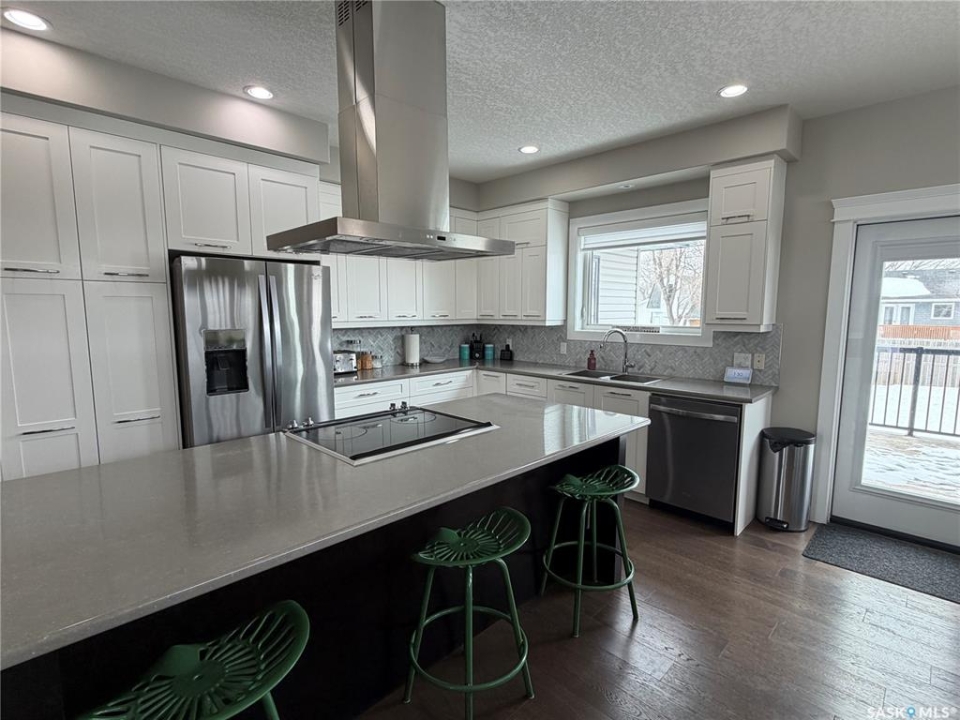 Welcome to this beautifully maintained 1,534 sq ft bungalow built in 2013, ideally located in a mature neighborhood just steps from St. Augustine Elementary School and church—perfect for families looking for convenience and community. Step inside to a bright and inviting open-concept floor plan, filled with natural light from the abundance of windows throughout. The spacious kitchen overlooks the backyard and features attractive white cabinetry, tile backsplash, stainless steel appliances, and a large island—ideal for everyday living and entertaining. The dining area offers garden doors leading to the deck and backyard, creating a seamless indoor-outdoor flow for summer evenings. Off the garage, you'll find a large mudroom with a separate laundry room—designed for busy households and added functionality. The 26x26 insulated garage provides ample space for vehicles, storage, and workspace. The main floor includes three bedrooms, highlighted by a generous primary suite complete with a walk-in closet and a beautiful 3-piece ensuite featuring a tiled walk-in shower. Downstairs, the fully finished basement offers even more living space with a large family room, dedicated games area, two additional bedrooms, a full 4-piece bathroom, and plenty of storage. This home offers the perfect blend of space, style, and location—ready for its next family to move in and enjoy.