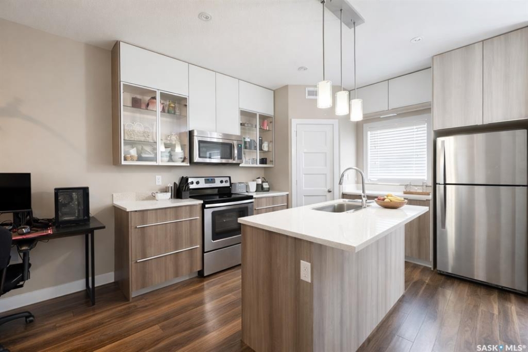 **The property is currently rented on a month-to-month basis at $2,100/month. The tenant has been in place for two years and is open to either vacating or staying.** Welcome to this well-maintained townhouse in the highly desirable Evergreen neighbourhood! Located just a short 3-minute walk to the nearby elementary school, this home offers exceptional convenience for families. You'll also love the easy access to a full range of amenities, including restaurants, grocery stores, and everyday essentials. The main floor offers a bright and inviting living space, featuring an open-concept layout that seamlessly connects the living room, dining area, and kitchen—perfect for both everyday living and entertaining. Large windows bring in plenty of natural light, creating a warm and welcoming atmosphere. Upstairs, you'll find three well-sized bedrooms. The spacious primary bedroom includes a walk-in closet and a private en-suite bathroom, providing a comfortable retreat at the end of the day. The additional bedrooms are ideal for children, guests, or a home office.This property features a double attached garage, with additional street parking available right out front—perfect for guests and extra vehicles. The unfinished basement offers excellent potential for future development, with space for a family recreation area, an additional bedroom, or a custom layout to suit your lifestyle. This property is a great option for both homeowners and investors, offering comfort, flexibility, and convenience in one of Saskatoon's most sought-after communities.