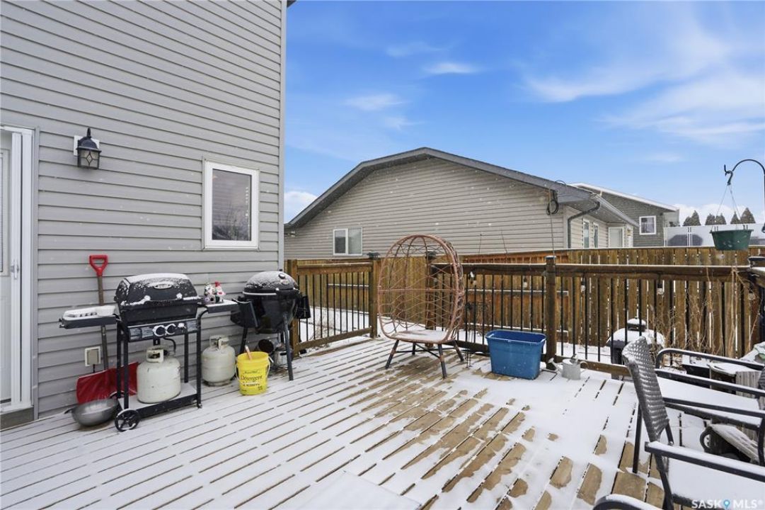 Located in the highly desirable community of Martensville, where listings are in short supply, this fully developed two-storey home is the perfect fit for a growing family. Just a short walk to the elementary school and parks, the location couldn't be more convenient. Offering 1,287 sq. ft., this move-in ready home features 4 bedrooms and 3 bathrooms, with a bright and functional layout. The kitchen is both stylish and practical, complete with granite countertops, tile backsplash, and stainless steel appliances. The main floor includes laundry, a spacious front entrance, and a 2-piece bathroom. The second level has a full bathroom and three bedrooms with the primary bedroom having a walk-in closet. The basement adds valuable living space, complete with a bedroom, full bathroom, and a cozy family room. Additional features include maple railings, central air conditioning, central vacuum, and a spacious front entrance. The back yard is fully fenced with a large deck, stamped concrete walkway and patio, underground sprinklers and a storage shed. The double attached insulated garage has direct entry and there is back alley access to the yard for future development or room for RVs, boats, and power toys. This turnkey home is ready for you to move in and enjoy.