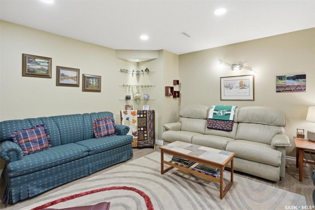 Step inside the generous entry to this immaculate home and you will immediately appreciate the light filled living area complimented with East and South exposure. This END UNIT BUNGALOW is tucked away in the back corner of LAKEWOOD VILLAGE giving it a spacious, semi private side and back yard. NUMEROUS QUALITY renovations and up-grades were completed when the owners took possession including replacing the flooring, re-imagining the kitchen to make the eating area more comfortable, adding cabinets and improving the flow through to the west-facing, covered deck. The kitchen cabinets were replaced with REDL manufactured flat OAK floor to ceiling units with a honey oak stain, while the dishwasher was re-located away from the stove and an additional bank of cabinets was added. Also featured is a tile back splash and under cabinet lighting. The stainless steel fridge, range and dishwasher (new in 2023) are included. The living/dining area features quality engineered Acacia hardwood, with luxury vinyl tile flooring in the kitchen and baths. You will appreciate the large West-facing primary bedroom with it's walk-in closet and 3 piece ensuite bath. The second bedroom and up-graded 4 piece bath complete the main floor. The fully developed lower level features a generous family room with electric fireplace, office, large workshop, roomy laundry/craft room with numerous cabinets, dedicated storage, 2 piece bath and utility room. Flooring in the majority of the lower level is luxury vinyl plank with linoleum in the laundry/craft area. The front entry was re-designed to create double closets with the direct entry to the insulated, single garage between them. The windows have been up-graded to low maintenance triple glaze units. This may be the premier location in the complex, traffic noise buffered, no houses directly behind and the green space available to the back and South side. Presentation of offers Saturday April 4th at 4 pm. Contact your Real Estate Professional to view.