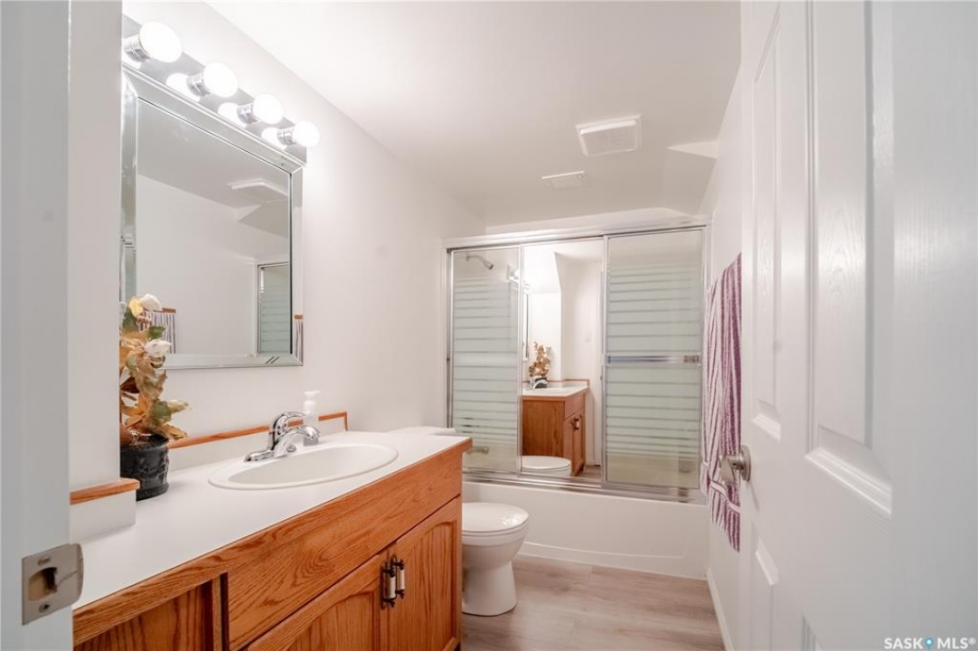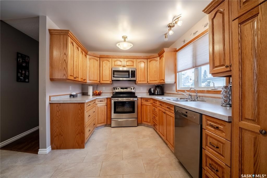 Welcome to the Perfect Family Home in the Perfect Family Neighbourhood. From the moment you step inside, you'll understand why “welcome home” feels so fitting here. This beautifully maintained, custom-built property blends timeless craftsmanship with thoughtful modern updates, creating a space that feels both elevated and effortlessly comfortable. The finished basement provides space for all! A Home Built for Real Family Living This solid, well-cared-for home has been refreshed with meaningful upgrades, including: - Newer siding, windows, and doors (2015) - Updated flooring throughout — laminate upstairs (2015) and stylish vinyl plank downstairs (2024) Every improvement has been chosen with longevity, comfort, and style in mind. A Primary Suite Designed for Retreat Escape to your spacious primary suite, complete with: - A private 3-piece ensuite - Double closets Two additional bedrooms offer plenty of room for kids, guests, or a home office—each one bright, spacious and move-in ready. A Kitchen That Stands the Test of Time The custom Hanover kitchen is as functional as it is charming, offering the quality and amenities you would expect from a modern kitchen. Whether you're cooking weekday meals or hosting holiday gatherings, this kitchen is ready for it all. A Dining Space Made for Memories The formal sunken dining room is perfect for family dinners or cozy evenings with friends. Step out onto the side deck to enjoy your morning coffee while soaking in gentle eastern sunlight. Storage Galore Growing families need storage, and this home delivers: - Lighted storage room in the basement - Abundant closets throughout - Large bedroom closets for easy organization Everything has its place here. Location is key! Set in one of Moose Jaw's most family-friendly and desirable neighbourhoods, this home offers the ideal space for your family's story to unfold. Open the door, settle in, and start writing your family's next chapter!