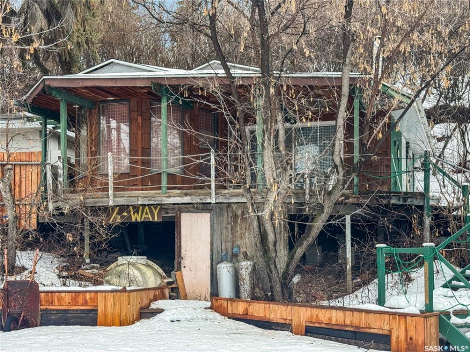 Enjoy everything Jackfish Lake has to offer with this inviting seasonal cabin, ideally located just a short walk from Hunts Cove beach. Spend your days on the sand and your evenings relaxing in your own private retreat. Set back among the trees, this property offers a peaceful, cozy cabin feel with plenty of parking and low-maintenance landscaping. Being sold fully furnished, it's completely turn-key so you can start enjoying lake life right away. Inside, the open-concept layout creates a warm and functional space for entertaining or unwinding after a day outdoors. The kitchen flows nicely into the dining and living areas, where a wood-burning fireplace adds that classic cabin charm. The large deck offers beautiful beach views and mesmerizing sunsets. The main cabin features two bedrooms and a spacious bathroom with a shower. Outside, gather around the fire pit and enjoy quiet evenings under the stars with family and friends. If you've been looking for an easy, affordable way to get into the lake lifestyle, just steps from a beautiful beach, this is a great opportunity to make it happen.