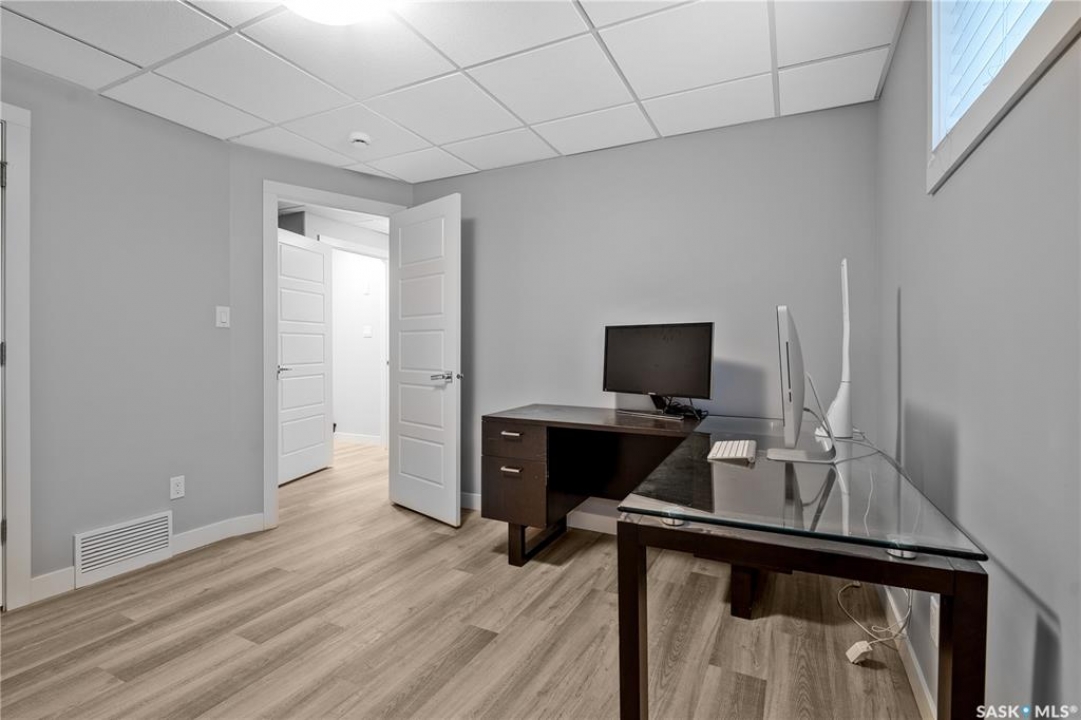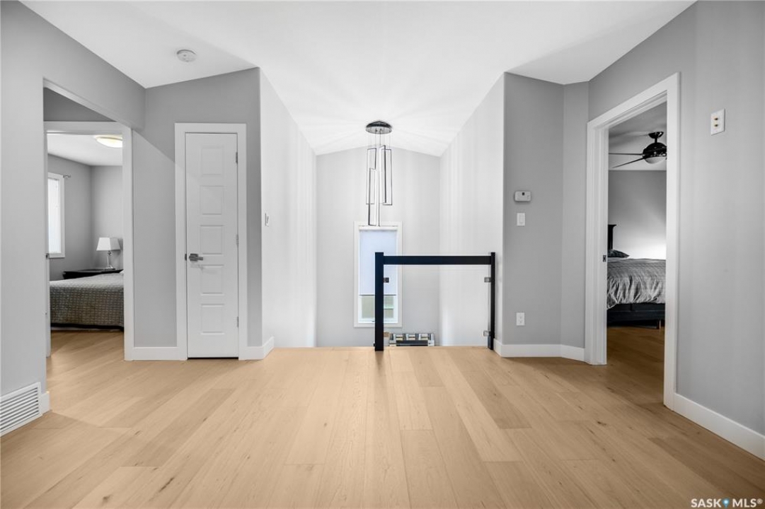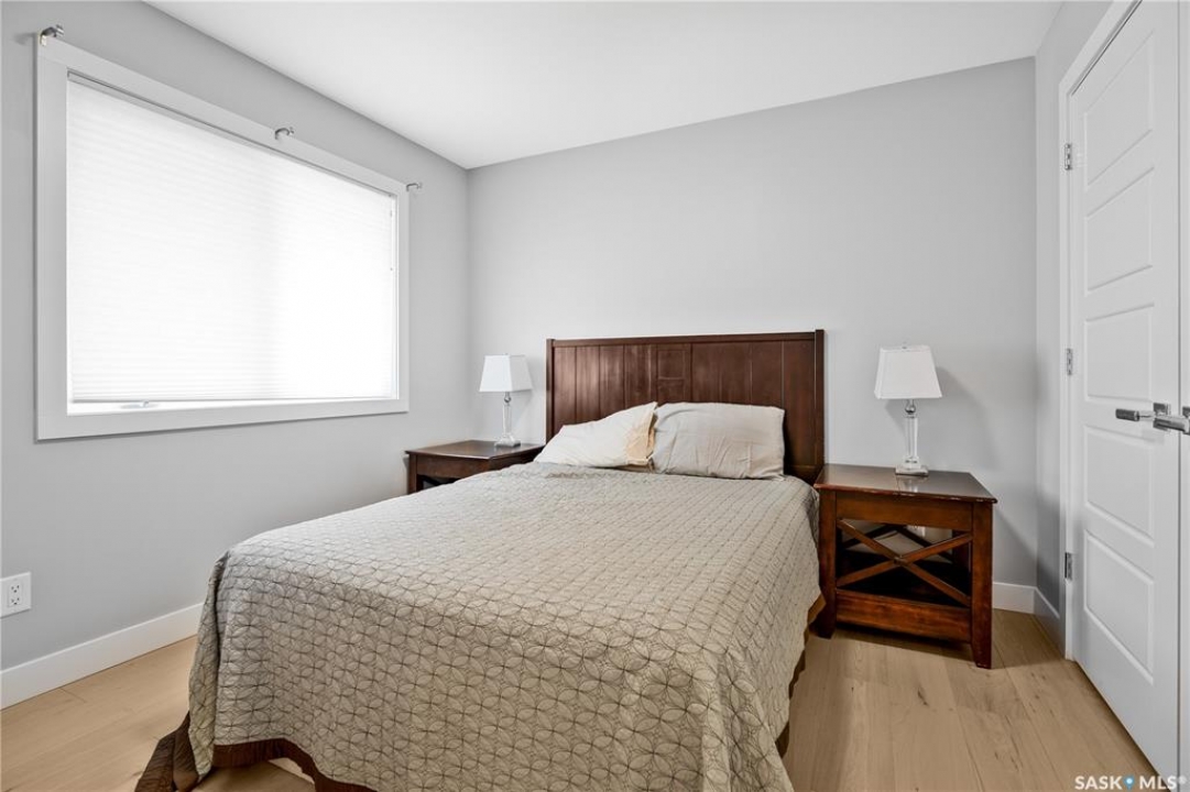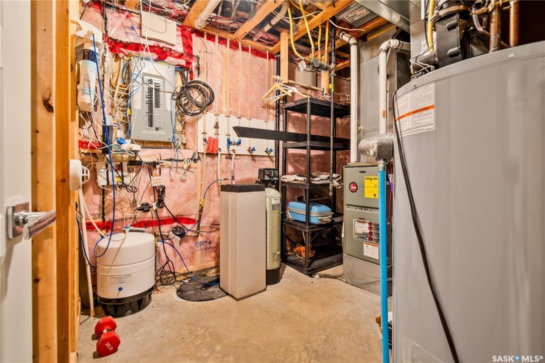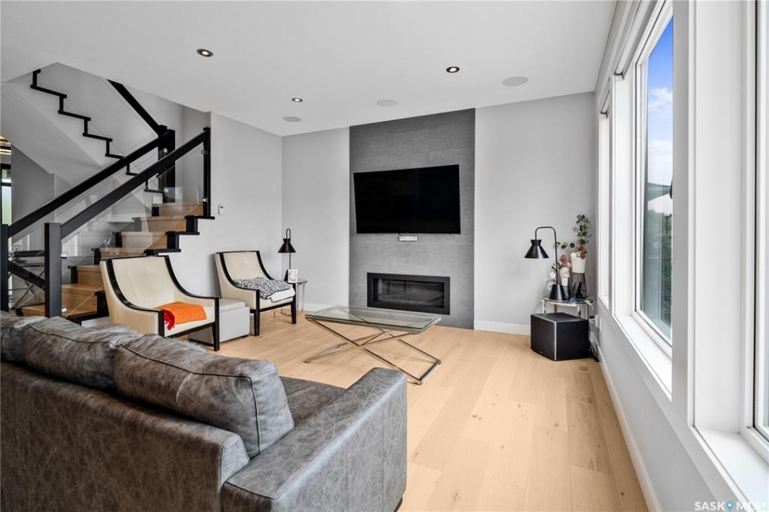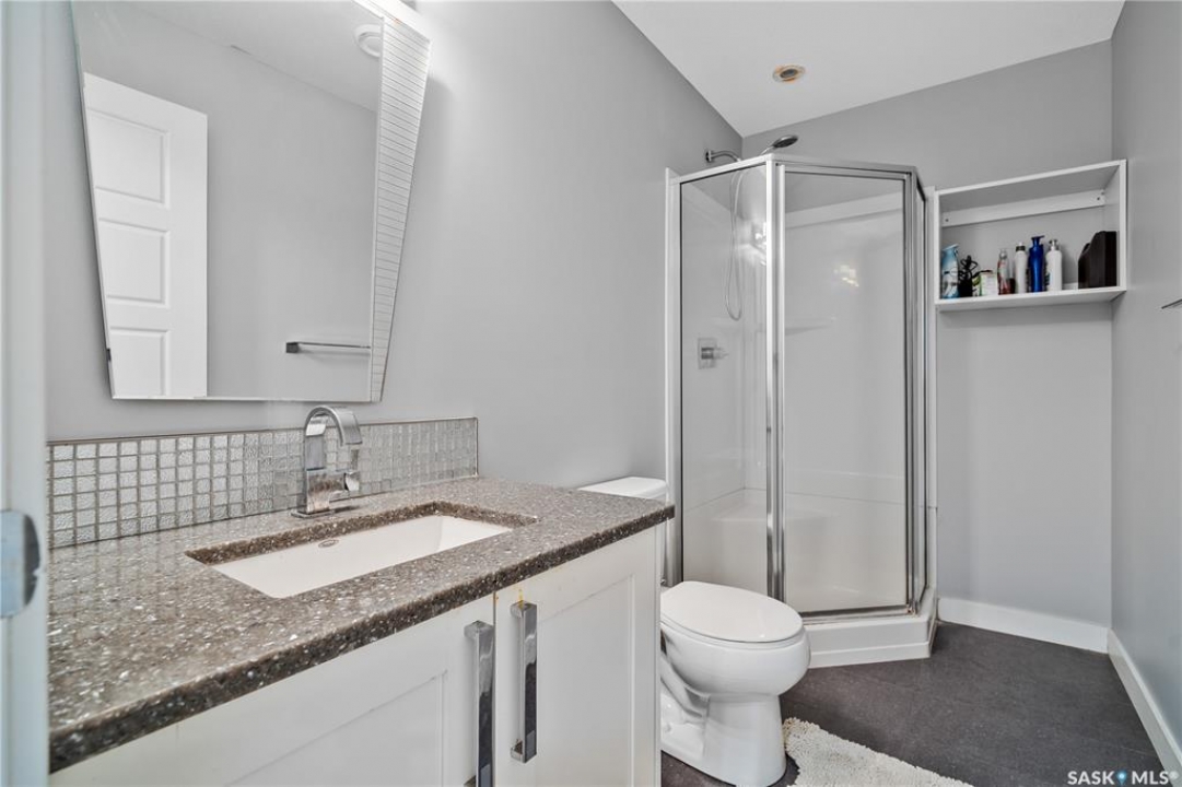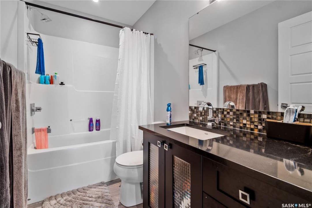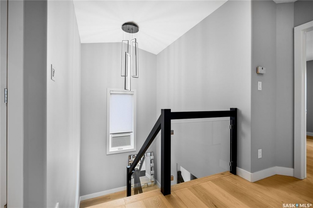 Built by Kratz, this updated 5-bedroom, 3.5-bathroom home in The Creeks blends modern style with everyday comfort—featuring carpet-free living throughout. A spacious foyer welcomes you into the main floor, highlighted by 9' ceilings, engineered hardwood flooring, and a cozy gas fireplace. The kitchen features dark maple cabinetry with soft-close drawers, quartz countertops, a granite sink, stainless steel appliances, and convenient direct access from the garage to the pantry—perfect for unloading groceries. The bright living and dining area opens onto an impressive 25' x 14' oversized deck with glass railing and built-in garden boxes (included as-is), creating an ideal space for entertaining. Professionally installed in-ceiling speakers enhance both the indoor living area and the outdoor deck. The fully fenced yard features low-maintenance TREX/PVC fencing, mature landscaping with vibrant perennials, and a garden shed. Upstairs, a striking open staircase with glass and engineered wood leads to a spacious bonus room, pre-wired for surround sound (speakers not included)—perfect as a media room, office, or family space. The luxurious primary suite includes a walk-in closet and spa-inspired ensuite with heated floors, dual sinks, a jetted tub, and an oversized shower. Two additional bedrooms and a full bathroom complete this level. The professionally developed basement offers a large theatre-style recreation room with a built-in projector screen and projector —ideal for movie nights or entertaining—along with two additional bedrooms, a � bath, and ample storage space. The heated triple garage includes a single-bay partition wall and a rear overhead door providing access to the yard—well-suited for a workshop or home-based business. Additional features include central air conditioning, central vacuum, motion sensor lighting, and dimmer switches throughout the bathrooms, laundry, and pantry. Book your private viewing with your agent today.