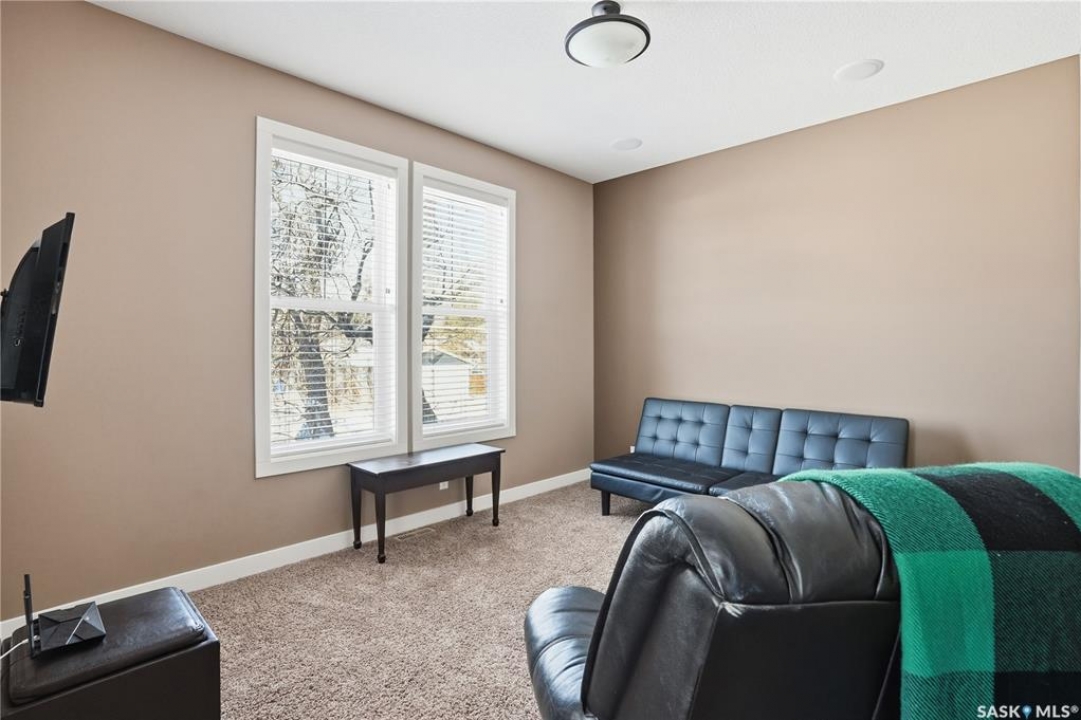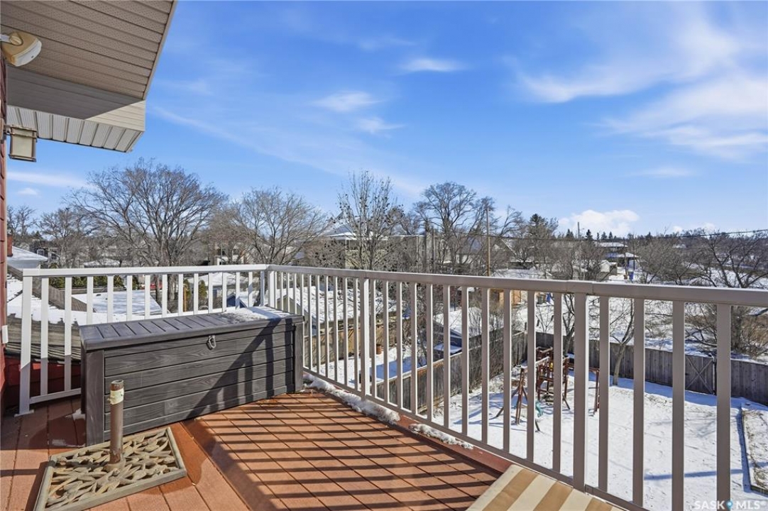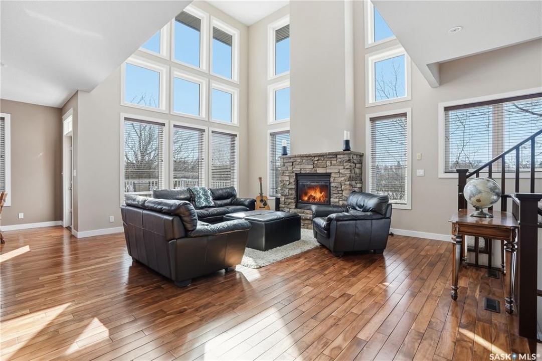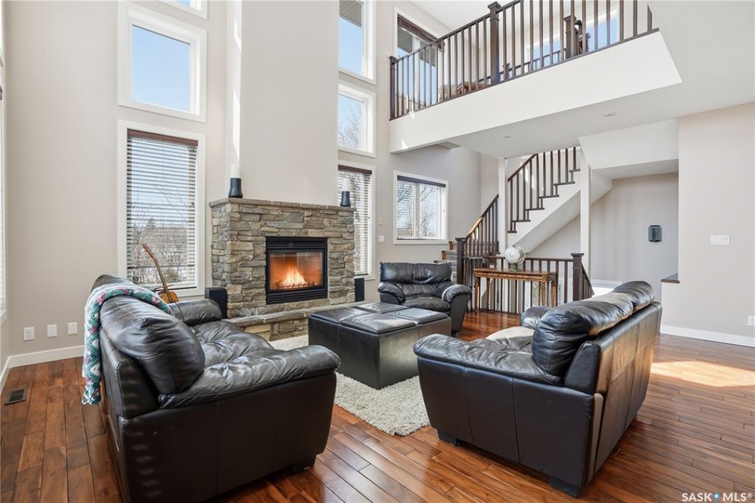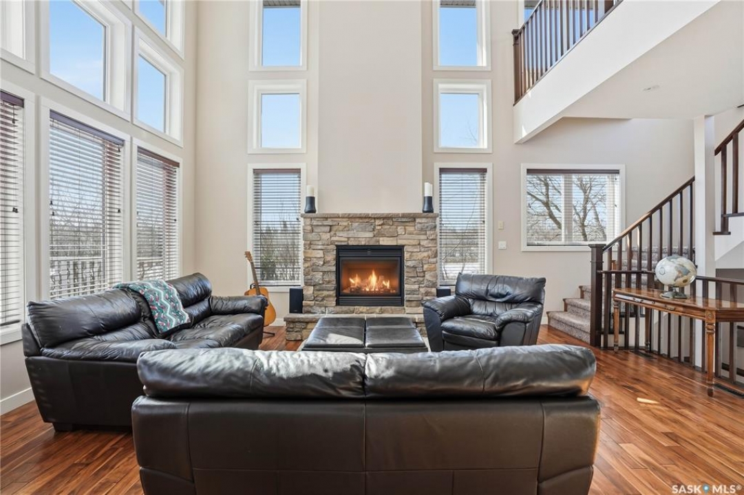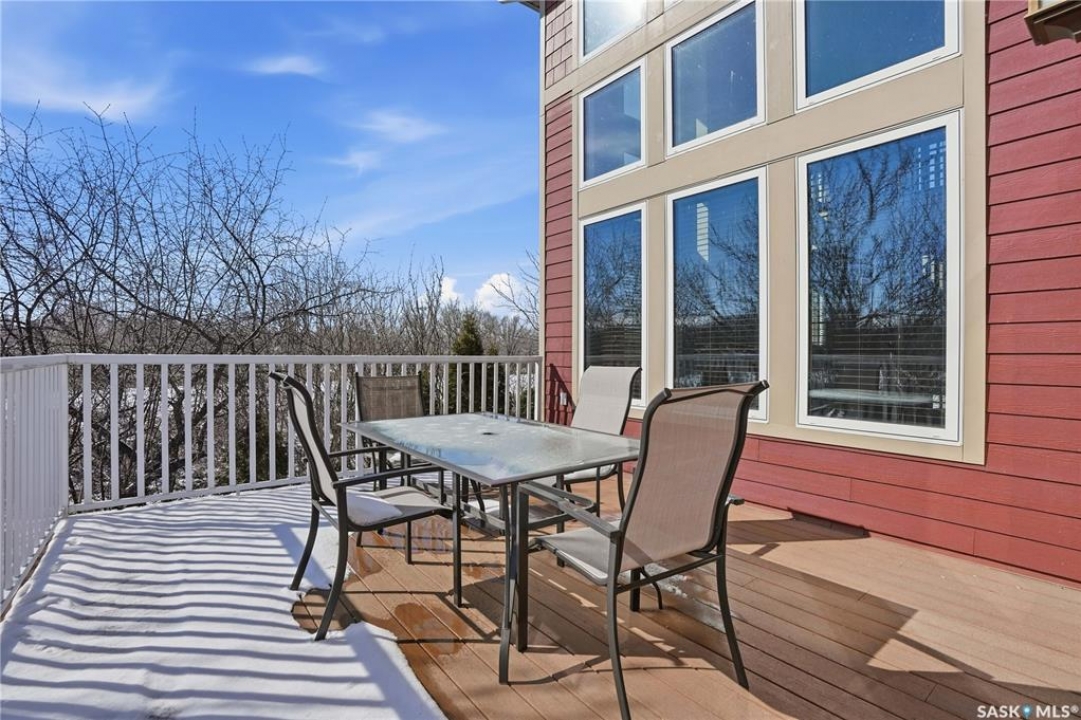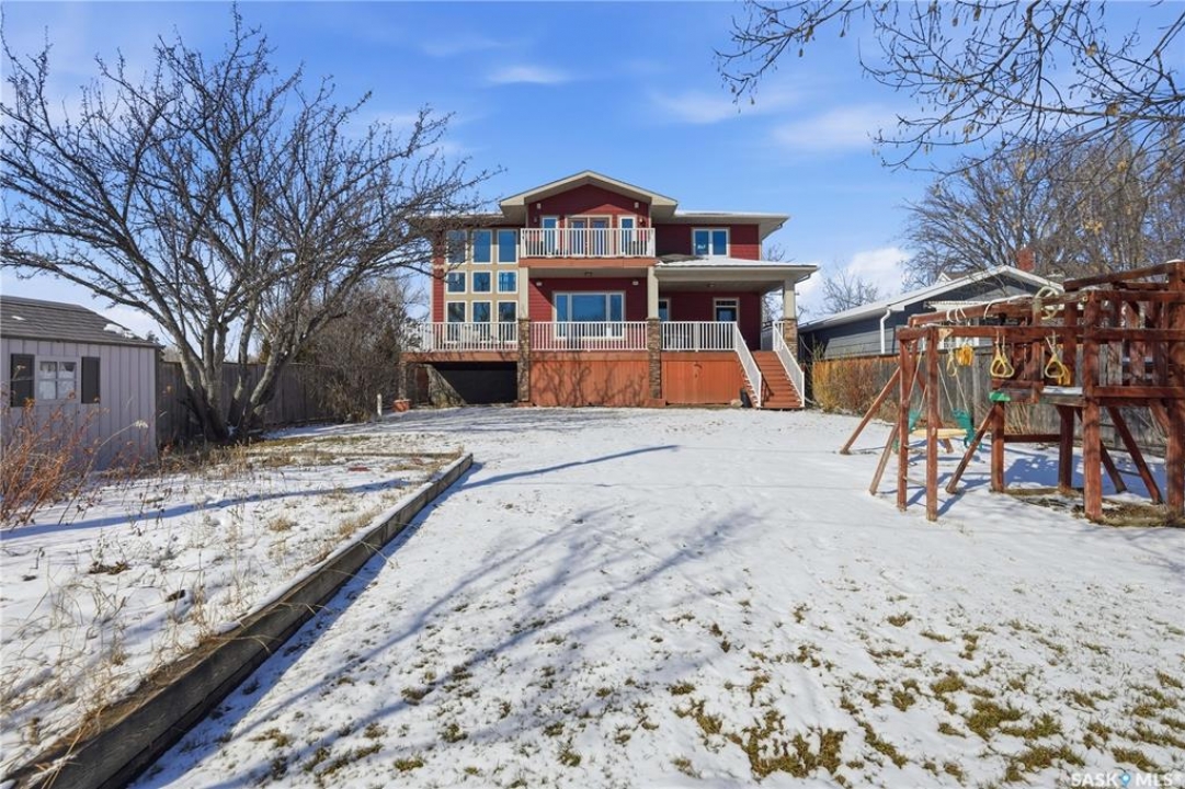 Welcome to one of Regina's truly rare properties — a custom-built home with direct, unobstructed views over Wascana Creek. Tucked away on a quiet cul-de-sac, with only one neighbouring home and surrounded by green space, siding a nature path and facing a park and playground, this is a setting that is exceptionally hard to replicate. Built with ICF and SIP construction and supported by a pile foundation, this home was designed for long-term quality, efficiency, and durability. The main floor opens into a spacious entry and a bright front office or den. The living room is a standout, featuring two-storey windows that flood the space with natural light while framing the creek views, anchored by a gas fireplace. The kitchen is both functional and inviting, with ample cabinetry, a large island, pantry, and a dedicated dining area overlooking the yard and green space. Upstairs, an open staircase leads to a cozy reading nook, two generously sized bedrooms, a full bathroom, and convenient laundry. The primary suite is set apart for privacy, complete with a walk-in closet, ensuite, and a private balcony overlooking the creek. The fully finished basement offers excellent flexibility, with a large family room, two additional bedrooms, a full bathroom, sauna, and plenty of storage — ideal for family, guests, or workspace. Outside, the home continues to impress with a welcoming front porch, full-length back deck, fenced yard, and shed. The lot extends to the alley and offers strong potential for a future garage or additional rear parking. Additional features include hardwood flooring on the main level, large basement windows, and recent interior paint. A thoughtfully built home in a truly irreplaceable setting — this one is best experienced in person.