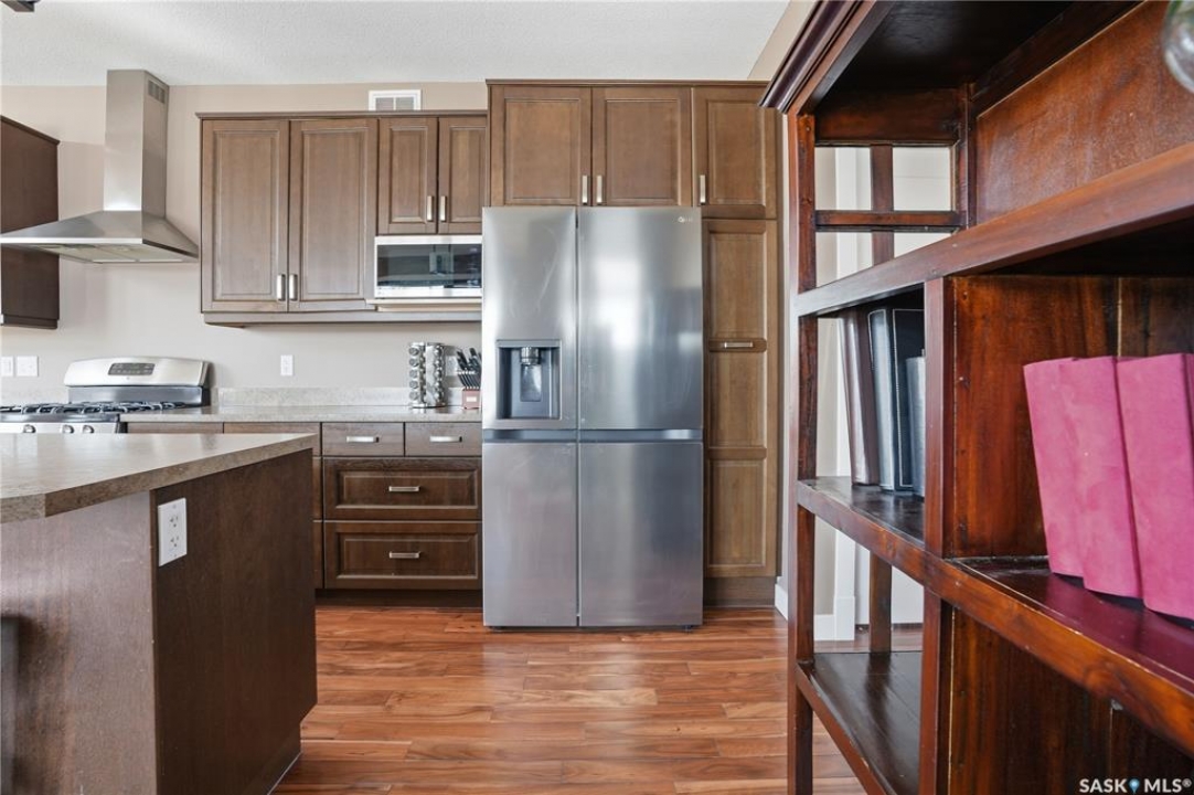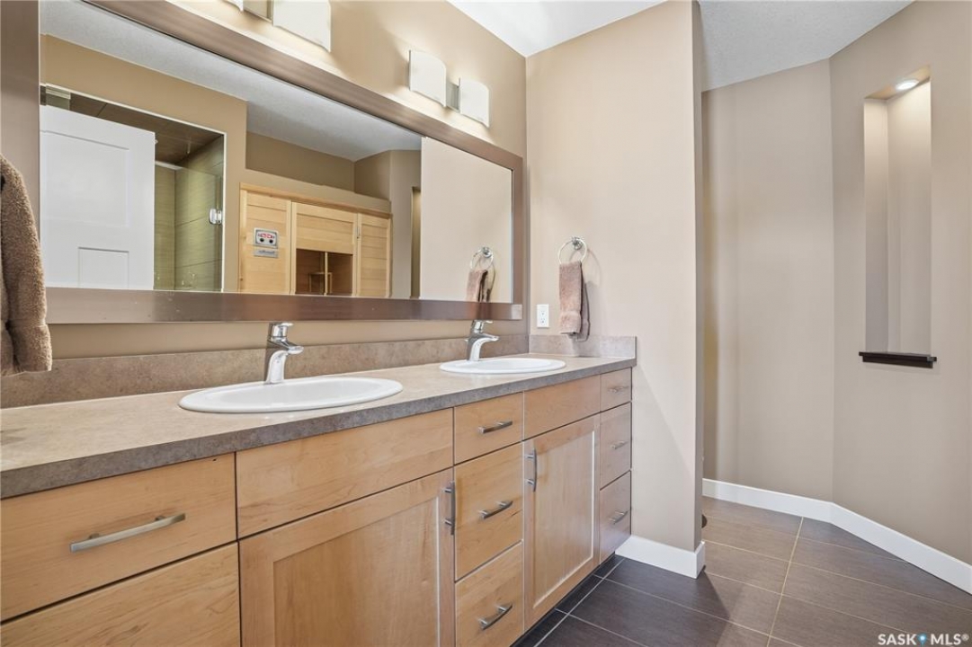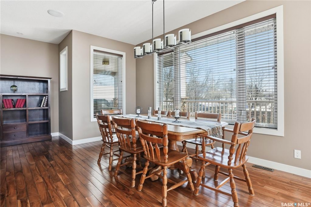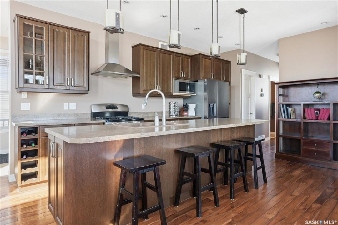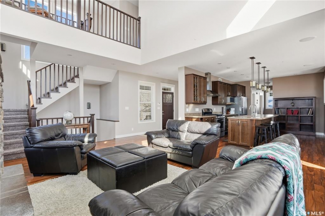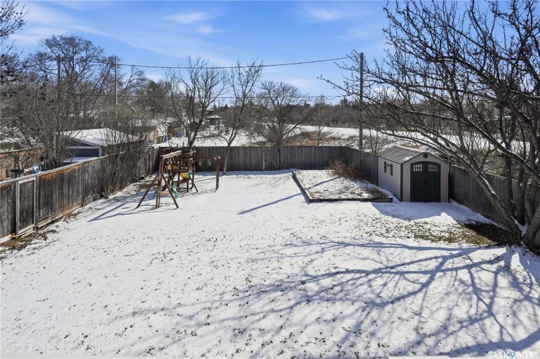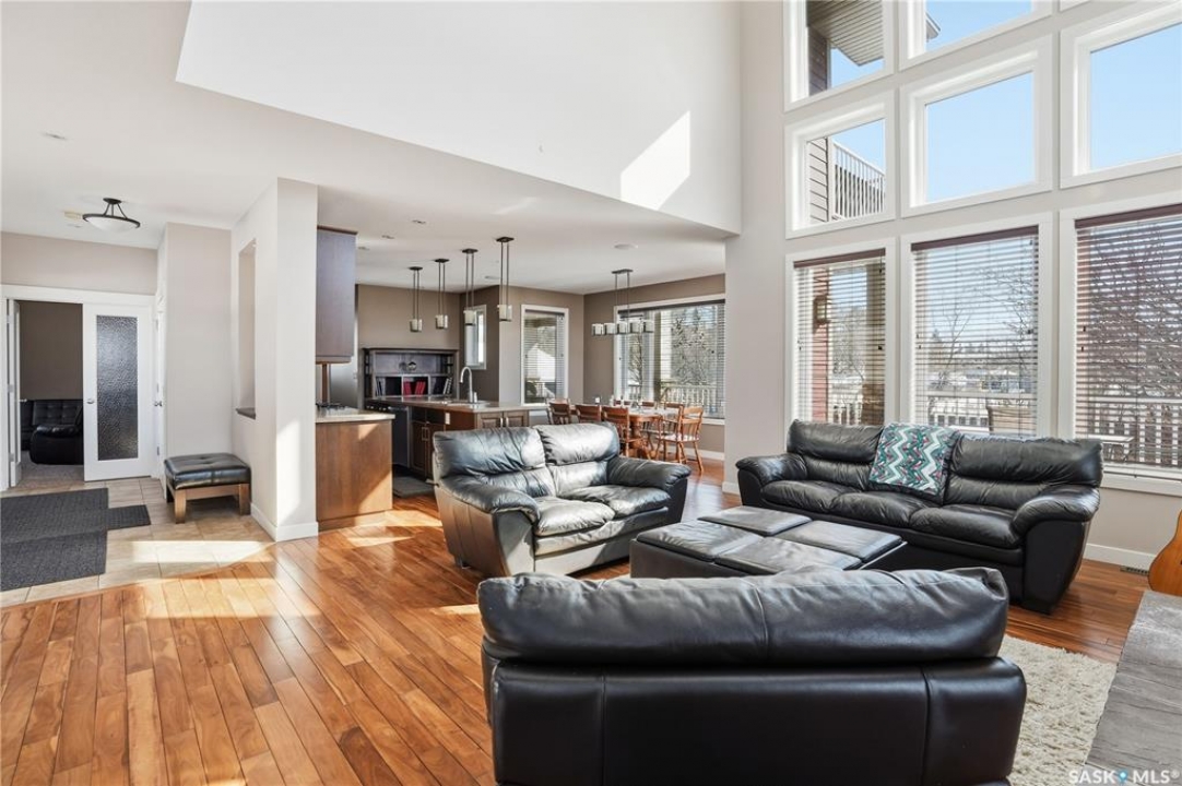 Welcome to one of Regina's truly rare properties — a custom-built home with direct, unobstructed views over Wascana Creek. Tucked away on a quiet cul-de-sac, with only one neighbouring home and surrounded by green space, siding a nature path and facing a park and playground, this is a setting that is exceptionally hard to replicate. Built with ICF and SIP construction and supported by a pile foundation, this home was designed for long-term quality, efficiency, and durability. The main floor opens into a spacious entry and a bright front office or den. The living room is a standout, featuring two-storey windows that flood the space with natural light while framing the creek views, anchored by a gas fireplace. The kitchen is both functional and inviting, with ample cabinetry, a large island, pantry, and a dedicated dining area overlooking the yard and green space. Upstairs, an open staircase leads to a cozy reading nook, two generously sized bedrooms, a full bathroom, and convenient laundry. The primary suite is set apart for privacy, complete with a walk-in closet, ensuite, and a private balcony overlooking the creek. The fully finished basement offers excellent flexibility, with a large family room, two additional bedrooms, a full bathroom, sauna, and plenty of storage — ideal for family, guests, or workspace. Outside, the home continues to impress with a welcoming front porch, full-length back deck, fenced yard, and shed. The lot extends to the alley and offers strong potential for a future garage or additional rear parking. Additional features include hardwood flooring on the main level, large basement windows, and recent interior paint. A thoughtfully built home in a truly irreplaceable setting — this one is best experienced in person.