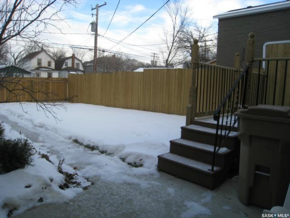 Lovely character home with many modern updates that would make the perfect first home. Covered porch across front of house. Upon entry you notice the original french doors and original wooden staircase. French doors open to a spacious living room and attached dining room both with tall ceilings. Easy clean laminate flooring throughout. Large windows fill each room with sunlight. Kitchen offers newer white cabinetry with laminate counter tops. Pantry for extra storage. Fridge, stove and built-in dishwasher are all included. Upper level has an amazing new bathroom renovation with ceramic tile surrounding the jetted corner tub. Rain shower head. Updated vanity, sink, taps, lighting and toilet. Two very large bedrooms one with a walk-in closet. Lower level is clean and dry. High efficient furnace and newer hot water heater. Washer and dryer included. Enjoy a fully fenced in backyard with deck, grass area and a garden area. Room to park three vehicles. Newer water and sewer lines, updated electrical, some new windows, upgraded insulation and siding. Shows beautifully and priced to sell. This home is move-in-ready and can be purchased with 1441 Argyle. Live on one side and rent the other to subsidize your mortgage payment. Awesome revenue opportunity.