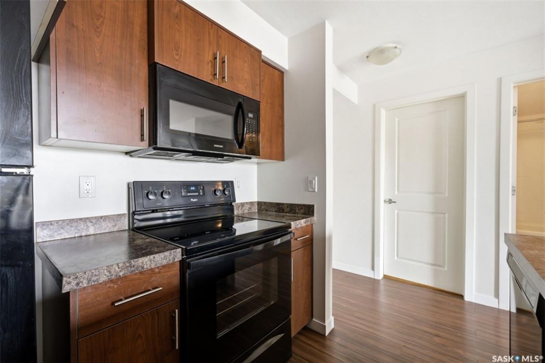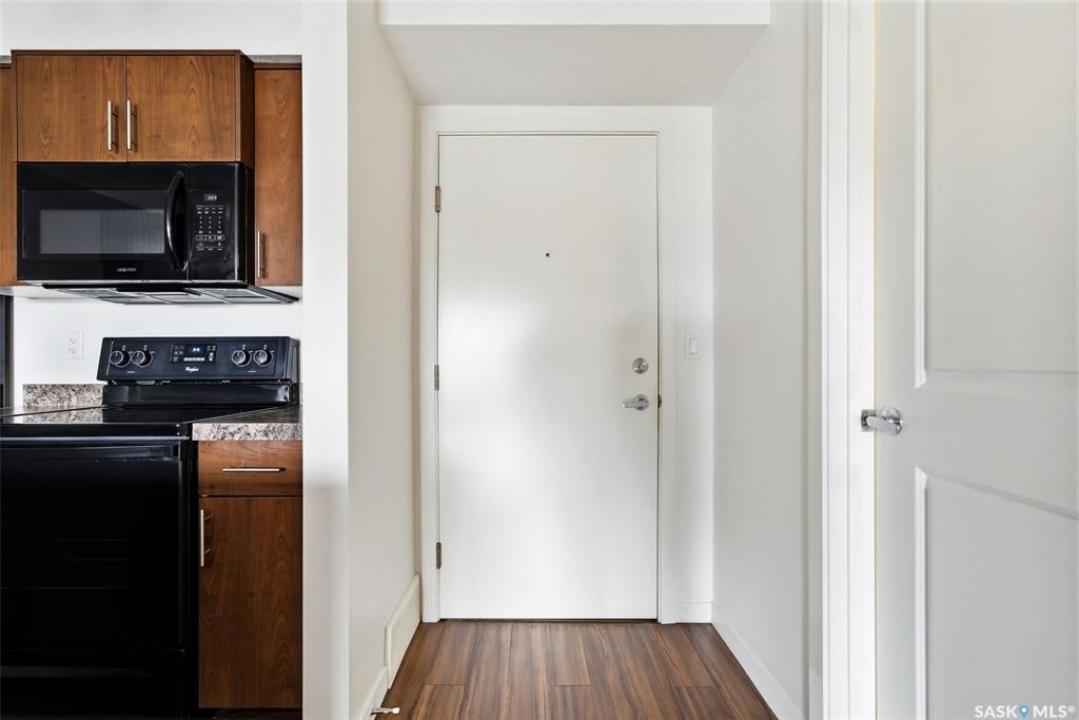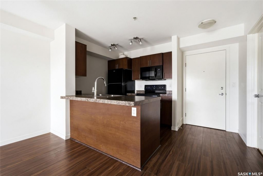 Welcome to this well-cared-for main floor condo in the popular Harbour Landing area. This 1 bedroom, 1 bathroom unit is wheelchair accessible and easy to get around. The layout is open and practical, with a bright living space and large windows that let in lots of natural light. The kitchen is modern and has plenty of cabinets for storage. All appliances are included, along with extra storage in the laundry area. The bedroom is a comfortable size, and the full bathroom and in-suite laundry make everyday living simple and convenient. There is a bus stop right outside the building, making it easy for commuting. You'll also be close to parks, shopping, restaurants, and all the great amenities in the south end. This home is a great option for first-time buyers, those looking to downsize, or investors. Contact your real estate professional for more information.