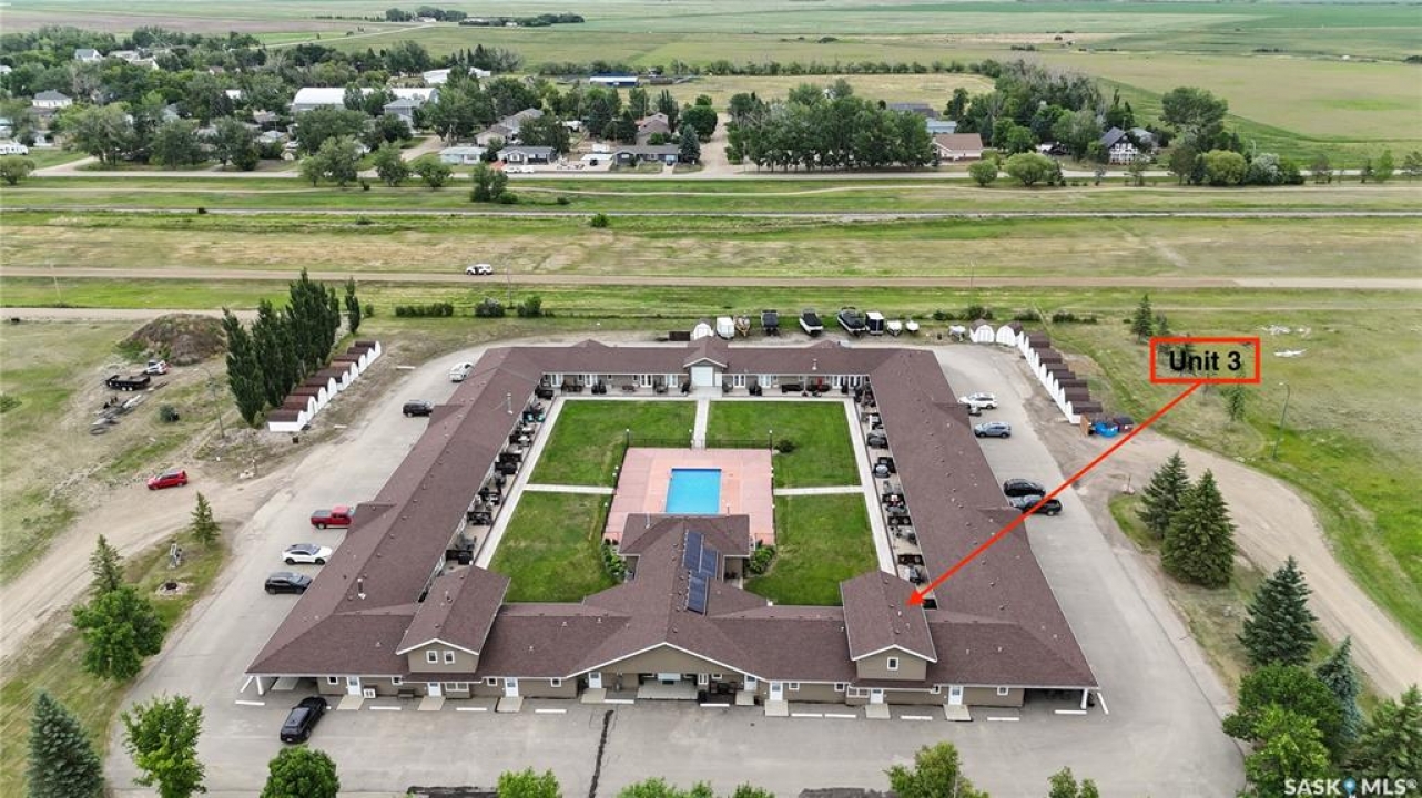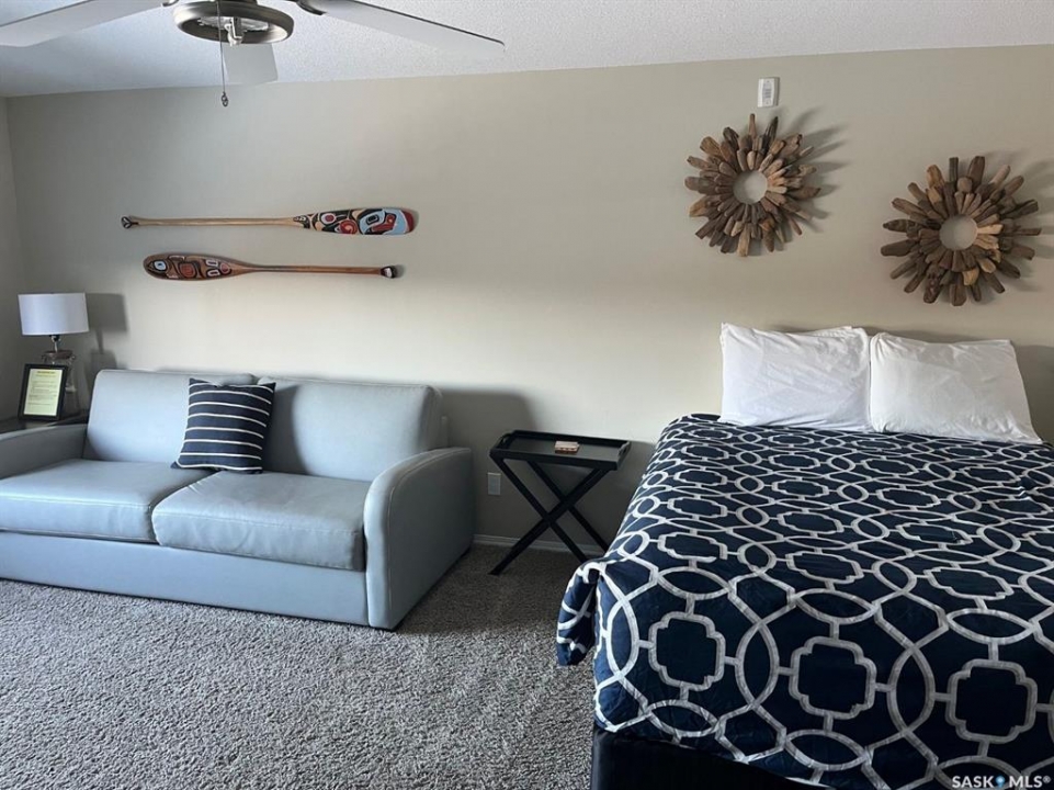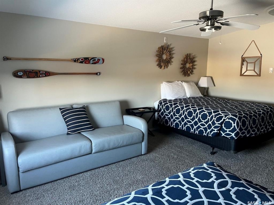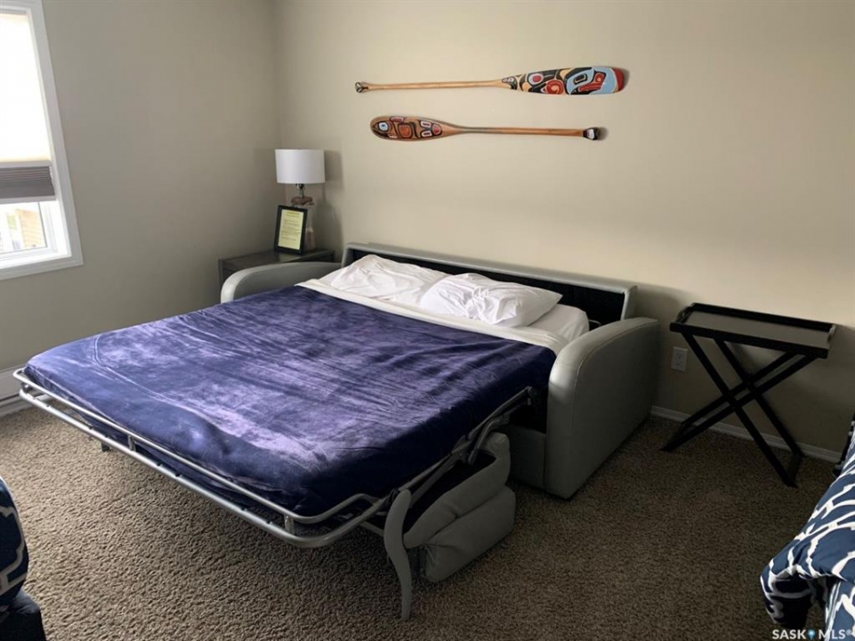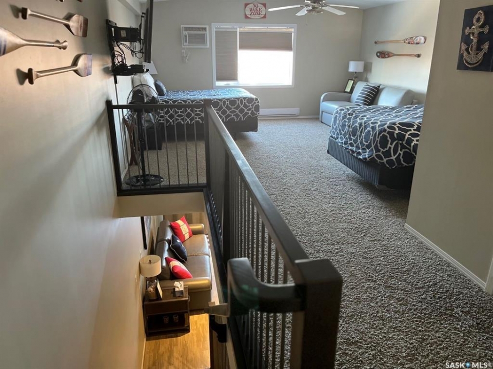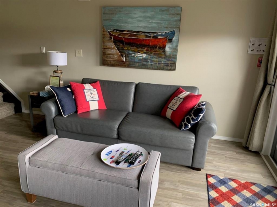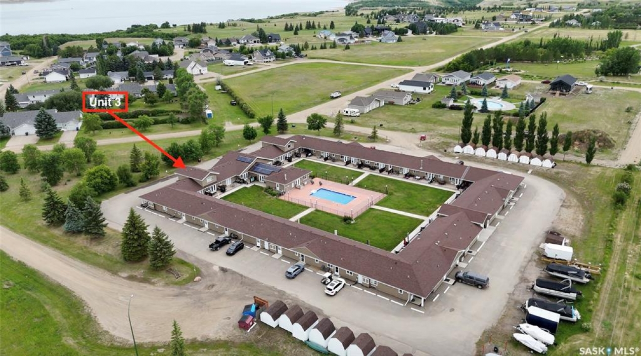 Welcome to Unit #3 1250 Aaro Ave in Elbow, located at Harbor Inn on the shores of Lake Diefenbaker. This rare 2-storey townhouse-style condo is one of only two in the Harbour Inn complex! Built in 2016, this 960 sq ft unit offers a bright open main floor, large bedroom, 2 bathrooms. The unit sleeps up to 8 comfortably with 2 queen beds and a sofa bed upstairs, plus an additional sofa bed on the main floor - perfect for guests or rental use. Enjoy your private back deck overlooking the enclosed courtyard with outdoor pool. Amenities include a games room, hot tub, and sauna. Condo fees cover exterior maintenance, water, sewer, snow removal, and more. Includes appliances, A/C, and 2 parking stalls. Option to join the rental pool offers excellent income potential. Lake living made easy!
