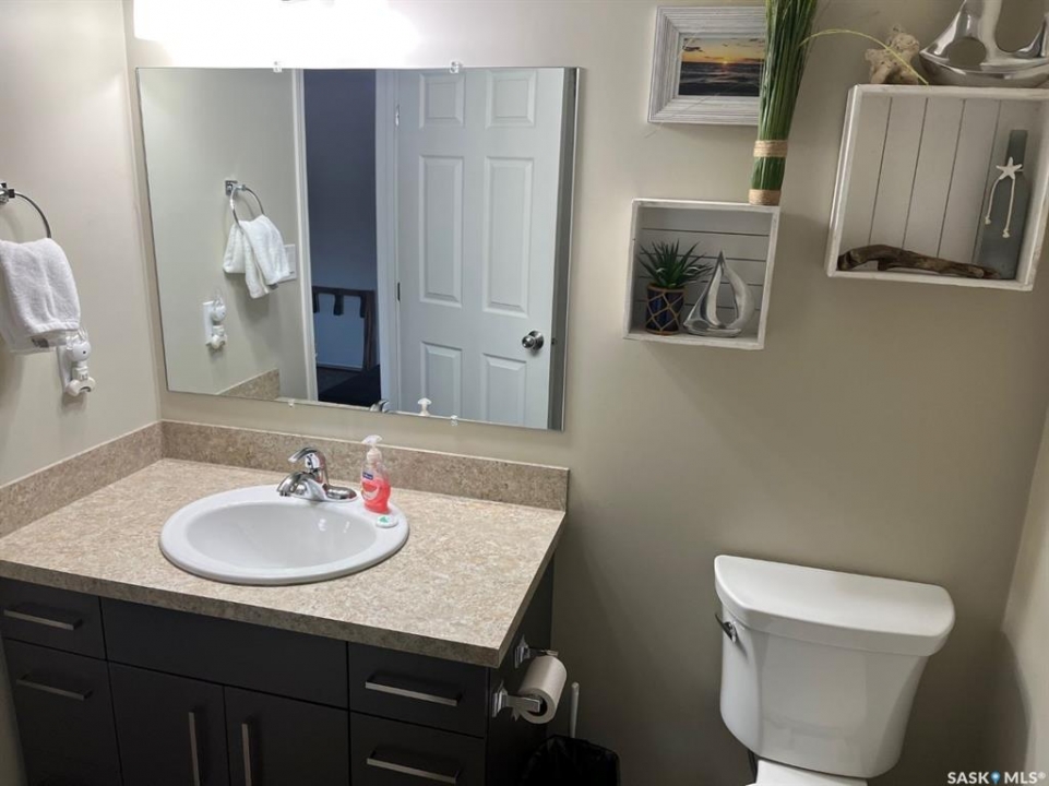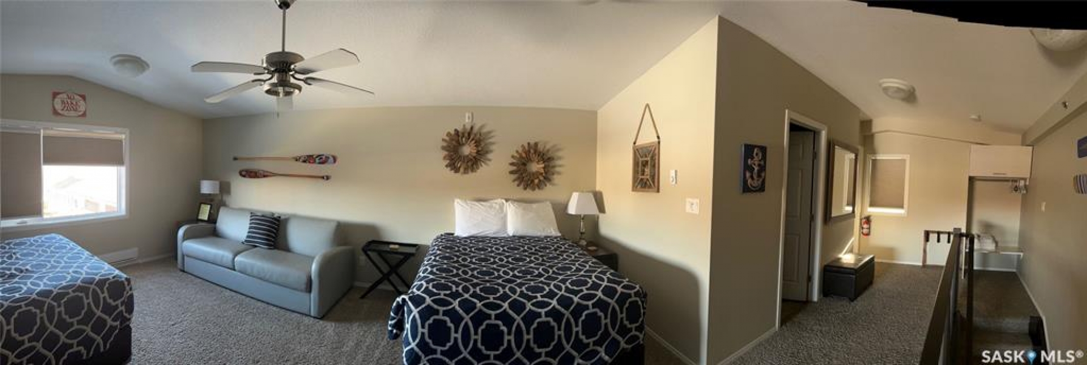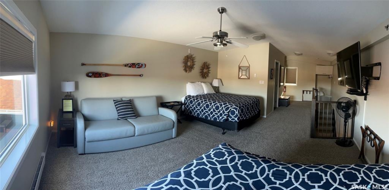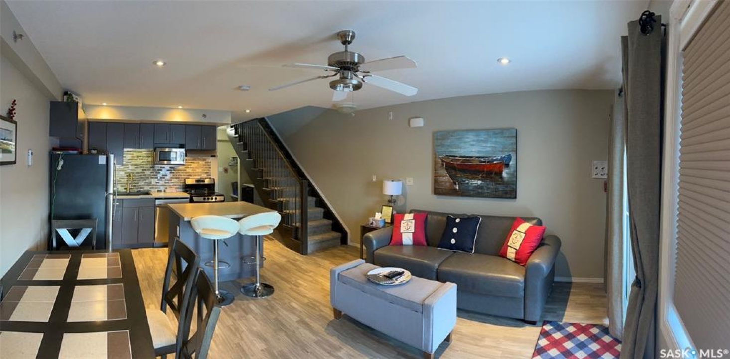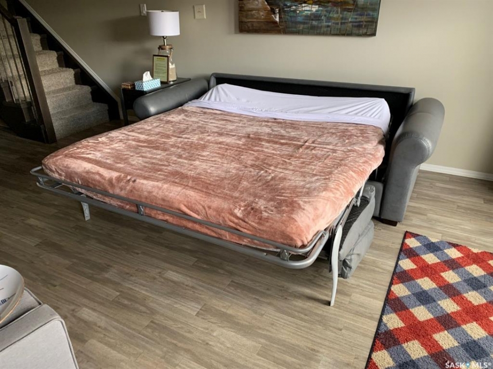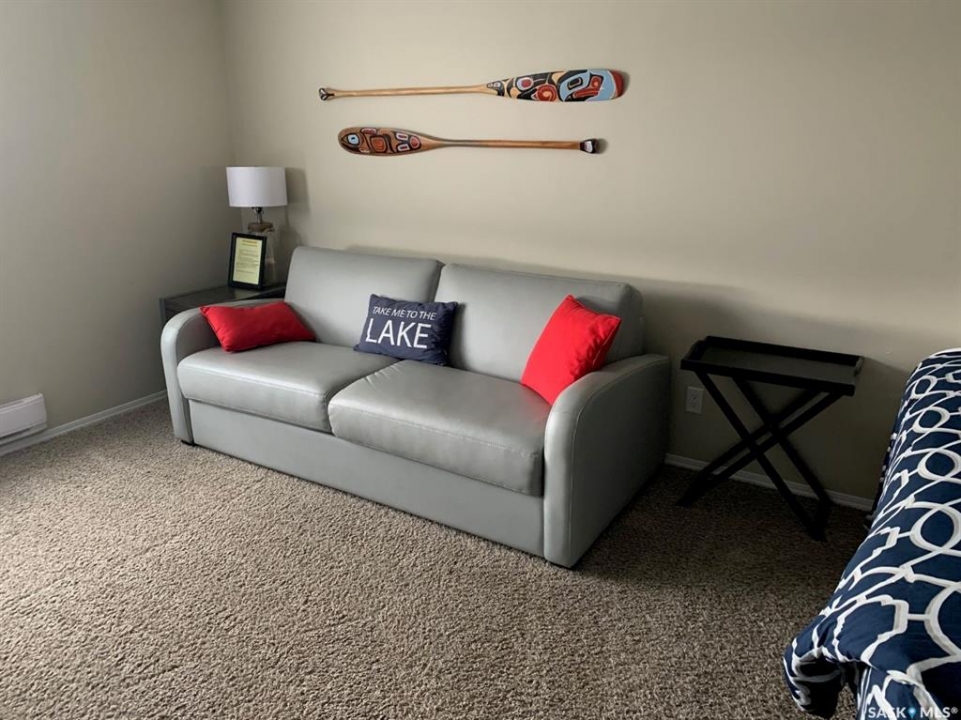 Welcome to Unit #3 1250 Aaro Ave in Elbow, located at Harbor Inn on the shores of Lake Diefenbaker. This rare 2-storey townhouse-style condo is one of only two in the Harbour Inn complex! Built in 2016, this 960 sq ft unit offers a bright open main floor, large bedroom, 2 bathrooms. The unit sleeps up to 8 comfortably with 2 queen beds and a sofa bed upstairs, plus an additional sofa bed on the main floor - perfect for guests or rental use. Enjoy your private back deck overlooking the enclosed courtyard with outdoor pool. Amenities include a games room, hot tub, and sauna. Condo fees cover exterior maintenance, water, sewer, snow removal, and more. Includes appliances, A/C, and 2 parking stalls. Option to join the rental pool offers excellent income potential. Lake living made easy!