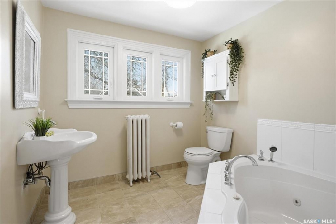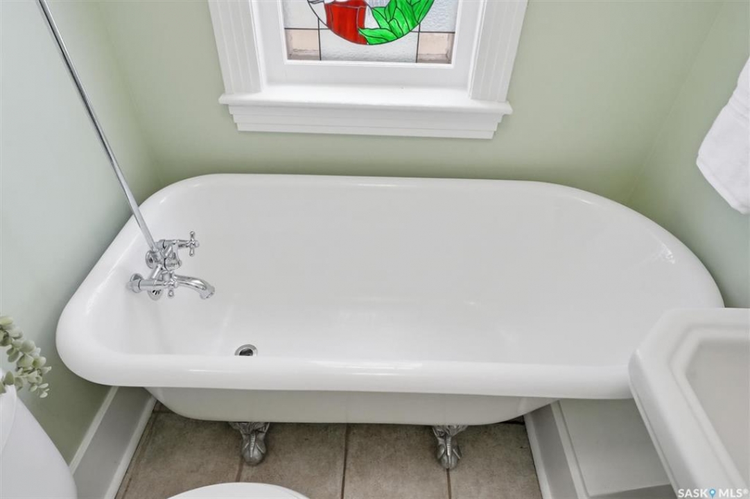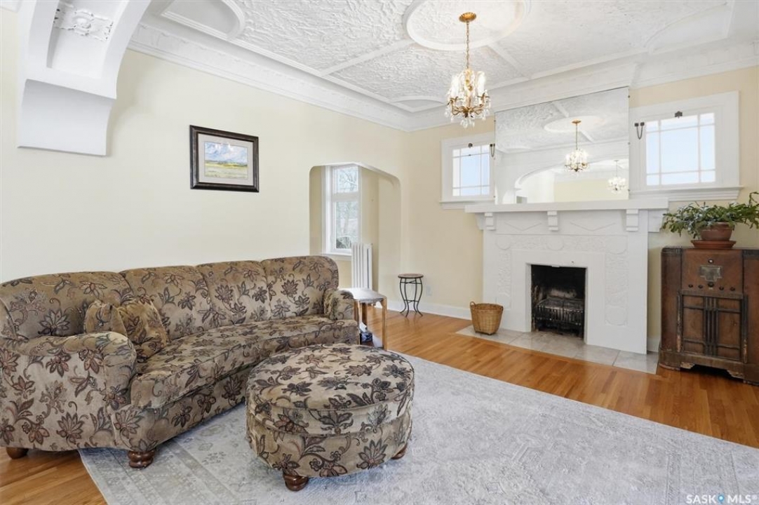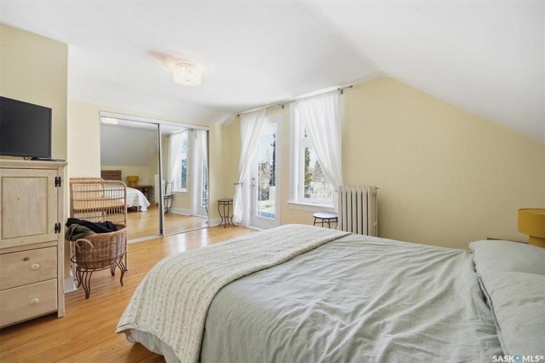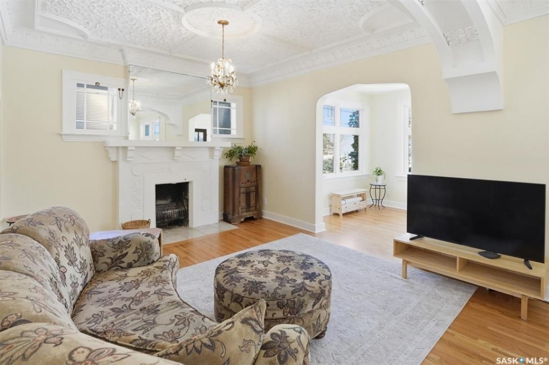 A truly rare home where timeless character, crown mouldings, archways, and a bright walkout basement come together in a way you don't often see. Set on a 50 x 134 ft. lot across from Wilson Park and just steps to the river, this property immediately stands out for its craftsmanship and attention to detail. The spacious front foyer offers flexibility as a sitting area or office and leads into a warm, inviting living room with a wood-burning fireplace. The living and dining spaces are truly special, featuring detailed ceilings, crown mouldings, and stunning archways that create a seamless, elegant flow throughout. The kitchen is both functional and thoughtfully updated with high-quality Redl cabinetry, quartz countertops, and a dedicated coffee bar or prep space with granite in the nook. The main floor includes a versatile bedroom or office and a full four-piece bathroom with stained glass windows and a claw foot tub. Upstairs, the primary bedroom features a private balcony overlooking the park, along with a second bedroom and a three-piece bathroom. The walkout basement is a standout bright, open, and beautifully finished with in-floor heating. The spacious family room is filled with natural light and opens directly to the backyard through garden doors. This level also offers an additional bedroom, a three-piece bathroom with walk-in shower, and a generous laundry area. Wet bar rough-in provides excellent potential for entertaining or a future suite. The backyard feels private and established with mature greenery, patio space, garden boxes, and a shed. Additional features include a heated double detached garage, on-demand hot water, and extensive upgrades to mechanical, plumbing, electrical, along with metal roofing and fiberglass fascia on both the house and garage. Located minutes to City Park Elementary, City Hospital, and quick access to main routes, this is a rare opportunity to own a character home where pride of ownership shines throughout.