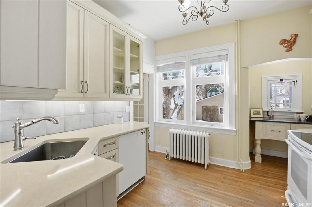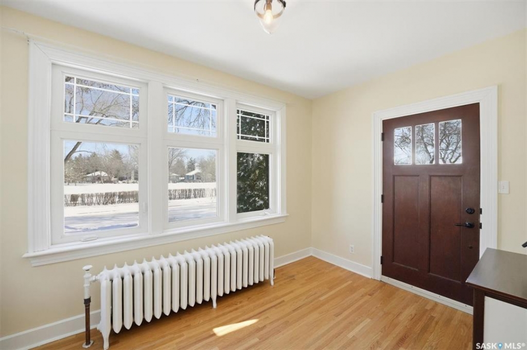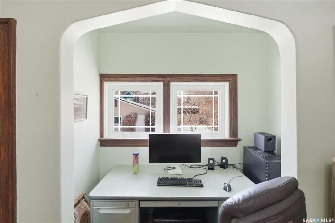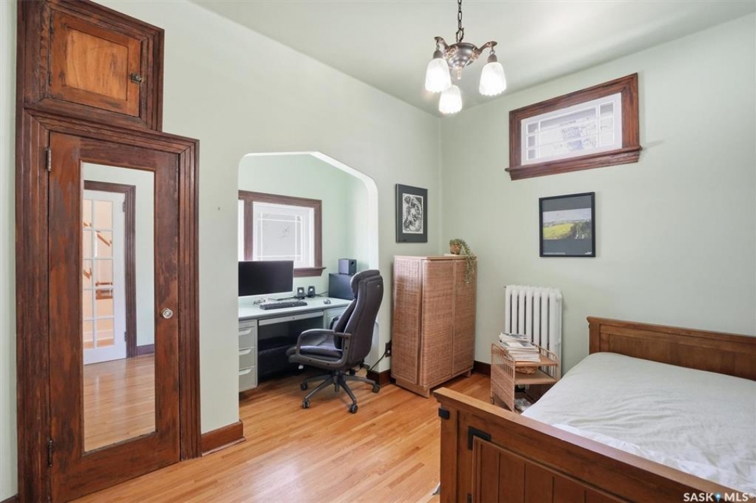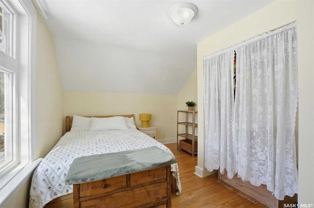 A truly rare home where timeless character, crown mouldings, archways, and a bright walkout basement come together in a way you don't often see. Set on a 50 x 134 ft. lot across from Wilson Park and just steps to the river, this property immediately stands out for its craftsmanship and attention to detail. The spacious front foyer offers flexibility as a sitting area or office and leads into a warm, inviting living room with a wood-burning fireplace. The living and dining spaces are truly special, featuring detailed ceilings, crown mouldings, and stunning archways that create a seamless, elegant flow throughout. The kitchen is both functional and thoughtfully updated with high-quality Redl cabinetry, quartz countertops, and a dedicated coffee bar or prep space with granite in the nook. The main floor includes a versatile bedroom or office and a full four-piece bathroom with stained glass windows and a claw foot tub. Upstairs, the primary bedroom features a private balcony overlooking the park, along with a second bedroom and a three-piece bathroom. The walkout basement is a standout bright, open, and beautifully finished with in-floor heating. The spacious family room is filled with natural light and opens directly to the backyard through garden doors. This level also offers an additional bedroom, a three-piece bathroom with walk-in shower, and a generous laundry area. Wet bar rough-in provides excellent potential for entertaining or a future suite. The backyard feels private and established with mature greenery, patio space, garden boxes, and a shed. Additional features include a heated double detached garage, on-demand hot water, and extensive upgrades to mechanical, plumbing, electrical, along with metal roofing and fiberglass fascia on both the house and garage. Located minutes to City Park Elementary, City Hospital, and quick access to main routes, this is a rare opportunity to own a character home where pride of ownership shines throughout.