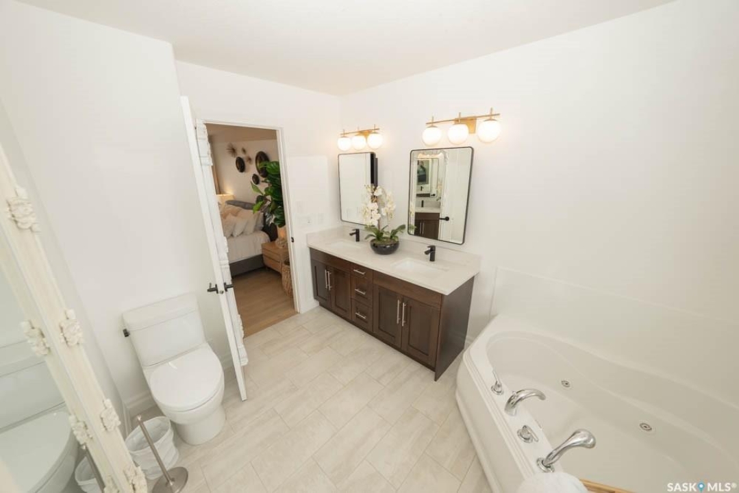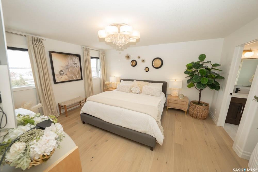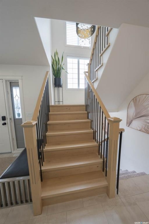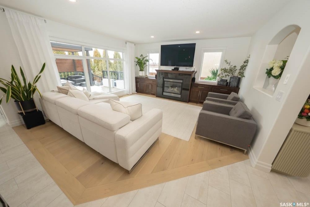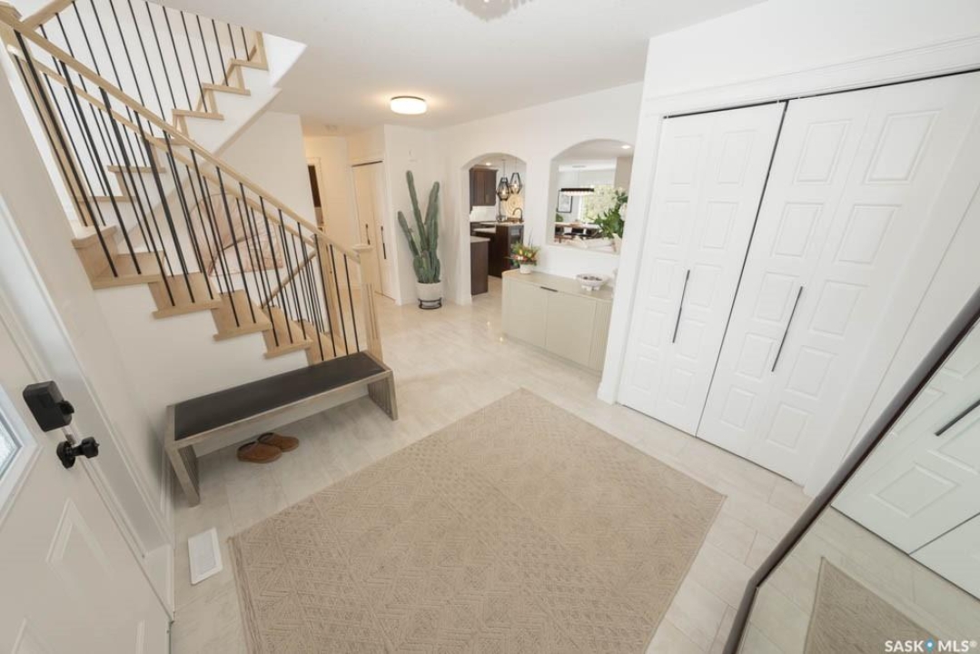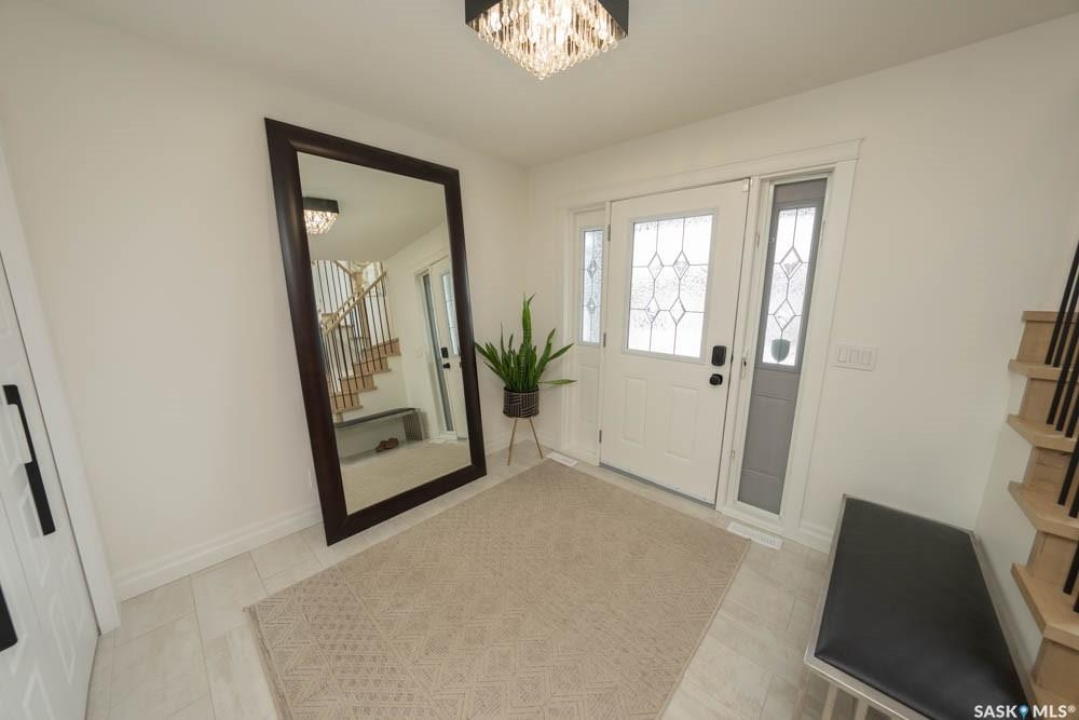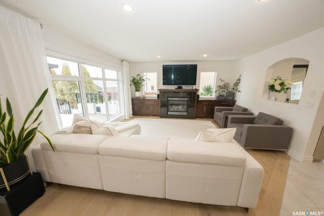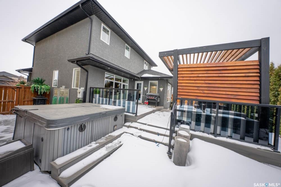 Welcome to your perfect family home in the highly sought-after Willowgrove neighbourhood! Ideally located just minutes from schools, parks, restaurants, and all amenities, this stunning property offers both convenience and lifestyle. Boasting 1,893 sq ft, this beautifully maintained two-storey home is situated on a quiet cul-de-sac and features an oversized double attached garage with convenient drive-through access. Step inside and you'll immediately notice the exceptional pride of ownership—this home truly shows 15/10. The main and second levels have been fully upgraded with gorgeous white oak hardwood flooring, complemented by a modern kitchen backsplash and an impressive Watts lighting package. The backyard is a true showstopper, designed for both relaxation and entertaining. Enjoy the stunning multi-level deck complete with pergola, hot tub, patio area, and concrete pad—all while backing no neighbours for added privacy. Additional highlights include: * Brand new shingles * In-floor heating (matting system in first basement bedroom and basement bathroom) * Water heater (1 year old) * Recently serviced furnace with new motor and no cracks * Living room sound system included * Abundance of built-ins and exceptional closet space throughout This is a rare opportunity to own a turn-key, high-end family home in one of Saskatoon's most desirable neighbourhoods. Don't miss your chance to call this exceptional property home!