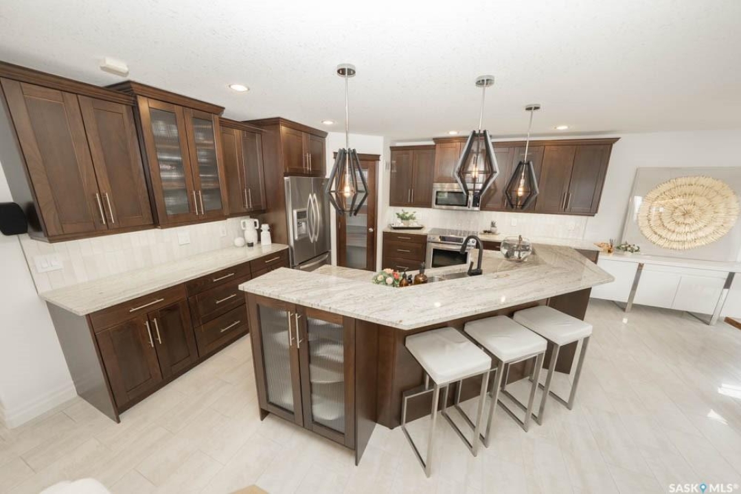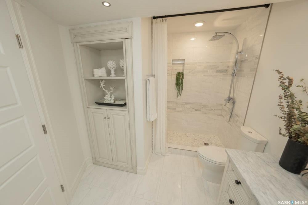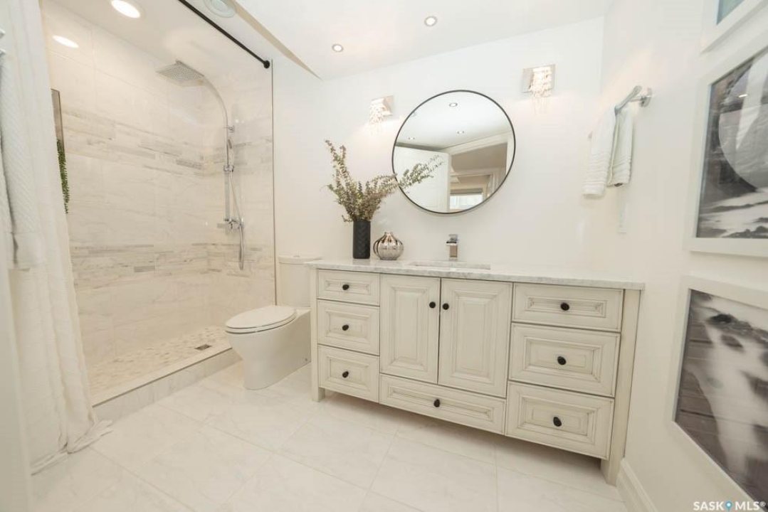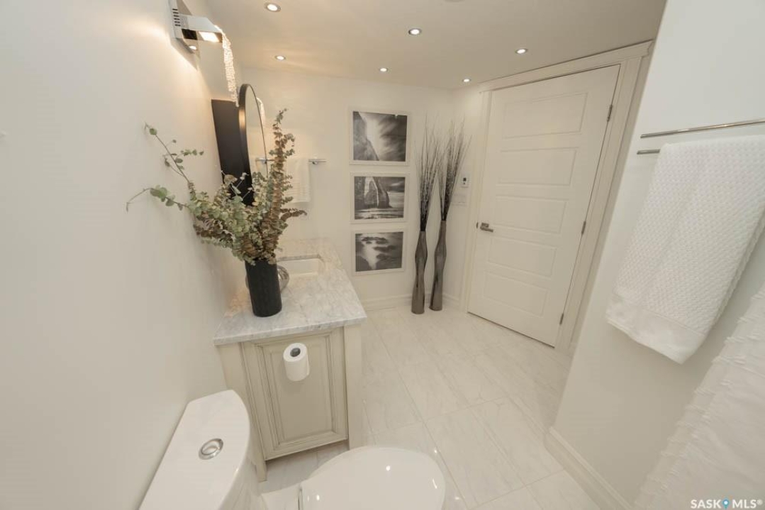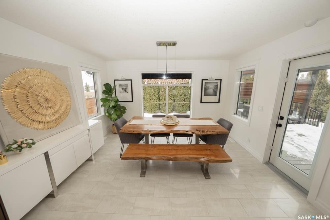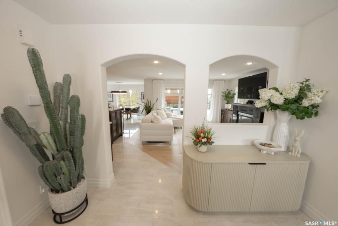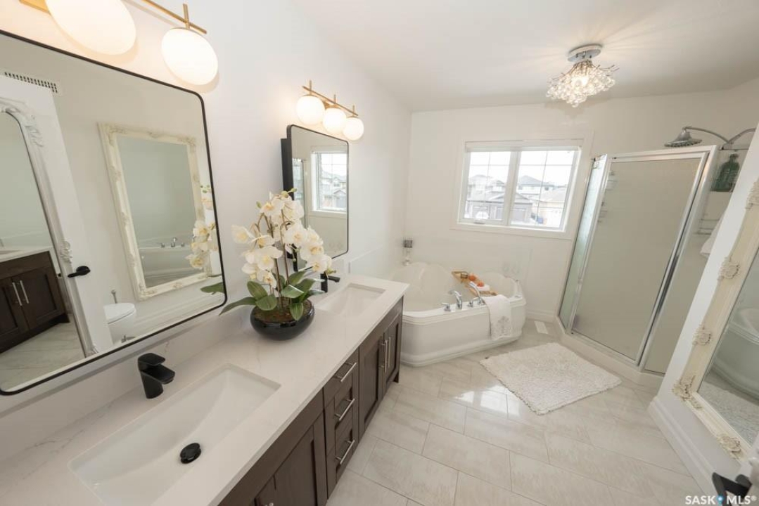 Welcome to your perfect family home in the highly sought-after Willowgrove neighbourhood! Ideally located just minutes from schools, parks, restaurants, and all amenities, this stunning property offers both convenience and lifestyle. Boasting 1,893 sq ft, this beautifully maintained two-storey home is situated on a quiet cul-de-sac and features an oversized double attached garage with convenient drive-through access. Step inside and you'll immediately notice the exceptional pride of ownership—this home truly shows 15/10. The main and second levels have been fully upgraded with gorgeous white oak hardwood flooring, complemented by a modern kitchen backsplash and an impressive Watts lighting package. The backyard is a true showstopper, designed for both relaxation and entertaining. Enjoy the stunning multi-level deck complete with pergola, hot tub, patio area, and concrete pad—all while backing no neighbours for added privacy. Additional highlights include: * Brand new shingles * In-floor heating (matting system in first basement bedroom and basement bathroom) * Water heater (1 year old) * Recently serviced furnace with new motor and no cracks * Living room sound system included * Abundance of built-ins and exceptional closet space throughout This is a rare opportunity to own a turn-key, high-end family home in one of Saskatoon's most desirable neighbourhoods. Don't miss your chance to call this exceptional property home!