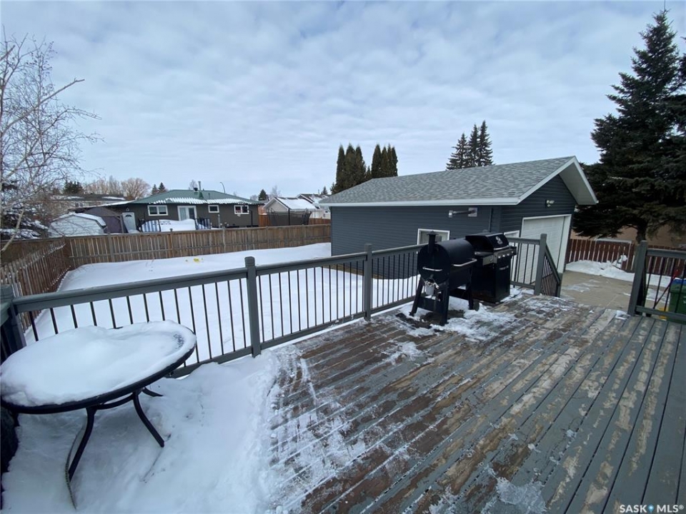 117 Stewart Cres provides 1180 sq ft in this beautiful bi-level home in Heritage Heights. As you enter the property the upgrades to the interior meet your eyes immediately. The living room area provides a large space, and the east-facing window invites the natural light to fill in. Adjoining the living room is your dining room space, which provides tremendous amount of space for large family gatherings. Patio doors leading to your large deck overlooking your fully fenced yard. The kitchen offers ample cabinets and counter-top space and also allows for additional cabinets if required. The primary bedroom features space for king-size furniture and sits next to your upgraded 5-piece main bath. The other bedroom is even larger for the kids to share or have as home office space. Downstairs the large rec room area and with the bi-level provides large basement windows letting the natural light throughout the basement area. Another large bedroom with double closets and access to your beautiful 2-piece washroom. The washroom has space for a large, tiled shower as the plumbing is all roughed in and water lines present to create what you'd like. The laundry room provides additional storage and hosts your upgraded high efficient furnace. Water and softener. Some the recent upgrades include, garage was insulated and heated in 2020, bathroom upgrade 2021, main flooring 2025 water heater, 2025 basement bathroom and trim and flooring and in 2026 dishwasher and the range hood. Outside your 22x26 natural gas heated garage provides all the room for your vehicles and tools. Situated on a perfect cres within a minute walk to the dual elementary school and around the corner from Heritage Heights Park. Don't miss out on this opportunity!