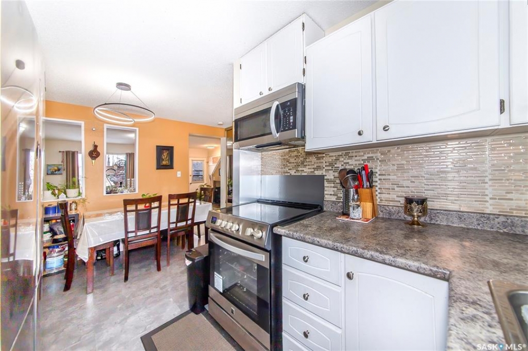 Welcome to #147-1128 McKercher Dr, Situated in the desirable Wildwood Village, this well-maintained 3-bedroom, 2-bath townhouse offers comfort, convenience, and exceptional value. Ideally located directly across from a playground and close to bus routes and all 8th Street amenities, this home is perfect for families, first-time buyers, or investors. The bright main floor features a spacious living room with a large south-facing window, filling the space with natural light, and opens seamlessly to the dining area. The functional kitchen includes a built-in dishwasher, backsplash, microwave hood fan, double sink, and a window overlooking the playground. A convenient half bath completes the main level. Upstairs offers laminate flooring throughout, a generous primary bedroom, two additional bedrooms, and a full bathroom. The partially finished basement provides extra living space along with a laundry/utility area. Enjoy a private, fully fenced south-facing backyard with patio—deeper than most units. Recent updates add peace of mind, and with condo fees covering common area maintenance, exterior building maintenance, garbage, lawn care, snow removal, water, and reserve fund contributions, this is a fantastic opportunity in a sought-after east-side location. Book your private showing today!