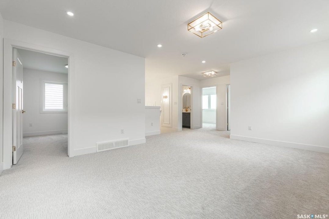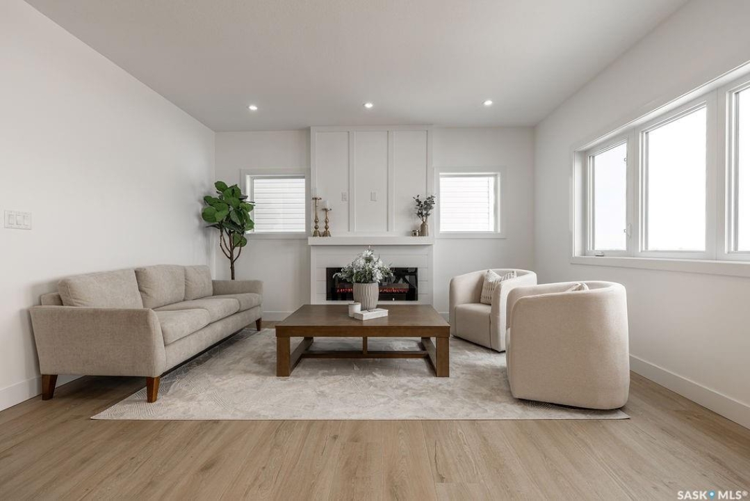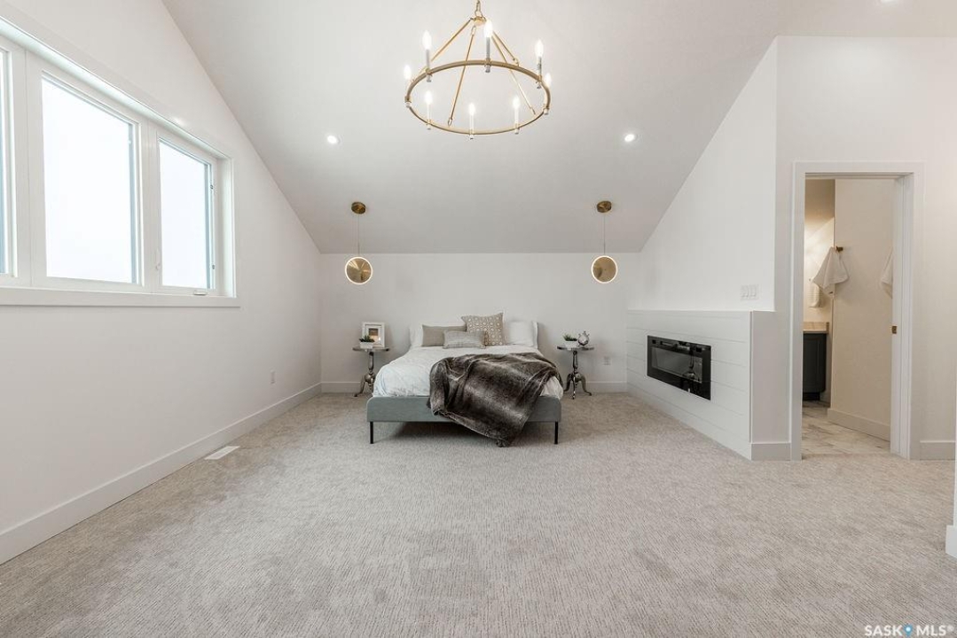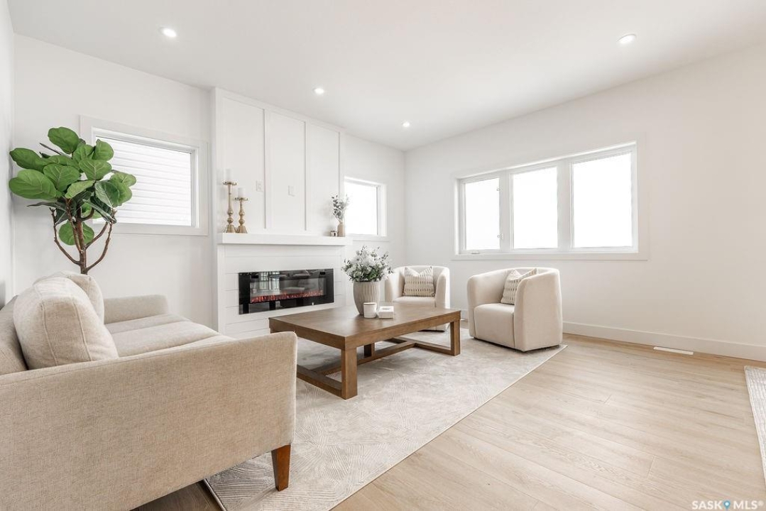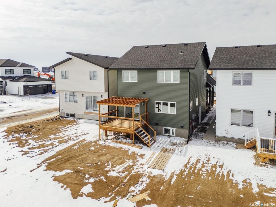 Welcome to 307 Sharma Crescent — a luxury high-end build in Aspen Ridge featuring a legal two-bedroom suite and upgrades you won't typically find in new construction. Step inside and immediately notice the attention to detail throughout. The main floor offers convenient access to the attached, insulated, and heated oversized double garage, a bright front office, and a 2-piece bathroom. The stunning high-end kitchen features stainless steel appliances, quartz countertops, an eat-up island, walk-in pantry, and a stylish range hood. The kitchen flows seamlessly into the dining area with garden doors leading to a finished deck, perfect for outdoor entertaining. The spacious living room is filled with natural light from large windows and is anchored by a modern electric fireplace, all within a beautiful open-concept layout. Upstairs you'll find a huge bonus room, convenient second-floor laundry, and a total of four bedrooms. There is a 4-piece main bathroom, and the luxurious primary suite is truly a retreat, featuring a vaulted ceiling, electric fireplace, space for a sitting area, a large walk-in closet with a built-in makeup desk, and a stunning 4-piece ensuite with double sinks and a large walk-in tiled shower. The basement features a legal two-bedroom suite with a separate entrance, modern kitchen, living room, its own laundry, and a 3-piece bathroom with a large walk-in tiled shower — perfect for extended family or rental income. Additional features include central air conditioning, luxury vinyl plank flooring, upgraded millwork and lighting, and a finished driveway. This home is packed with upgrades and offers luxury, space, and income potential all in one of Saskatoon's most desirable neighbourhoods.