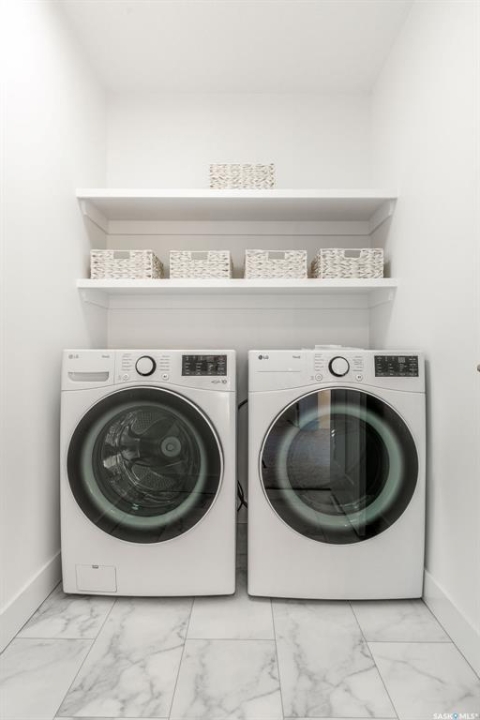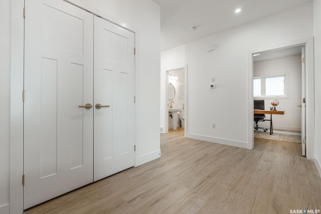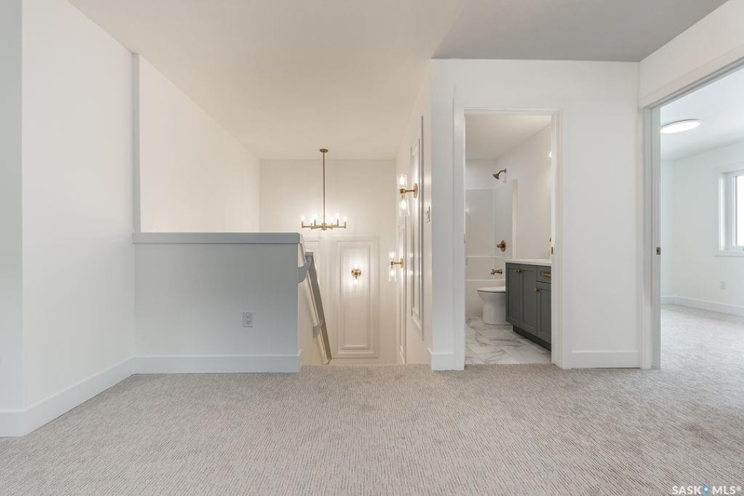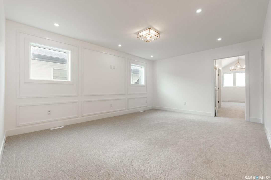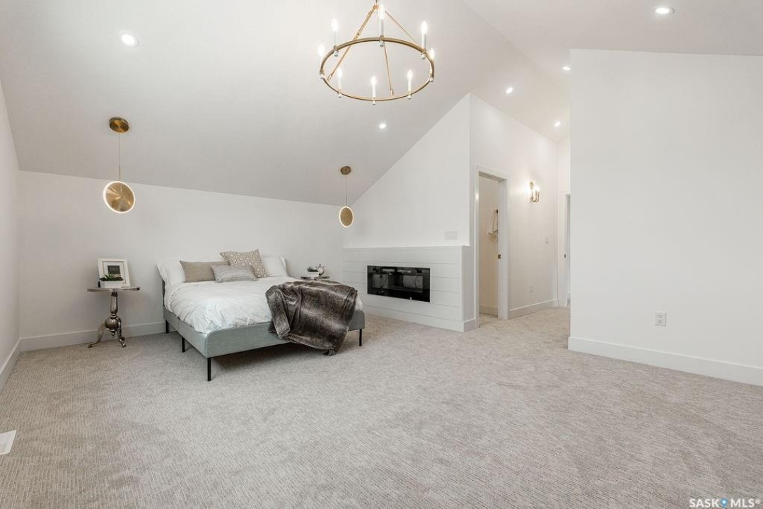 Welcome to 307 Sharma Crescent — a luxury high-end build in Aspen Ridge featuring a legal two-bedroom suite and upgrades you won't typically find in new construction. Step inside and immediately notice the attention to detail throughout. The main floor offers convenient access to the attached, insulated, and heated oversized double garage, a bright front office, and a 2-piece bathroom. The stunning high-end kitchen features stainless steel appliances, quartz countertops, an eat-up island, walk-in pantry, and a stylish range hood. The kitchen flows seamlessly into the dining area with garden doors leading to a finished deck, perfect for outdoor entertaining. The spacious living room is filled with natural light from large windows and is anchored by a modern electric fireplace, all within a beautiful open-concept layout. Upstairs you'll find a huge bonus room, convenient second-floor laundry, and a total of four bedrooms. There is a 4-piece main bathroom, and the luxurious primary suite is truly a retreat, featuring a vaulted ceiling, electric fireplace, space for a sitting area, a large walk-in closet with a built-in makeup desk, and a stunning 4-piece ensuite with double sinks and a large walk-in tiled shower. The basement features a legal two-bedroom suite with a separate entrance, modern kitchen, living room, its own laundry, and a 3-piece bathroom with a large walk-in tiled shower — perfect for extended family or rental income. Additional features include central air conditioning, luxury vinyl plank flooring, upgraded millwork and lighting, and a finished driveway. This home is packed with upgrades and offers luxury, space, and income potential all in one of Saskatoon's most desirable neighbourhoods.
