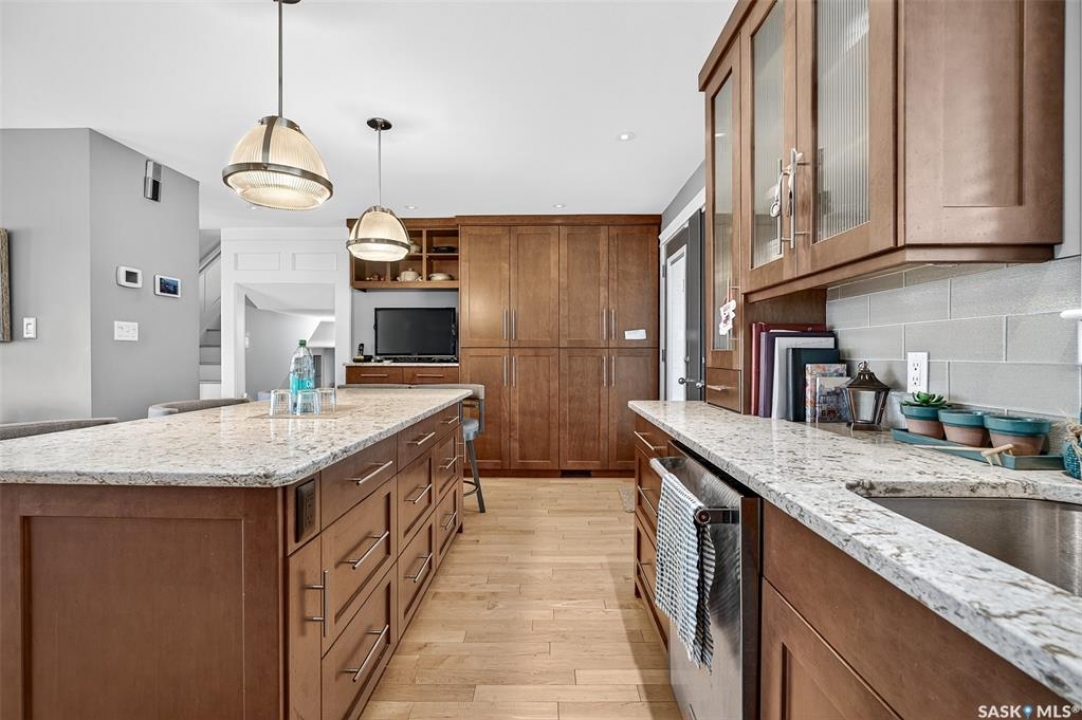 One Owner, Custom Built 5-level split offering an impressive 1,957 sq ft of thoughtfully designed living space. Located in the highly sought-after Sunningdale area, this home showcases craftsmanship and foresight well beyond its year built. As you enter the main level features an open-concept design that seamlessly blends functionality and style. A spacious living room with large windows fills the space with natural light and creates a warm, welcoming atmosphere. The generous dining area flows effortlessly into the renovated kitchen, which is a true highlight — complete with stone countertops, stainless steel appliances, an eat-in island, abundant cabinetry, and an area that could be a coffee bar. Perfect for both everyday living and entertaining. Upstairs is a rare find….4 bedrooms all on one level. There are three bedrooms, a 4pc main bathroom and a spacious primary bedroom with a 3-piece ensuite and a large walk-in closet. As you walk into the 3rd level you enter a warm, inviting family room featuring a cozy wood-burning fireplace, with convenient access to the double attached garage with radiant heat, laundry area, 3pc bathroom and the access to the fully fenced backyard — ideal for gatherings and outdoor enjoyment. The next level offers a generous games or recreation room, providing endless possibilities for a home gym, playroom, or entertainment area. On the fifth and final level, you'll find a large versatile room with plenty of storage space, the utility area, and potential for relocating the laundry if desired. Outside, enjoy a beautifully landscaped and fully fenced yard complete with underground sprinklers, 2 sheds and a screened-in three-season deck with composite decking (which also has access off the kitchen), perfect for relaxing or entertaining while staying sheltered from the elements. This property perfectly blends quality construction, tasteful updates, and a functional multi-level layout.