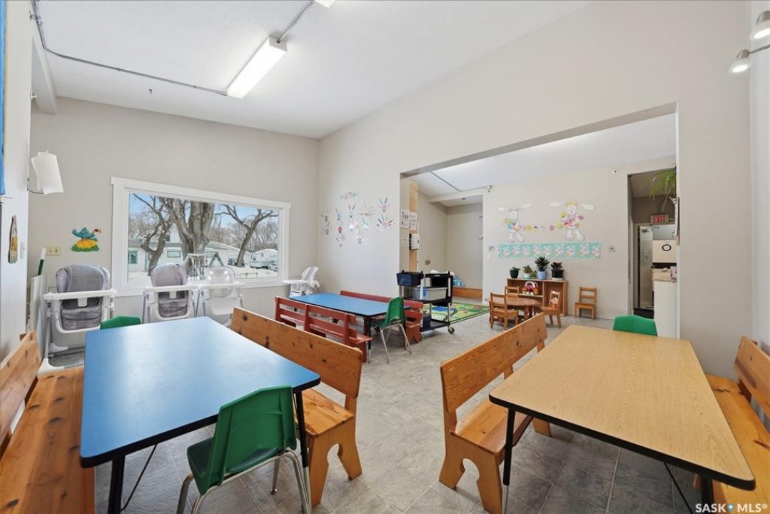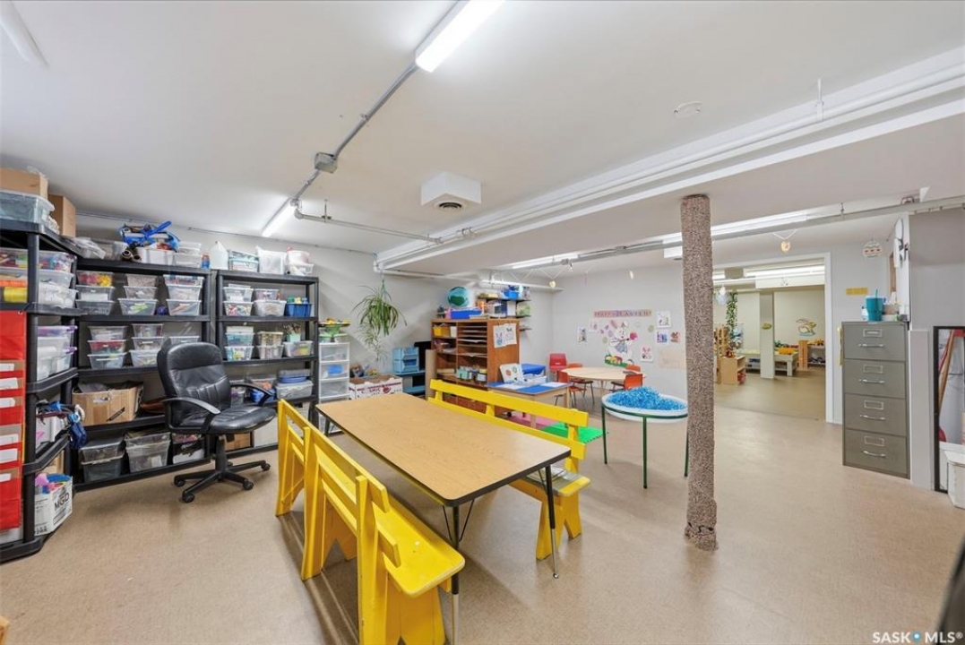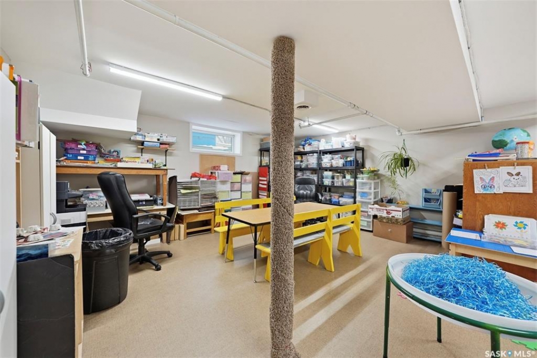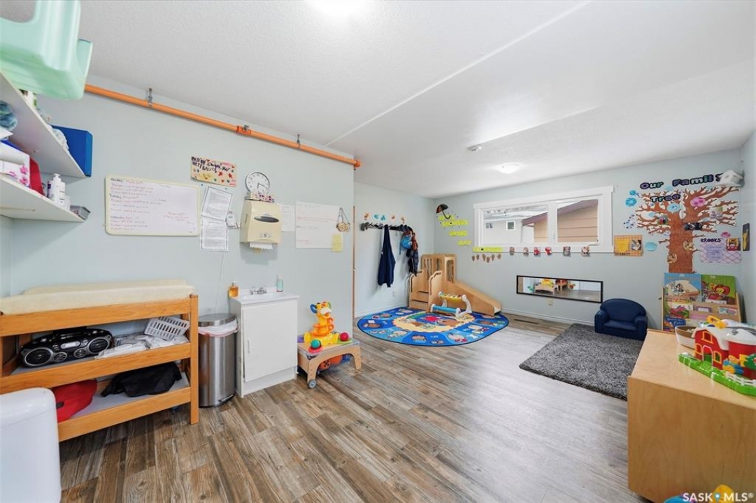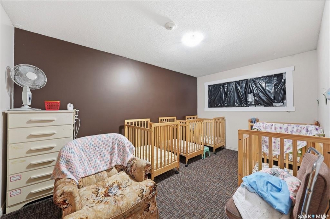 This former duplex has been in use as the local daycare, and has been continuously updated. Located on a 75ft lot on a quiet street, this property would make an excellent single family home, group home, or could be converted back to a duplex. There is a large mudroom on the north side that also accesses the back yard. Step into the main space, and your notice the vaulted ceilings and huge windows, which create an open, bright space. There is one full kitchen and one partial (ikea cabinetry, no stove) kitchen. 2 - 2 pc baths previously had bath tubs, there is room to re-install. Bedrooms have been opened up to create larger spaces. Basement is open with a play room, games room, locker/storage room, utility, laundry in utility, tv room, and another 2 pc bath. Backyard is xeriscaped and fenced, and there is a fenced area in the front yard. There has been continuous updating on this building including siding, windows and furnaces in 2025, shingles 2021. and more. Must be seen to be appreciated! Call your agent today to book your private viewing!