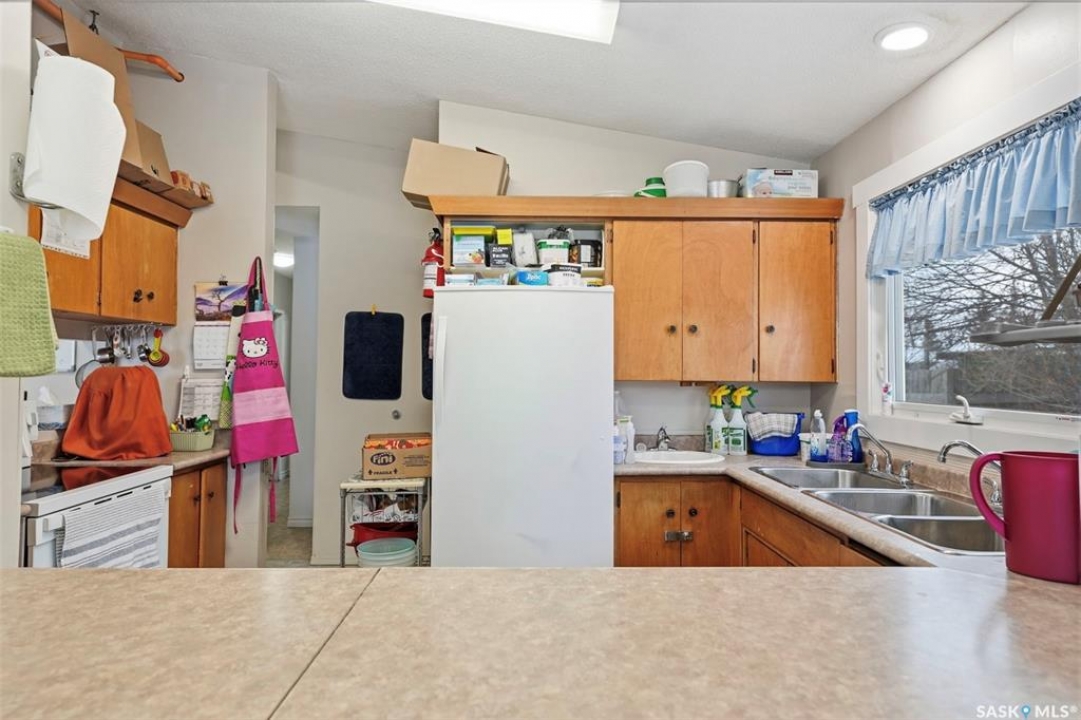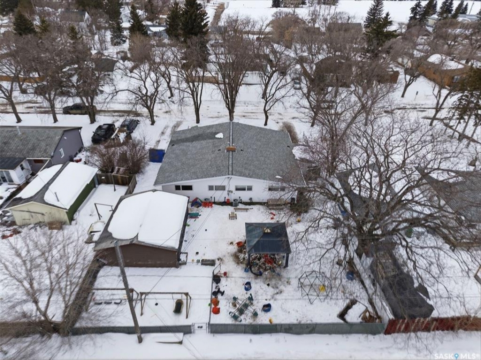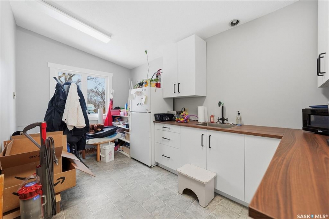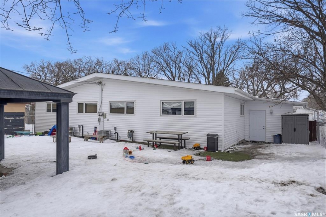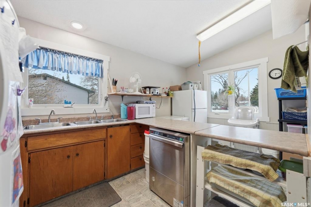 This former duplex has been in use as the local daycare, and has been continuously updated. Located on a 75ft lot on a quiet street, this property would make an excellent single family home, group home, or could be converted back to a duplex. There is a large mudroom on the north side that also accesses the back yard. Step into the main space, and your notice the vaulted ceilings and huge windows, which create an open, bright space. There is one full kitchen and one partial (ikea cabinetry, no stove) kitchen. 2 - 2 pc baths previously had bath tubs, there is room to re-install. Bedrooms have been opened up to create larger spaces. Basement is open with a play room, games room, locker/storage room, utility, laundry in utility, tv room, and another 2 pc bath. Backyard is xeriscaped and fenced, and there is a fenced area in the front yard. There has been continuous updating on this building including siding, windows and furnaces in 2025, shingles 2021. and more. Must be seen to be appreciated! Call your agent today to book your private viewing!