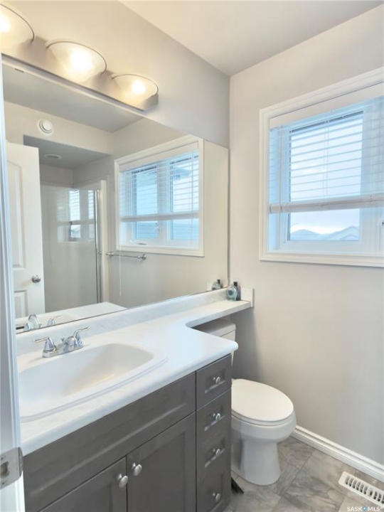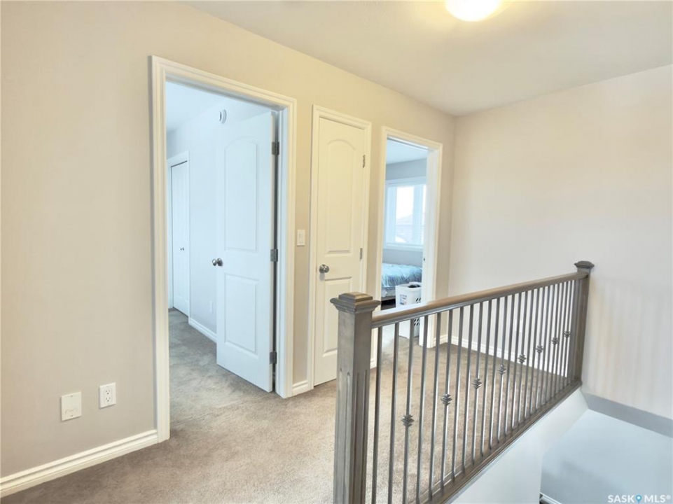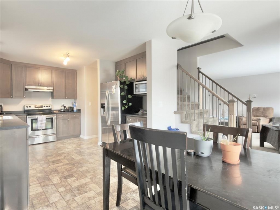 Welcome to 831 Korol Way — a well-maintained 1,448 sq ft two-storey home in the desirable community of Hampton Village. This 3-bedroom, 3-bathroom home offers a functional layout and stylish finishes throughout. Step inside to a spacious foyer that leads into a bright, inviting living room featuring a central wood and aluminum staircase and plenty of natural light. The maple kitchen is equipped with stainless steel appliances (fridge, stove, hood fan, and dishwasher), a dual undermount sink with a frosted window, and a convenient microwave nook. The adjoining dining area opens to a west-facing composite deck through a garden door — perfect for enjoying evening sun. The main floor also includes a 2-piece bathroom, direct entry to the garage, and a full Hunter Douglas blind package. Upstairs, you'll find a generous primary bedroom complete with a walk-in closet and 3-piece ensuite featuring a stand-up shower. Two additional well-sized bedrooms and a 4-piece bathroom complete the upper level. The professionally developed basement offers a comfortable family room, plus a framed and roughed-in bedroom and bathroom — providing excellent potential and room to grow. Additional features include central air conditioning, roughed-in central vacuum, air exchanger, alarm system, and sump pump. The double attached garage is fully drywalled. With great curb appeal and a prime location close to schools, parks, and all amenities, this home is move-in ready and a fantastic opportunity in Hampton Village.