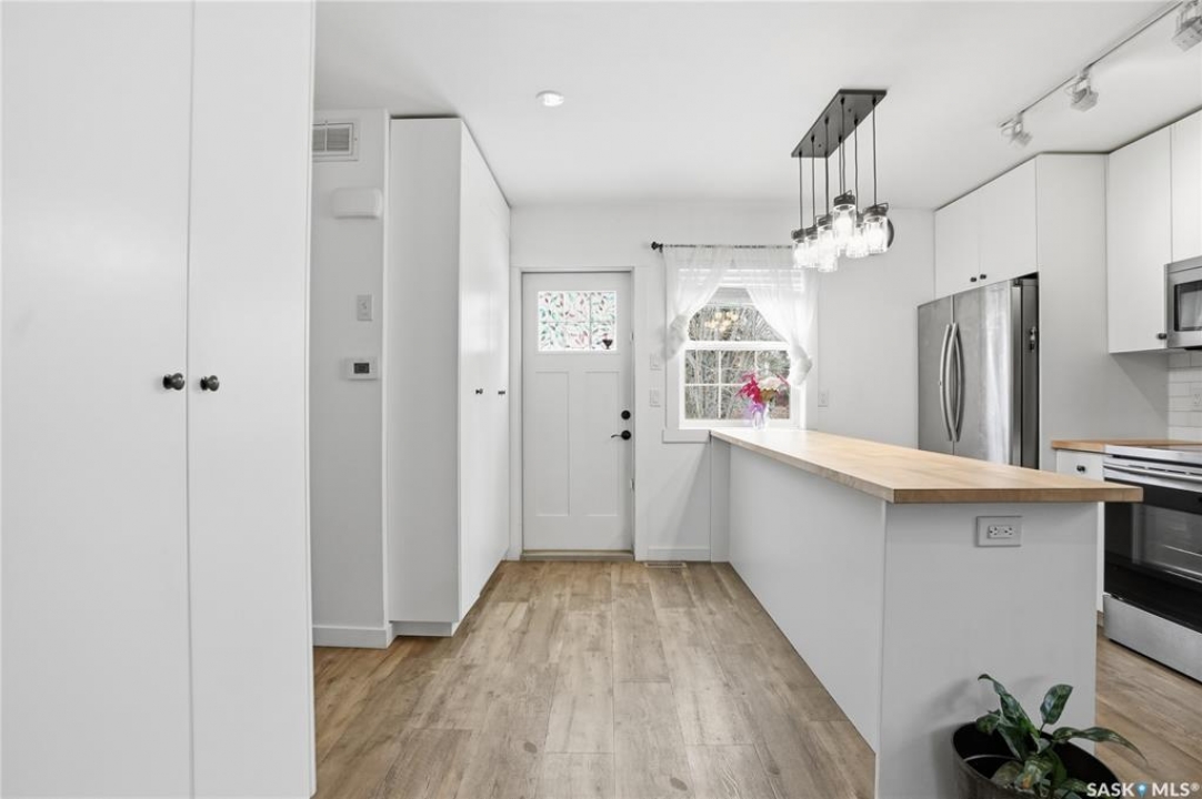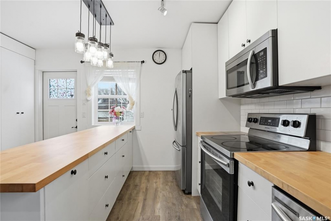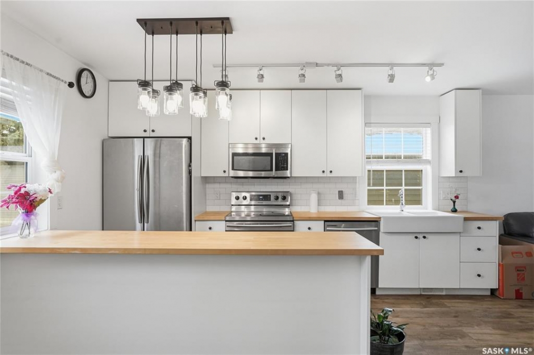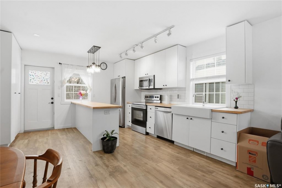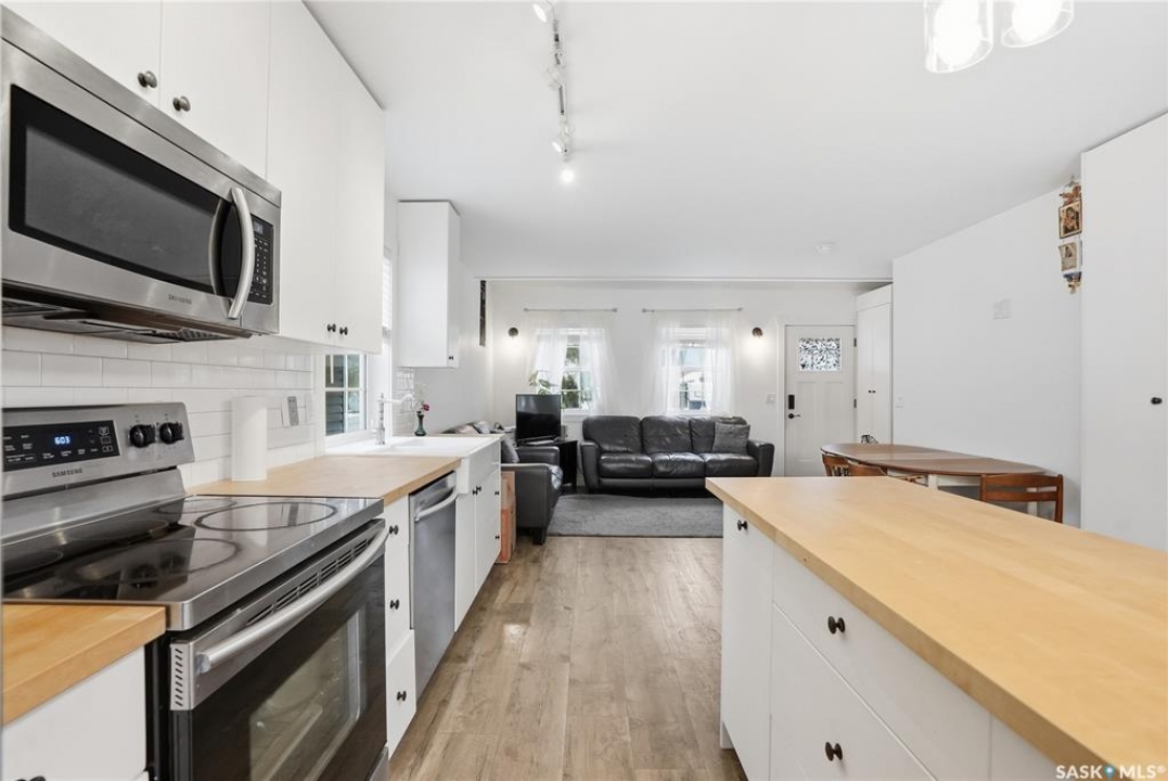890 sq. ft. spread over two levels, plus a fully developed basement. This 2-bedroom, 3-bathroom home showcases character and a distinctive urban design, with innovative use of space and abundant built-in storage throughout. The open-concept main floor features a spacious kitchen with an oversized island, white cabinetry,, farmhouse sink, and butcher block countertops. Upstairs, you'll find two bedrooms and a 4-piece bathroom. The fully developed basement adds even more living space, offering a large open-concept family or media room or could work as a bedroom, no closet. As well as another 4 piece washroom. Parking at back off alley (no pad or gravel)