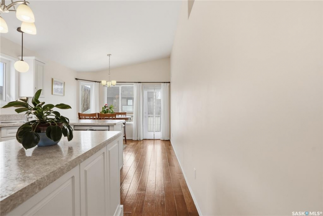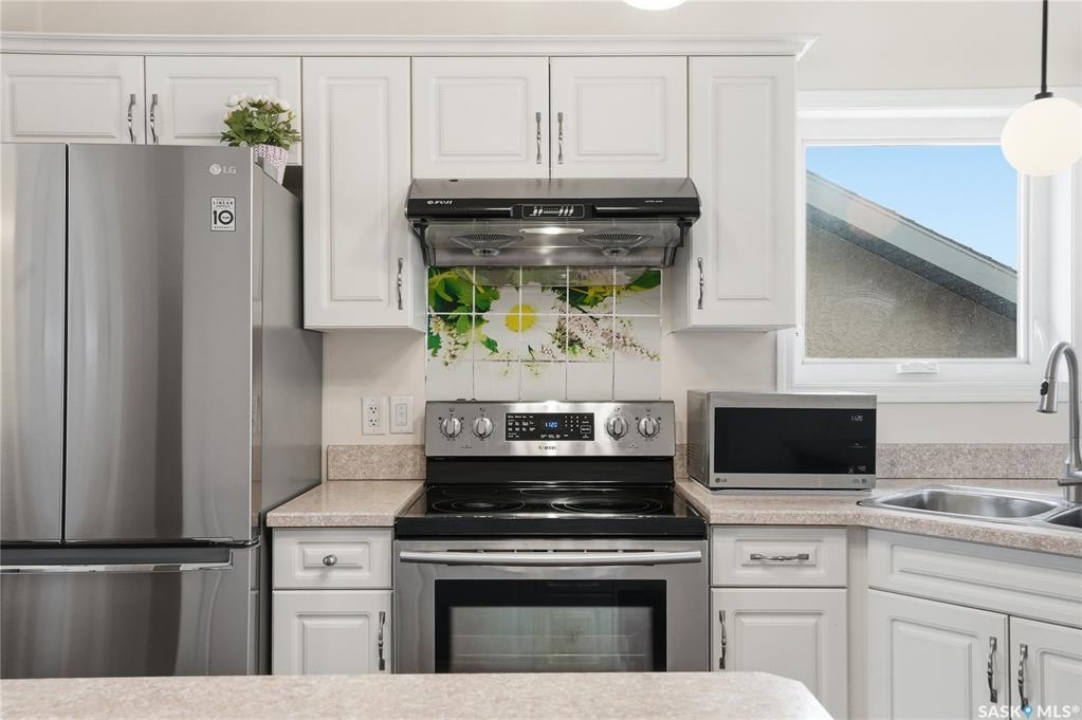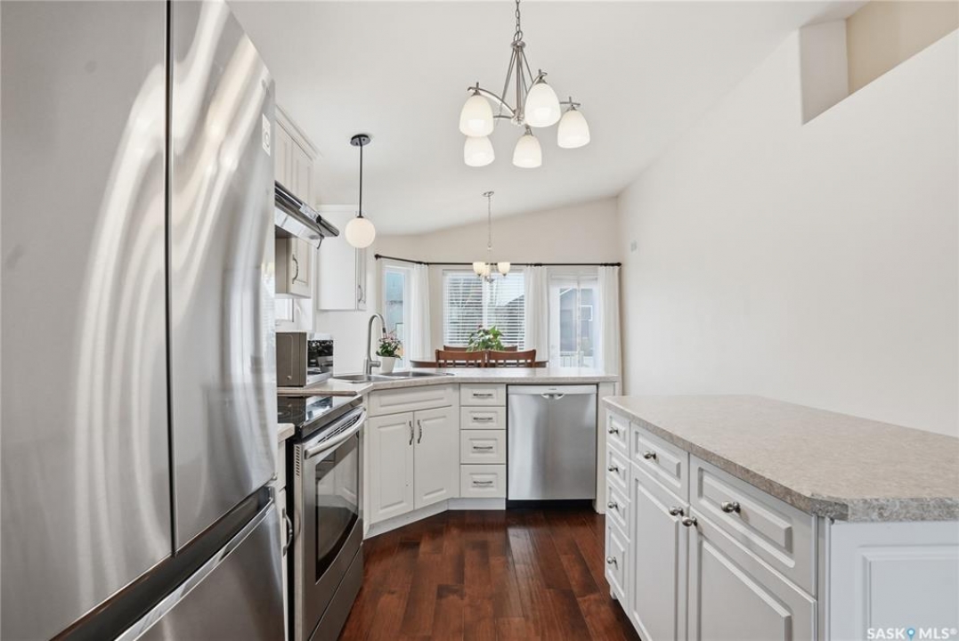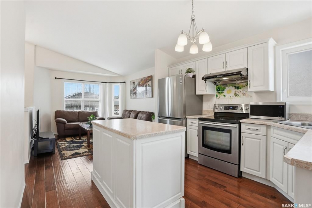 A great opportunity in Stonebridge—this 1,010 sq. ft. three-bedroom, 2 full bath raised bi-level with a fully fenced backyard is in immaculate, move-in ready condition. Engineered hardwood runs throughout the main floor, including the bedrooms! Enter into this bright bi-level to a raised living room with vaulted ceilings and a large front picture window. The living room connects to the open-concept kitchen with stainless steel appliances, a central island, plenty of classic white cabinets and an exterior-vented hood fan. The connected dining area overlooks the backyard, with a garden door leading to a composite deck—perfect for summer barbecues. The main floor also offers three bedrooms and two full 4-piece bathrooms, including a primary bedroom with a walk-in closet. The basement provides an additional 1,000 sq. ft. of space and is open for future development, featuring insulated exterior walls and several large raised windows. The laundry and mechanical are also located on this level. The attached garage is fully finished and drywalled, and a concrete double driveway is in place. Don't miss your opportunity to secure a beautifully maintained home in one of Saskatoon's most sought-after neighbourhoods: within walking distance of two parks with ponds, two schools, close to many shops, restaurants and amenities, and within a short drive to freeway access. Presentation of offers: Wednesday, April 8 at 5:30 PM. PCDS in supplements.