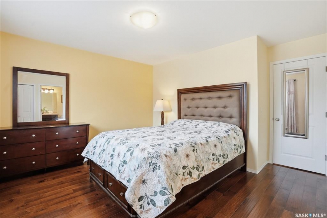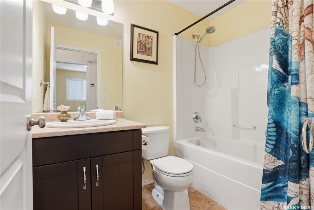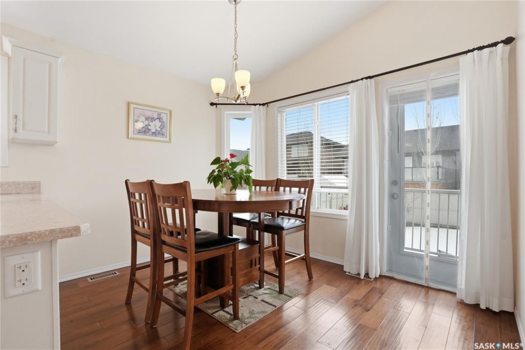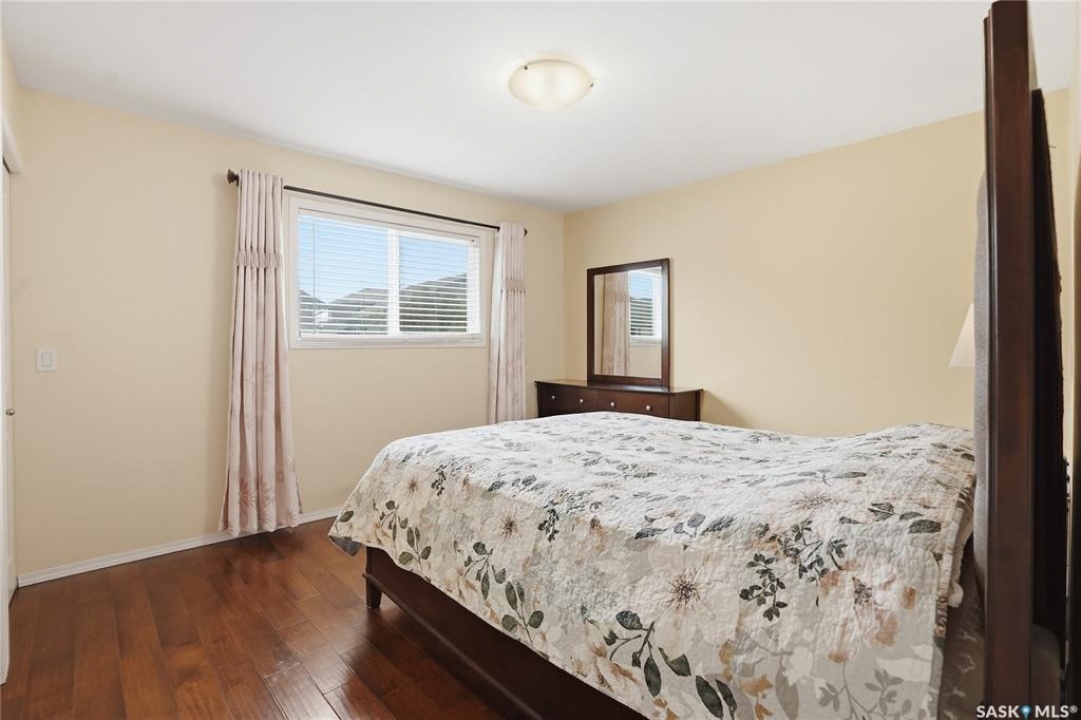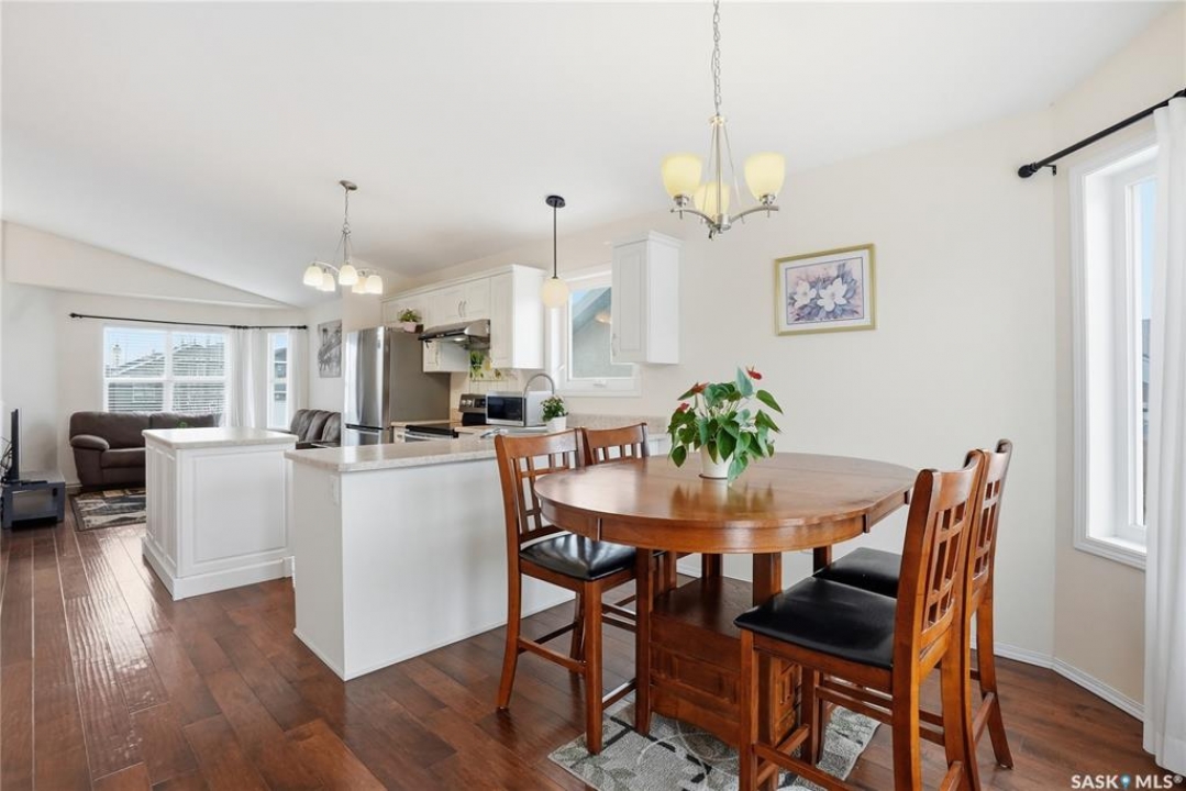 A great opportunity in Stonebridge—this 1,010 sq. ft. three-bedroom, 2 full bath raised bi-level with a fully fenced backyard is in immaculate, move-in ready condition. Engineered hardwood runs throughout the main floor, including the bedrooms! Enter into this bright bi-level to a raised living room with vaulted ceilings and a large front picture window. The living room connects to the open-concept kitchen with stainless steel appliances, a central island, plenty of classic white cabinets and an exterior-vented hood fan. The connected dining area overlooks the backyard, with a garden door leading to a composite deck—perfect for summer barbecues. The main floor also offers three bedrooms and two full 4-piece bathrooms, including a primary bedroom with a walk-in closet. The basement provides an additional 1,000 sq. ft. of space and is open for future development, featuring insulated exterior walls and several large raised windows. The laundry and mechanical are also located on this level. The attached garage is fully finished and drywalled, and a concrete double driveway is in place. Don't miss your opportunity to secure a beautifully maintained home in one of Saskatoon's most sought-after neighbourhoods: within walking distance of two parks with ponds, two schools, close to many shops, restaurants and amenities, and within a short drive to freeway access. Presentation of offers: Wednesday, April 8 at 5:30 PM. PCDS in supplements.