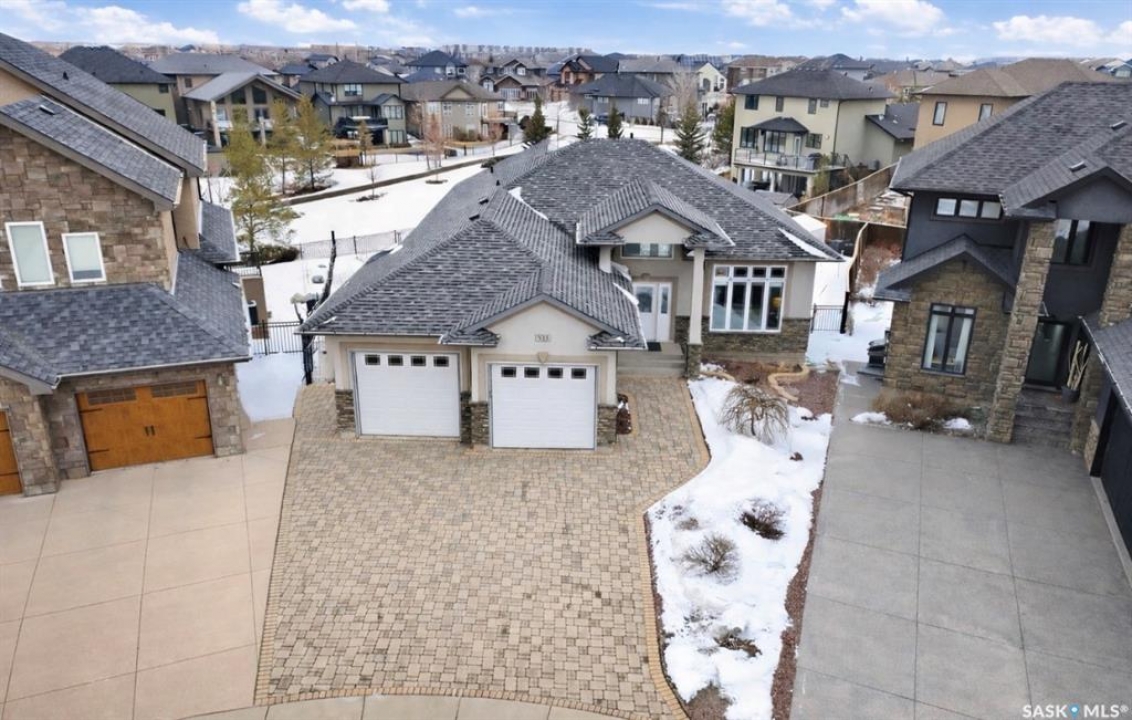 Large Willowgrove custom 1,772 sq. ft. walkout bungalow backing the park on a 13,500 sq. ft. lot, located at the end of a quiet terrace. Welcome to 511 Bennion Terrace. This spacious bungalow offers 5 bedrooms and 3 full baths. Step into an open concept main floor with soaring 10-foot ceilings and 8' doors throughout- the open concept great room connects living, dining, and the kitchen area, with crown moldings and a gas fireplace highlighting the space. The kitchen is truly the heart of the home with classic custom cabinets, a large island, granite surfaces, stainless steel JennAir appliances, gas range, and double-height upper cabinetry with crown trim. Additional kitchen features include tile backsplash, built-in pantry and desk station. Garden doors lead to a large deck overlooking the park. The main floor also offers 3 spacious bedrooms and 2 full baths, including a luxurious primary suite with access to the deck —perfect for morning coffee with views! Main also has a functional laundry room with built-in cabinetry, granite counters, and a sink. The lower level provides more exceptional living space with floor-to-ceiling windows, 9' ceilings and walkout access- the oversized great room room includes a media lounge, games area, and wet bar with granite counters and a beverage fridge. Also, 2 lrg bedrooms and a 4-piece bath are on the walkout level. Set on a wedge lot backing the park and walking paths, the yard is fully landscaped with paving stone driveway, shed, raised garden beds, patio, 6-zone irrigation, mature fruit trees, and iron perimeter fencing. Additional features include newer boiler (2026), steel full span beam, central vac with sweeps, central air, in-floor heat in ensuite and basement, 2 ext gas hook-ups, French drain, upgraded screw pile deck supports, and a heated double attached garage with cabinetry, Russound audio/video system with 8 zones and more! Floor plans and full upgrade list in supplements.