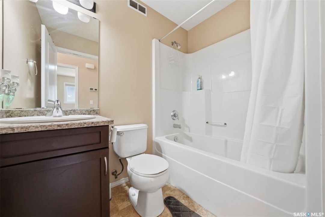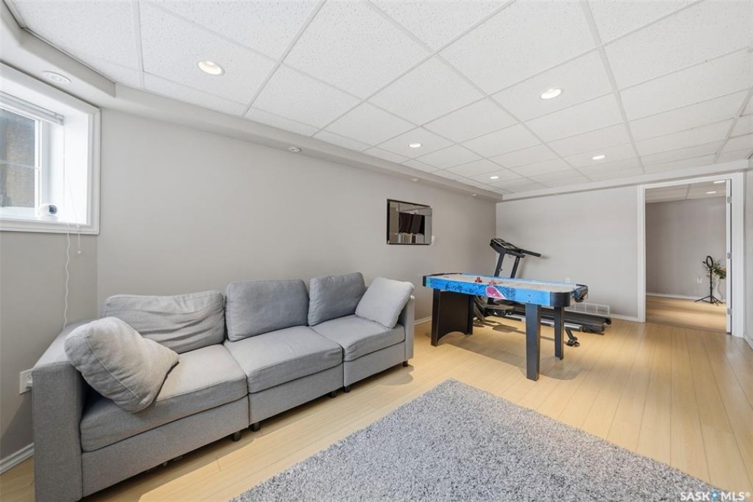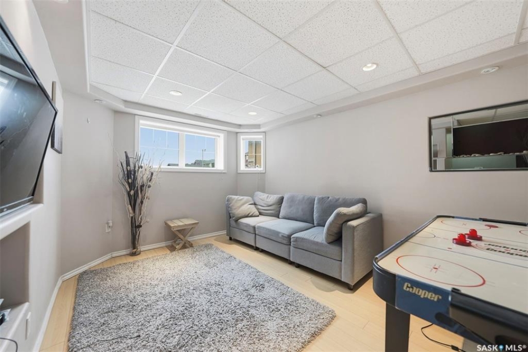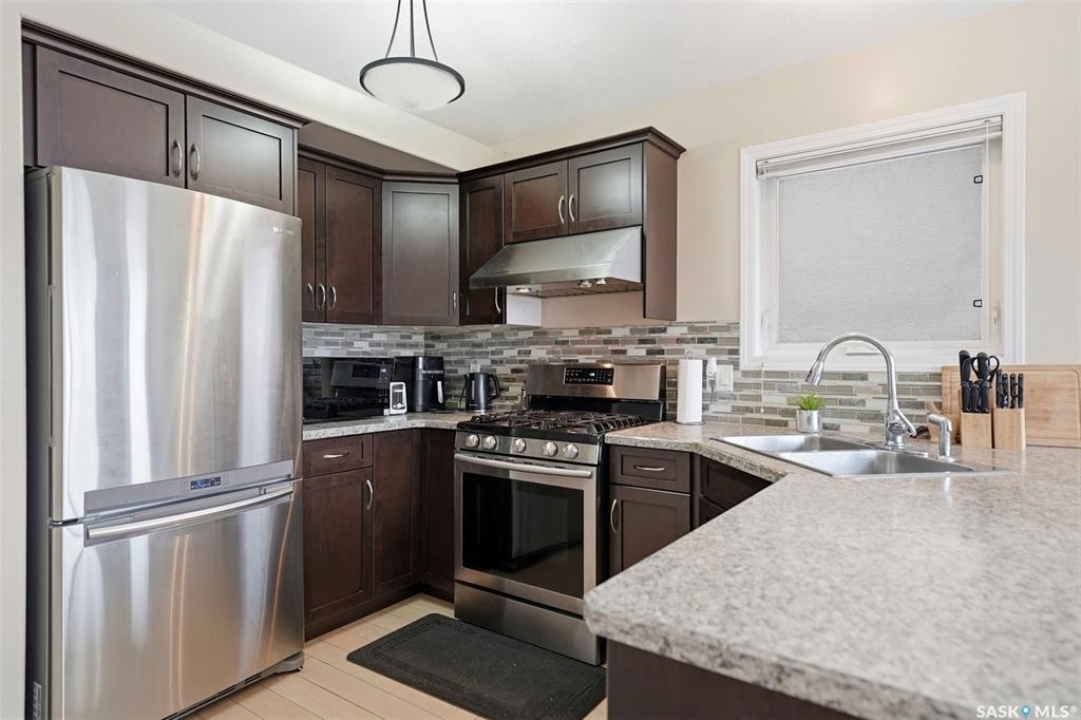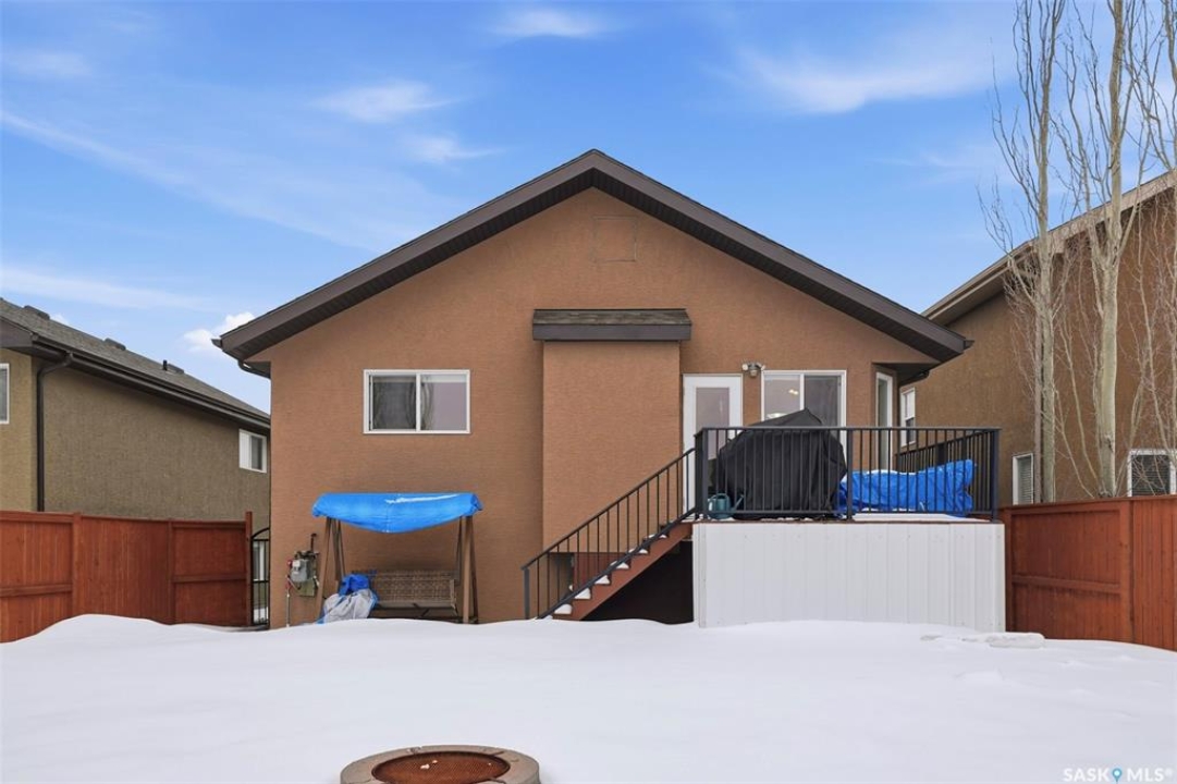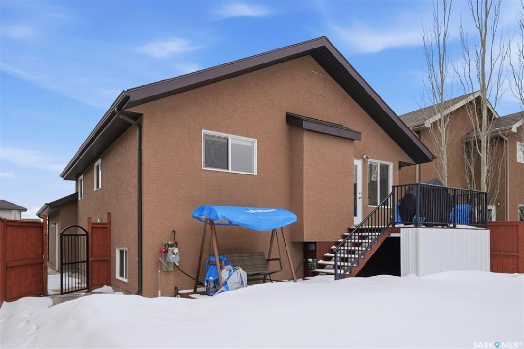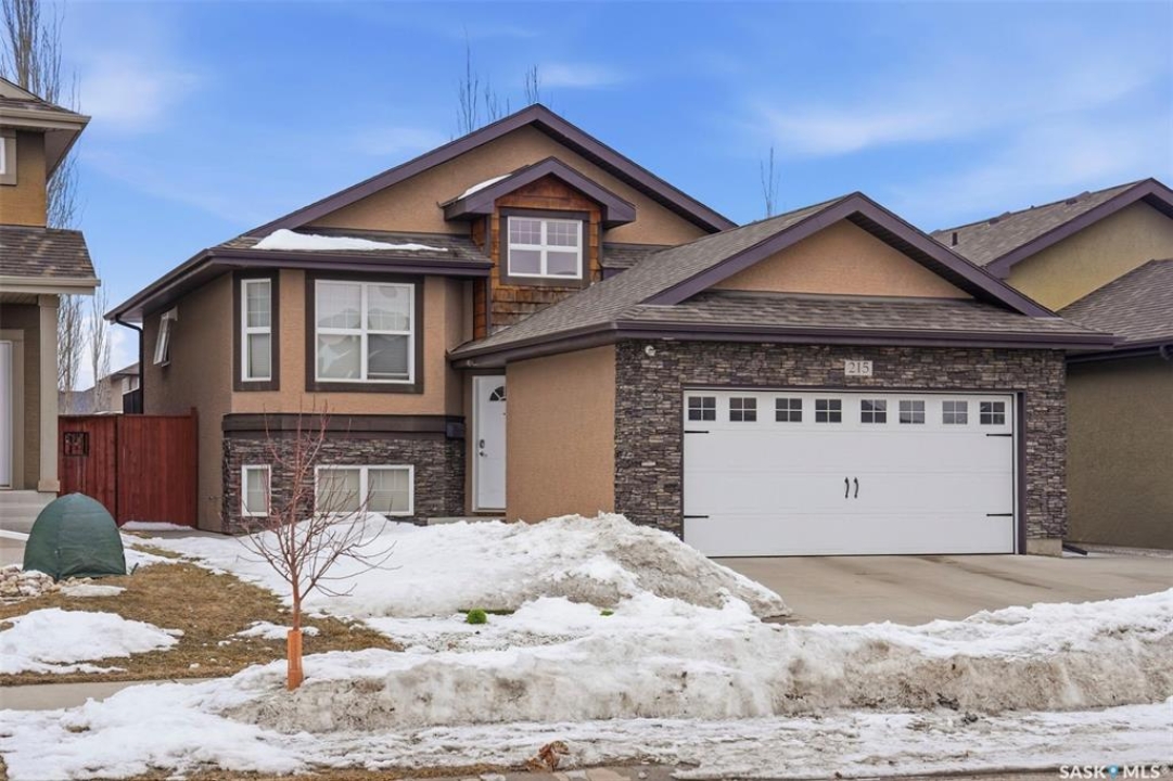 Welcome to 215 Snell Crescent in the desirable neighbourhood of Stonebridge in Saskatoon. This well-kept bi-level home is located on a quiet street and features a bright south-facing living room with plenty of natural light, a maple kitchen with gas stove, and a spacious dining area with access to a two-tier deck. The primary bedroom includes a walk-in closet and 4-piece ensuite. The fully developed basement offers a large family room, two bedrooms, and a full bathroom. Close to schools, parks, and all amenities. Includes central air conditioning and underground sprinklers.