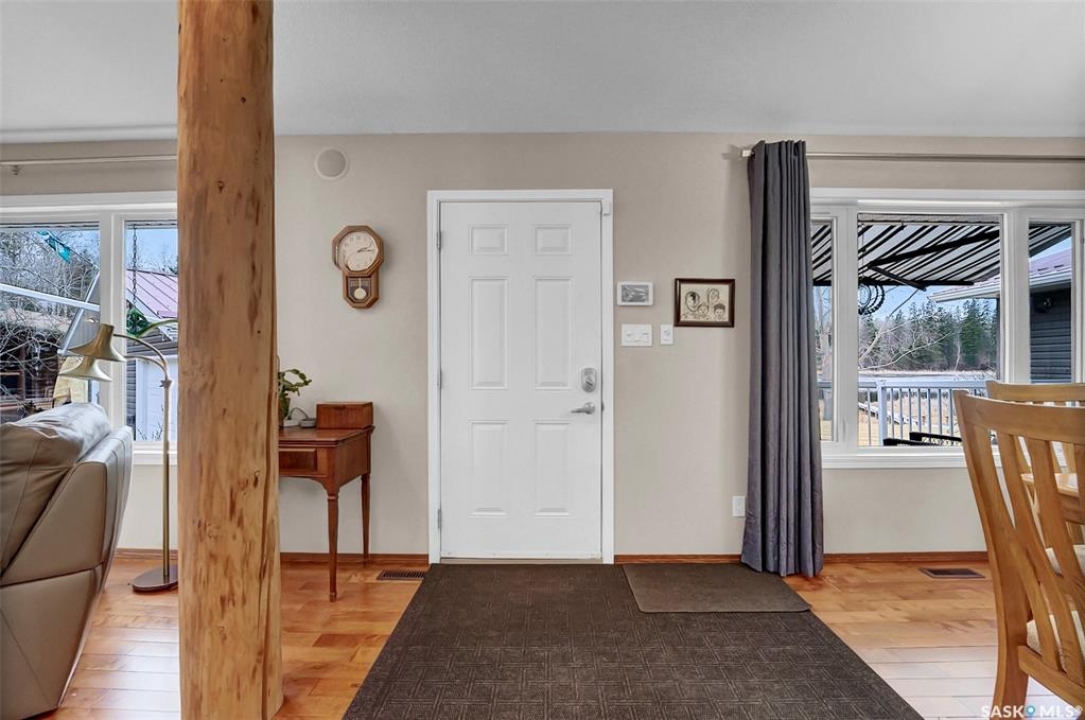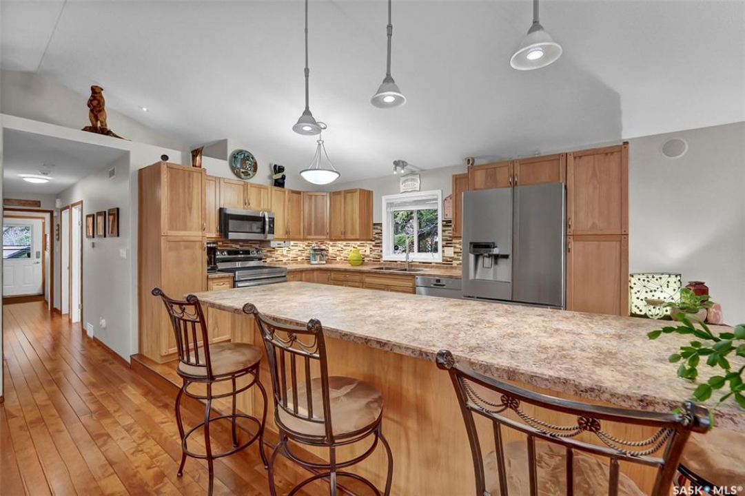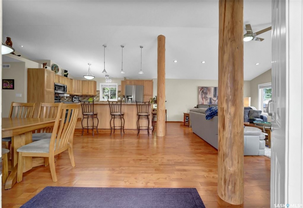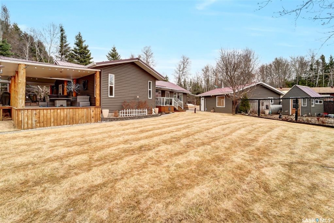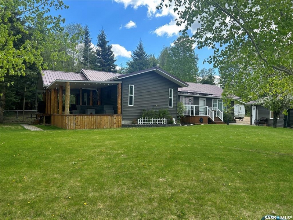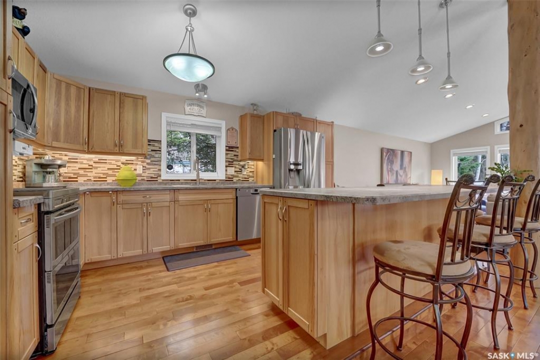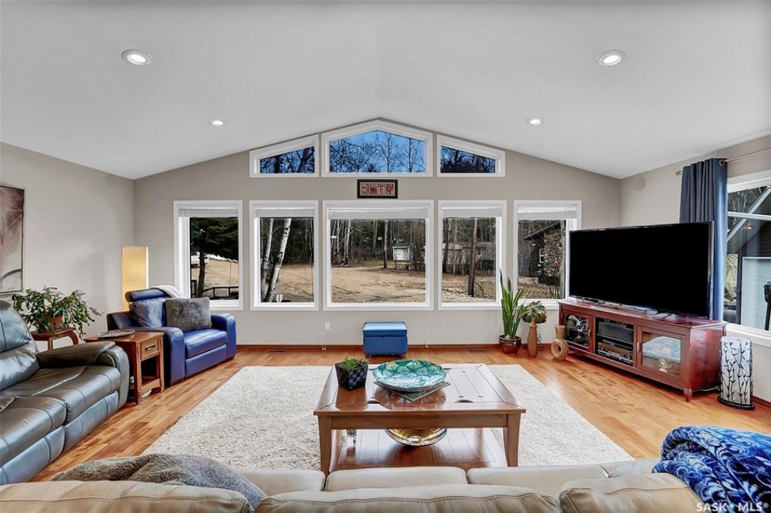 Experience year-round lakefront living at its finest with this beautiful waterfront retreat near Emma Lake. Tucked away on an exceptionally private lot, this property offers all-day sunshine and a peaceful escape just moments from the Emma Lake Golf Course. Meticulously maintained and in impeccable condition, the home welcomes you with an open-concept main floor designed for both comfort and style. Soaring vaulted ceilings elevate the living room, while the spacious kitchen—complete with an oversized island—flows seamlessly into a wall of floor-to-ceiling windows that bathe the space in natural light and showcase breathtaking views. The generous primary suite is a true sanctuary, featuring a beautifully appointed three-piece ensuite and a large walk-in closet. Two additional bedrooms provide plenty of space for family and guests. Step outside to an expansive deck highlighted by striking post-and-beam accents—perfect for entertaining or simply relaxing in the serene surroundings. The property also boasts a heated 24x24 detached garage, additional storage sheds, and ample parking, including space for an RV. The thoughtfully landscaped yard offers a cozy fire pit area, garden space, and direct access to Beaver Lodge Lake via your private dock—ideal for kayaking, canoeing, and enjoying pristine, fresh-water living. For added peace of mind, the home is equipped with an automatic Generac backup system, ensuring uninterrupted comfort year-round. This exceptional property truly must be seen to be fully appreciated.