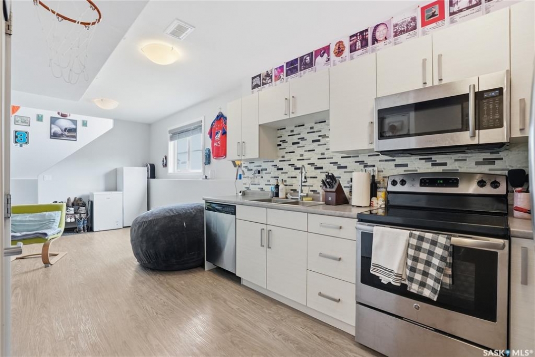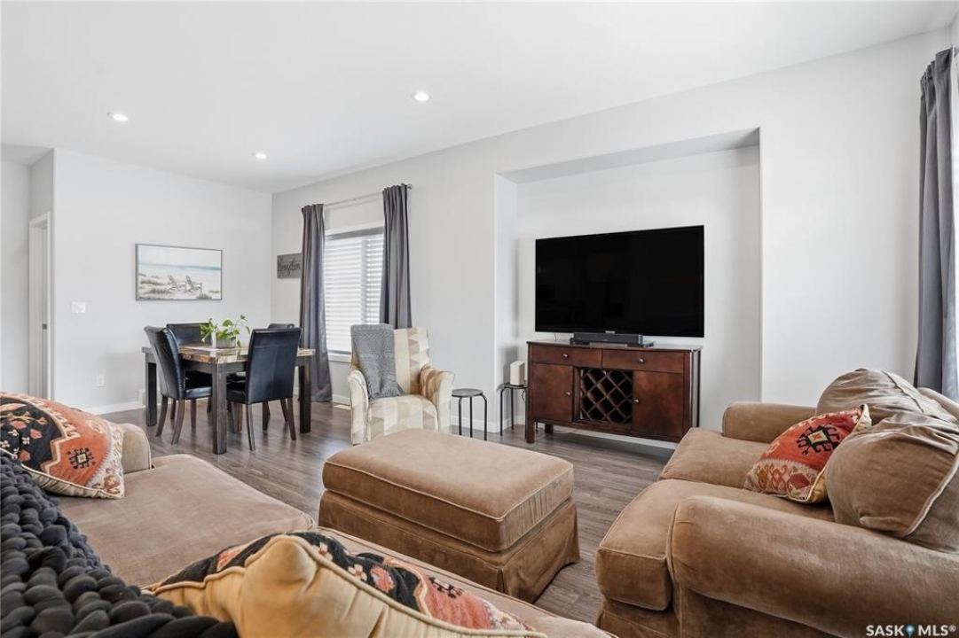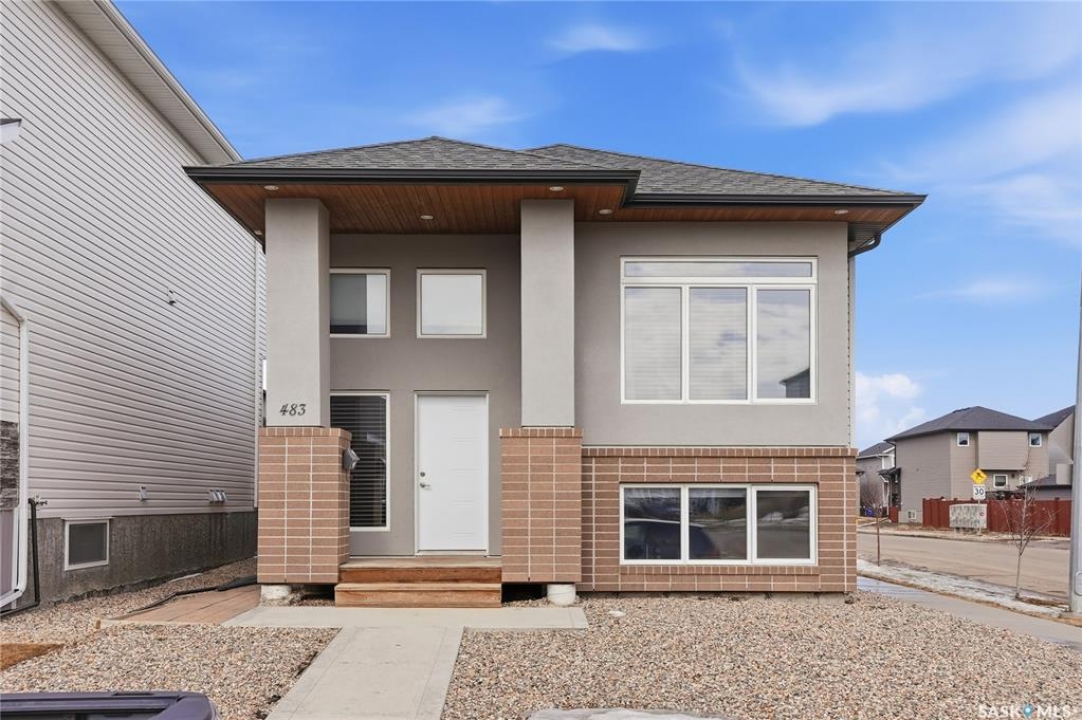 Welcome to 483 Boykowich Street in Evergreen—an exceptionally well-maintained home offering versatility, income potential, and a prime location. This 1,133 sqft property features a bright and functional main floor with an open-concept layout, quartz countertops, laminate flooring, and an abundance of natural light throughout. The main level includes 3 bedrooms and 2 bathrooms, plus a front lower family room currently being used as an additional bedroom—perfect for growing families or those needing flexible space. Outside, you'll find a low-maintenance yard designed for easy living, complete with a private covered deck, ideal for relaxing or entertaining. The corner lot provides added privacy and convenience, along with ample side parking and a separate entrance to the basement. Downstairs, the legal 2-bedroom, 1-bathroom suite offers excellent revenue potential or space for extended family. Additional highlights include a double detached garage, close proximity to bus routes, and walking distance to two elementary schools, shopping, and everyday amenities. A fantastic opportunity in one of Saskatoon's most desirable neighbourhoods—this home checks all the boxes for homeowners and investors alike. Call your Realtor today to schedule a viewing!