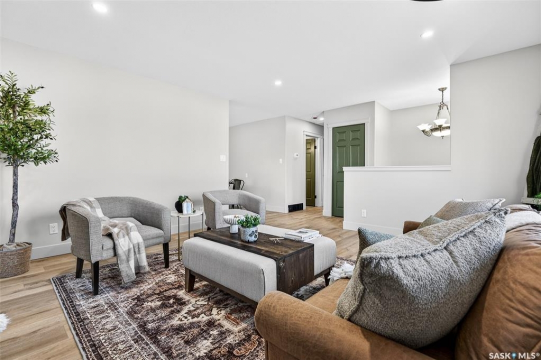 BEAUTIFULLY RENOVATED and TURNKEY. INCLUDES BRAND NEW 24' x 24' DOUBLE GARAGE!! (Garage package to be constructed to ‘lock-up' including 2 overhead doors with electrified garage door openers, 36” walk-in door, matching LP smart siding and shingles to house). Exceptional 4-BEDROOM, 2-BATHROOM BILEVEL offers stylish updates, modern comfort, and an unbeatable family-friendly location, just MOMENTS from the BRAND NEW Joint-Use Elementary School. Stunning CURB APPEAL with brand new LP SMART SIDING wrapping around the entire exterior, with striking front metal accents (Gentek Moderno vertical siding). Make sure to explore the FULLY-FENCED backyard – an ENORMOUS CORNER LOT – that will surprise you with the amount of space it offers. Exterior also features new metal GATES, new raised DECK, new SHINGLES, stylish new black SOFFIT/FASCIA, and new EXTERIOR DOORS! And the updates don't stop there! Enter into the front entrance to discover a FULLY RENOVATED INTERIOR – A GORGEOUS PROPERTY to WALK THROUGH! New FLOORS, upgraded KITCHEN, renovated BATHROOMS, textured CEILINGS, and every little detail in between! Fully upgraded electrical throughout, including new 100amp service and panel. Brand new High-Eff FURNACE. New CENTRAL AIR CONDITIONING. Modern VINYL WINDOWS. New BLOW-IN INSULATION. All plumbing up to code, with new WATER LINES throughout home. The home has a fantastic layout – 2 bedrooms UP and 2 bedrooms DOWN – and all bedrooms are a GREAT SIZE! Spacious family room with luxury vinyl plank flooring flowing through the main floor. Formal dining space. Absolutely GORGEOUS main floor bath, with bonus LAUNDRY CHUTE tucked behind the bathroom door! The lower level is filled with large, bright windows, offering a roomy family/recreation space, ANOTHER fully-renovated bathroom, and a massive laundry/storage/utility room, complete with BONUS laundry sink/work station! INCREDIBLE VALUE in a fully complete package.