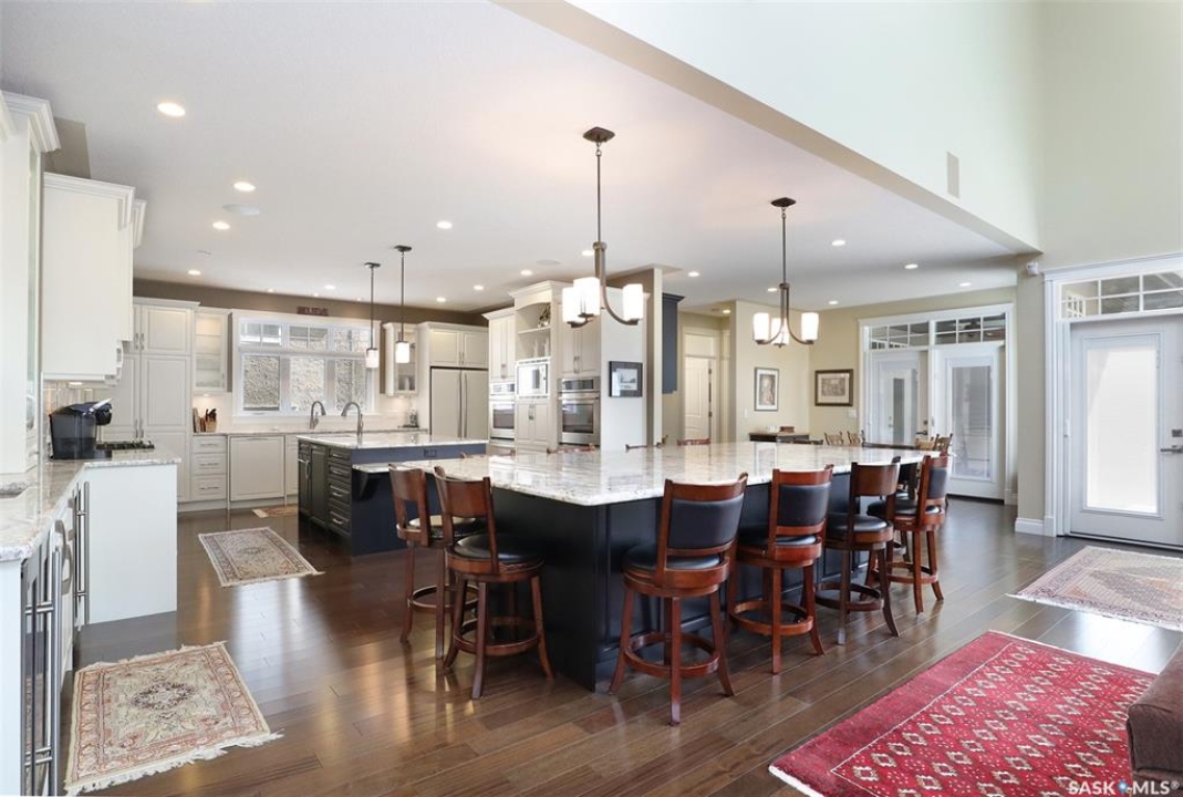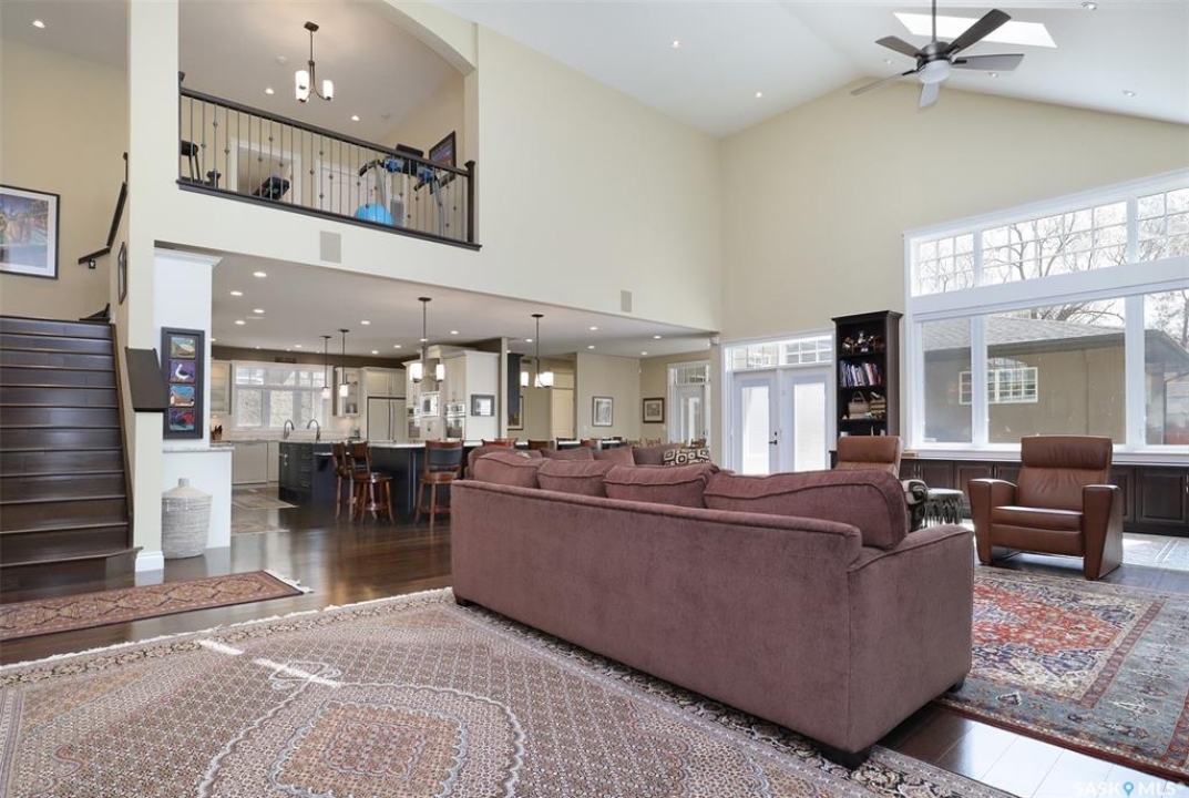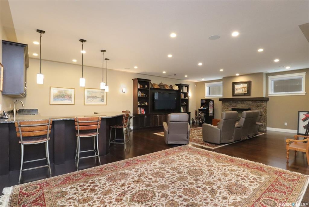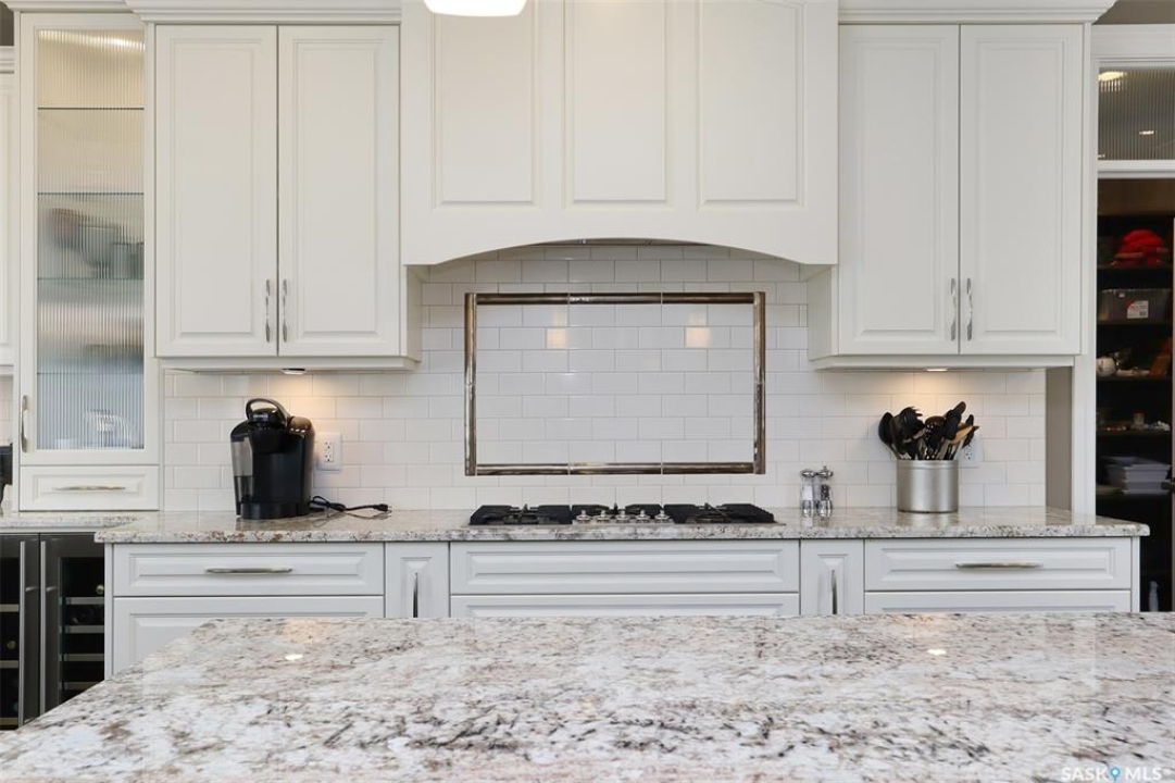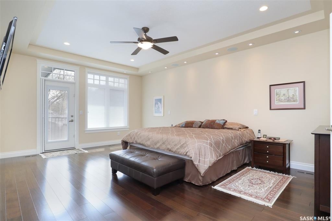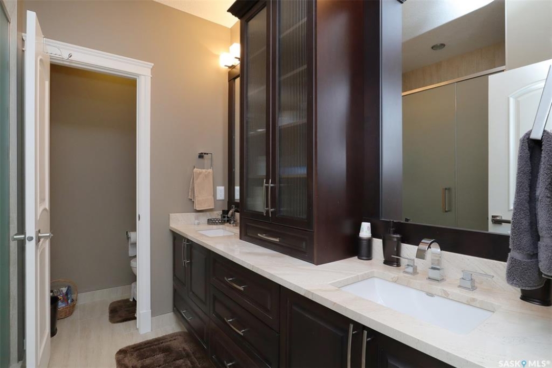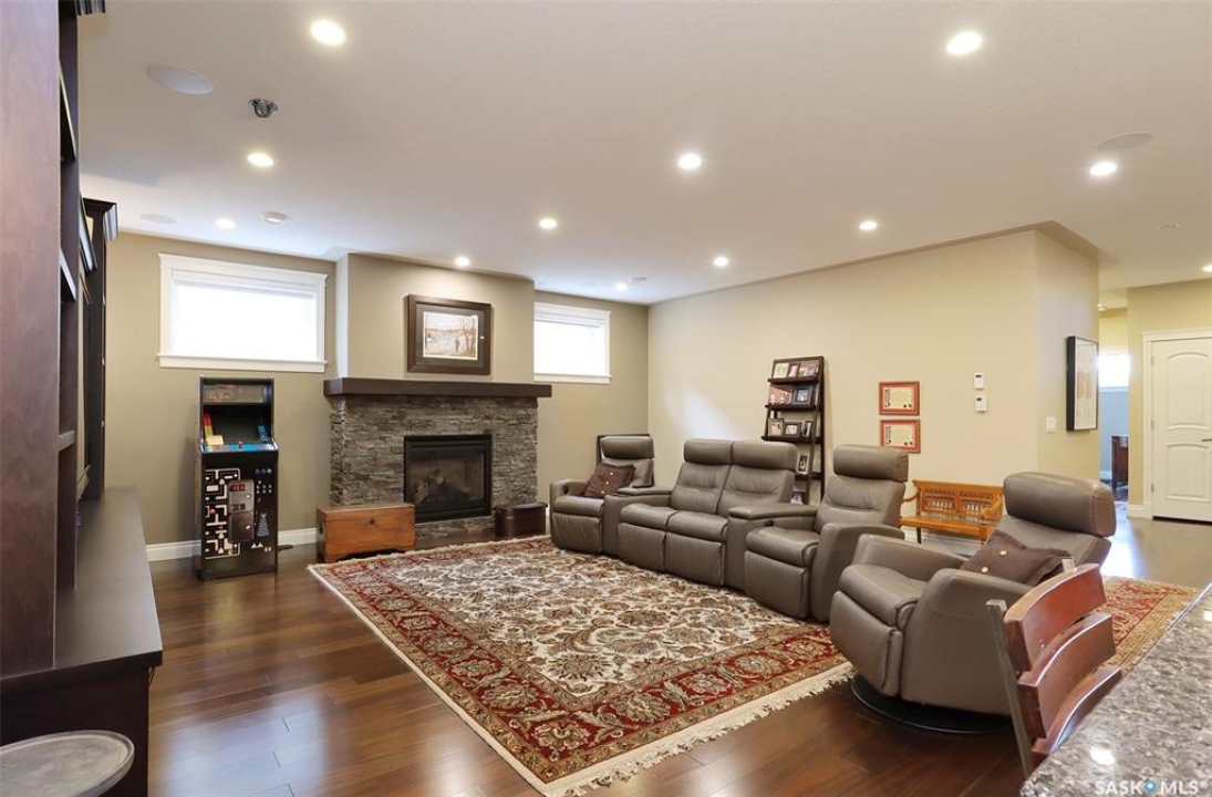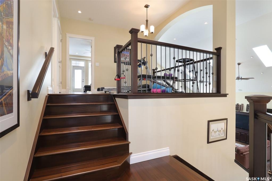One of kind custom built by Ripplinger Homes a stunning 4100 sq. ft. on 2 levels located on one of the prestigious streets of Regina, within walking distance to Wascana Park. Attention to detail throughout the entire home from pilings under the foundation to top of the line fixtures. Entering the home you are greeted by 2-4 foot leaded glass doors leading into the grand foyer. A large walk-in closet and adjacent is the office. Flooring throughout the house is engineered Brazilian hardwood. The kitchen is a chefs delight: two separate granite top islands, one is a working station and the other will accommodate 12 people comfortably. there are 2 wall ovens, 2 built-in dishwashers, 2 walk-in pantries flanked on each side of the preparation area. 2 new wine coolers, 2 garden doors leading onto a covered 12x16 deck with radiant heat, a remote controlled screen to protect the covered area from the elements. 24x24 slate flooring deck. The formal dining room has a 11 foot ceiling with a 3 sided gas fireplace. Vaulted ceilings in the great room boasting sky lights allowing natural sunlight in throughout the day. The primary bedroom features a 5 pce. ensuite with in floor heated marble floors. Large walk-in closet and garden door leading onto a private balcony. There is a 2nd bedroom, laundry room and loft on the upper level. The lower level is professionally developed by the builder with an additional 2000 sq. ft and 9 foot ceilings featuring 3 additional bedrooms, den, 2-4 pce bathrooms, laundry room, large storage room and mechanical room. The rec. room provides the new owner with a walk up granite top bar with a built-in dishwasher, microwave, wine cooler and fridge. Gas fireplace in the lounging area, plenty of storage room complete with 2 high energy gas furnaces, 2 air handlers, on demand hot water heater, in floor heat, control 4 sound system throughout the house, 2 air conditioners, 200 amp and 100 amp service. 3 car heated attached garage.