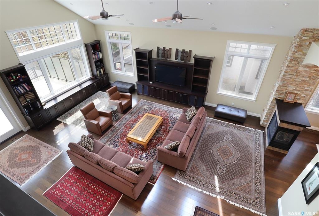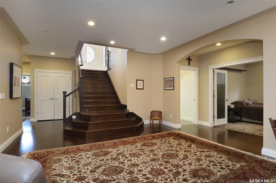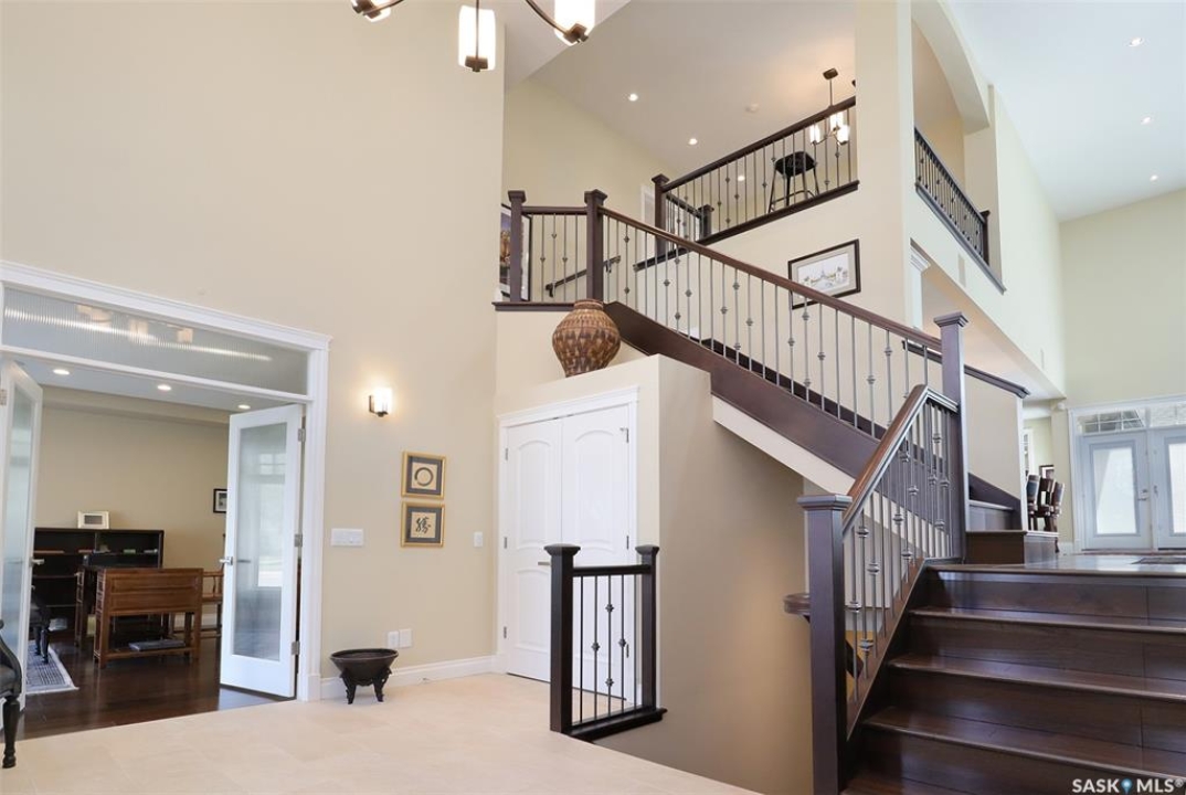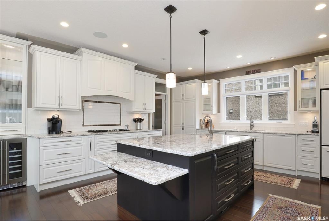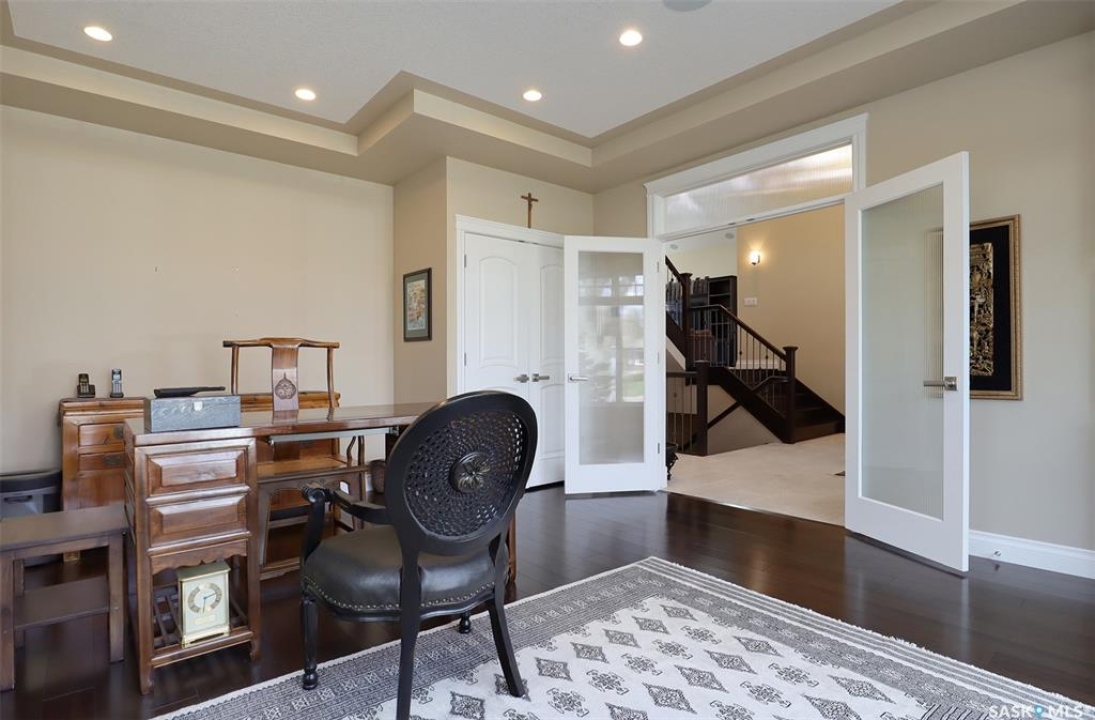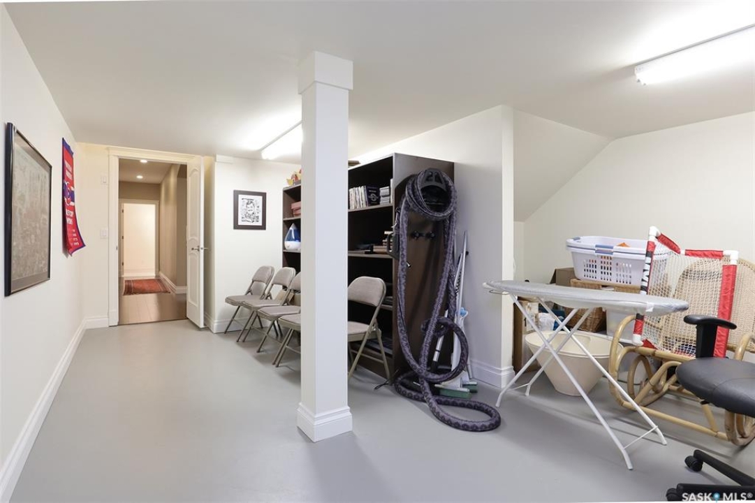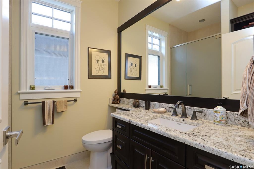 One of kind custom built by Ripplinger Homes a stunning 4100 sq. ft. on 2 levels located on one of the prestigious streets of Regina, within walking distance to Wascana Park. Attention to detail throughout the entire home from pilings under the foundation to top of the line fixtures. Entering the home you are greeted by 2-4 foot leaded glass doors leading into the grand foyer. A large walk-in closet and adjacent is the office. Flooring throughout the house is engineered Brazilian hardwood. The kitchen is a chefs delight: two separate granite top islands, one is a working station and the other will accommodate 12 people comfortably. there are 2 wall ovens, 2 built-in dishwashers, 2 walk-in pantries flanked on each side of the preparation area. 2 new wine coolers, 2 garden doors leading onto a covered 12x16 deck with radiant heat, a remote controlled screen to protect the covered area from the elements. 24x24 slate flooring deck. The formal dining room has a 11 foot ceiling with a 3 sided gas fireplace. Vaulted ceilings in the great room boasting sky lights allowing natural sunlight in throughout the day. The primary bedroom features a 5 pce. ensuite with in floor heated marble floors. Large walk-in closet and garden door leading onto a private balcony. There is a 2nd bedroom, laundry room and loft on the upper level. The lower level is professionally developed by the builder with an additional 2000 sq. ft and 9 foot ceilings featuring 3 additional bedrooms, den, 2-4 pce bathrooms, laundry room, large storage room and mechanical room. The rec. room provides the new owner with a walk up granite top bar with a built-in dishwasher, microwave, wine cooler and fridge. Gas fireplace in the lounging area, plenty of storage room complete with 2 high energy gas furnaces, 2 air handlers, on demand hot water heater, in floor heat, control 4 sound system throughout the house, 2 air conditioners, 200 amp and 100 amp service. 3 car heated attached garage.