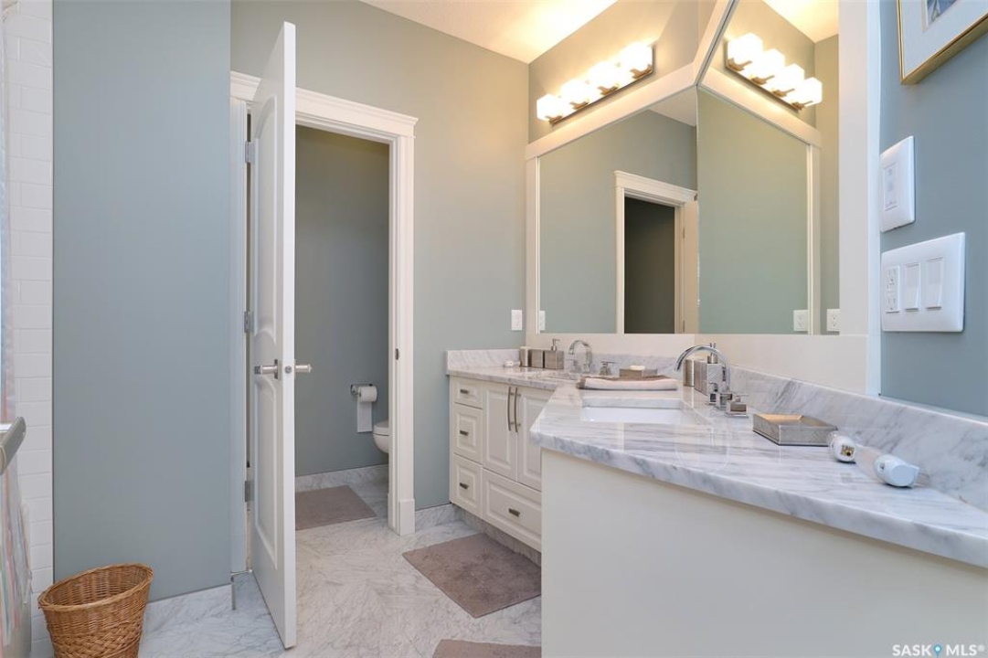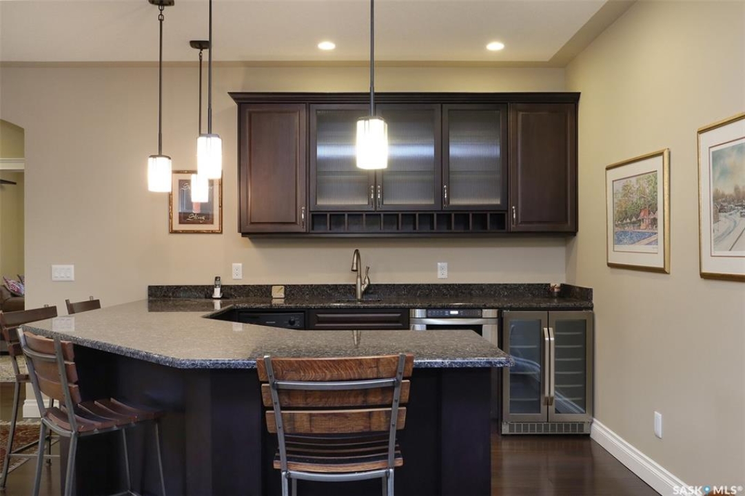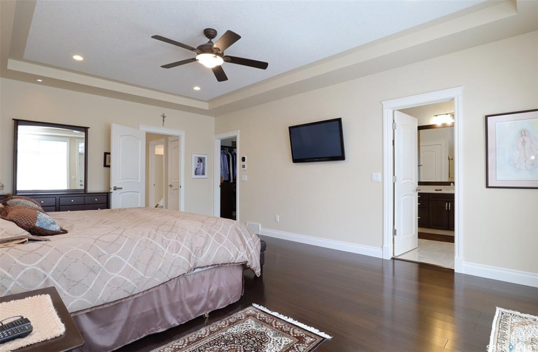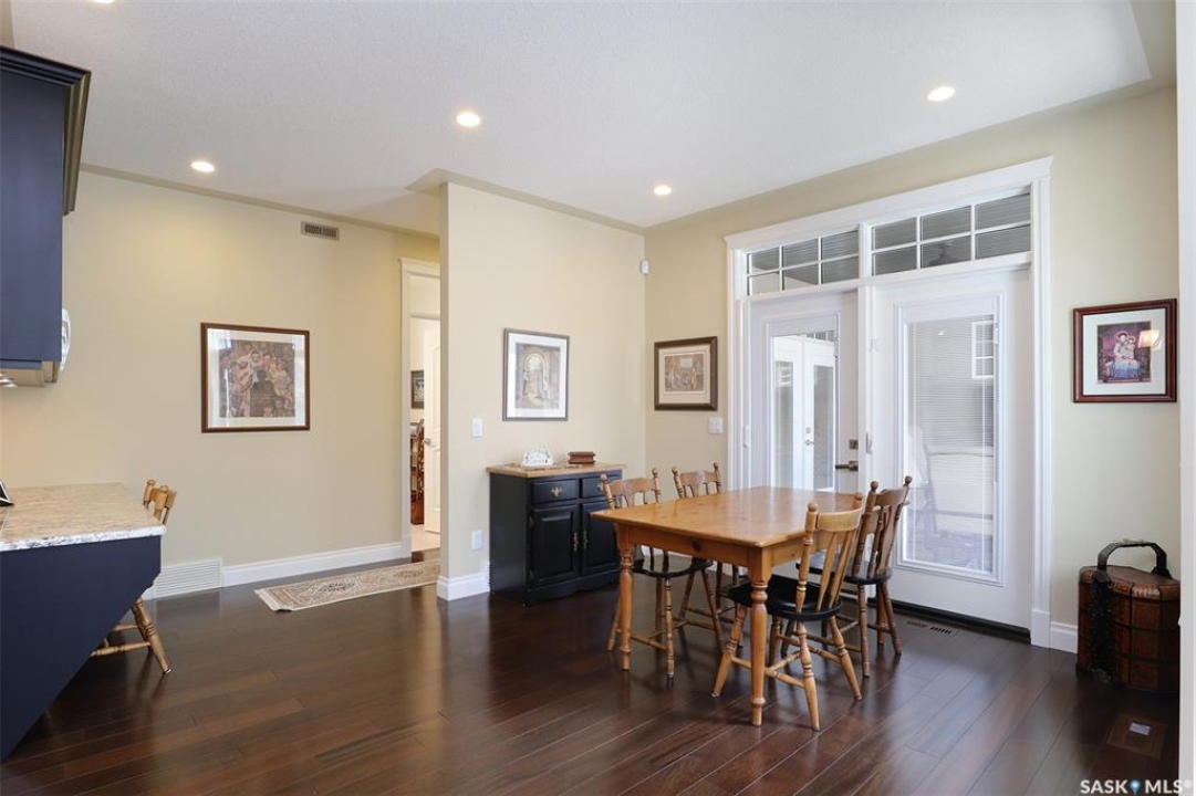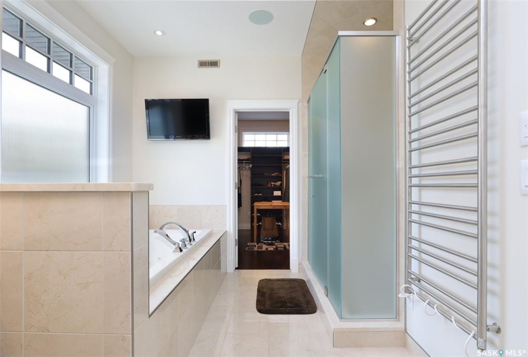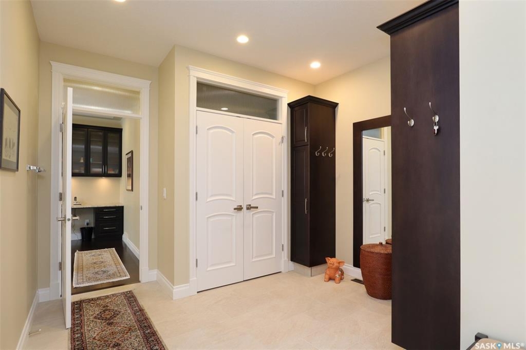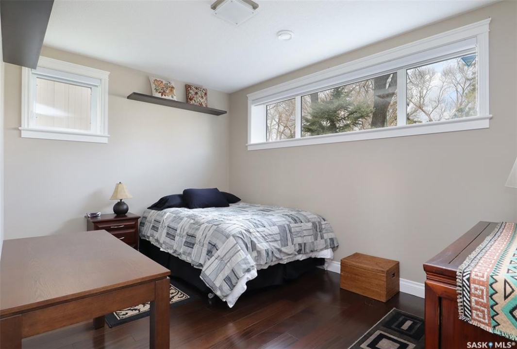 One of kind custom built by Ripplinger Homes a stunning 4100 sq. ft. on 2 levels located on one of the prestigious streets of Regina, within walking distance to Wascana Park. Attention to detail throughout the entire home from pilings under the foundation to top of the line fixtures. Entering the home you are greeted by 2-4 foot leaded glass doors leading into the grand foyer. A large walk-in closet and adjacent is the office. Flooring throughout the house is engineered Brazilian hardwood. The kitchen is a chefs delight: two separate granite top islands, one is a working station and the other will accommodate 12 people comfortably. there are 2 wall ovens, 2 built-in dishwashers, 2 walk-in pantries flanked on each side of the preparation area. 2 new wine coolers, 2 garden doors leading onto a covered 12x16 deck with radiant heat, a remote controlled screen to protect the covered area from the elements. 24x24 slate flooring deck. The formal dining room has a 11 foot ceiling with a 3 sided gas fireplace. Vaulted ceilings in the great room boasting sky lights allowing natural sunlight in throughout the day. The primary bedroom features a 5 pce. ensuite with in floor heated marble floors. Large walk-in closet and garden door leading onto a private balcony. There is a 2nd bedroom, laundry room and loft on the upper level. The lower level is professionally developed by the builder with an additional 2000 sq. ft and 9 foot ceilings featuring 3 additional bedrooms, den, 2-4 pce bathrooms, laundry room, large storage room and mechanical room. The rec. room provides the new owner with a walk up granite top bar with a built-in dishwasher, microwave, wine cooler and fridge. Gas fireplace in the lounging area, plenty of storage room complete with 2 high energy gas furnaces, 2 air handlers, on demand hot water heater, in floor heat, control 4 sound system throughout the house, 2 air conditioners, 200 amp and 100 amp service. 3 car heated attached garage.