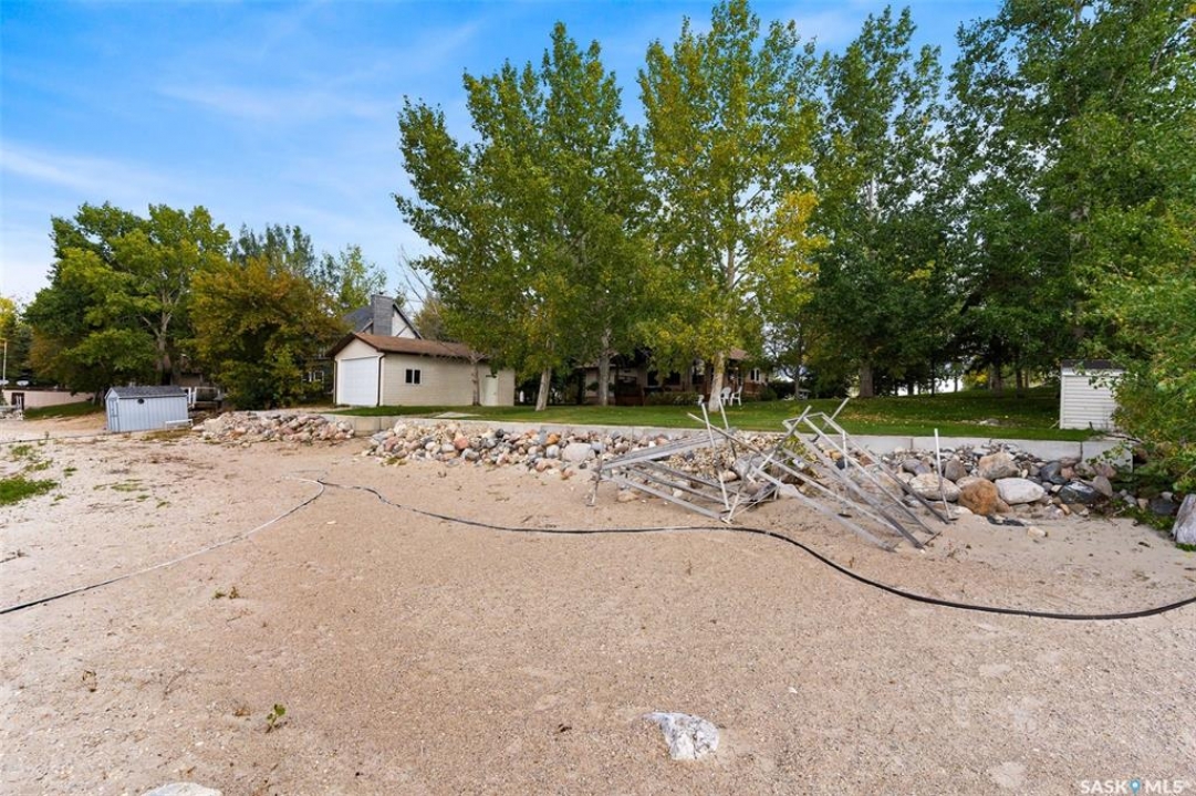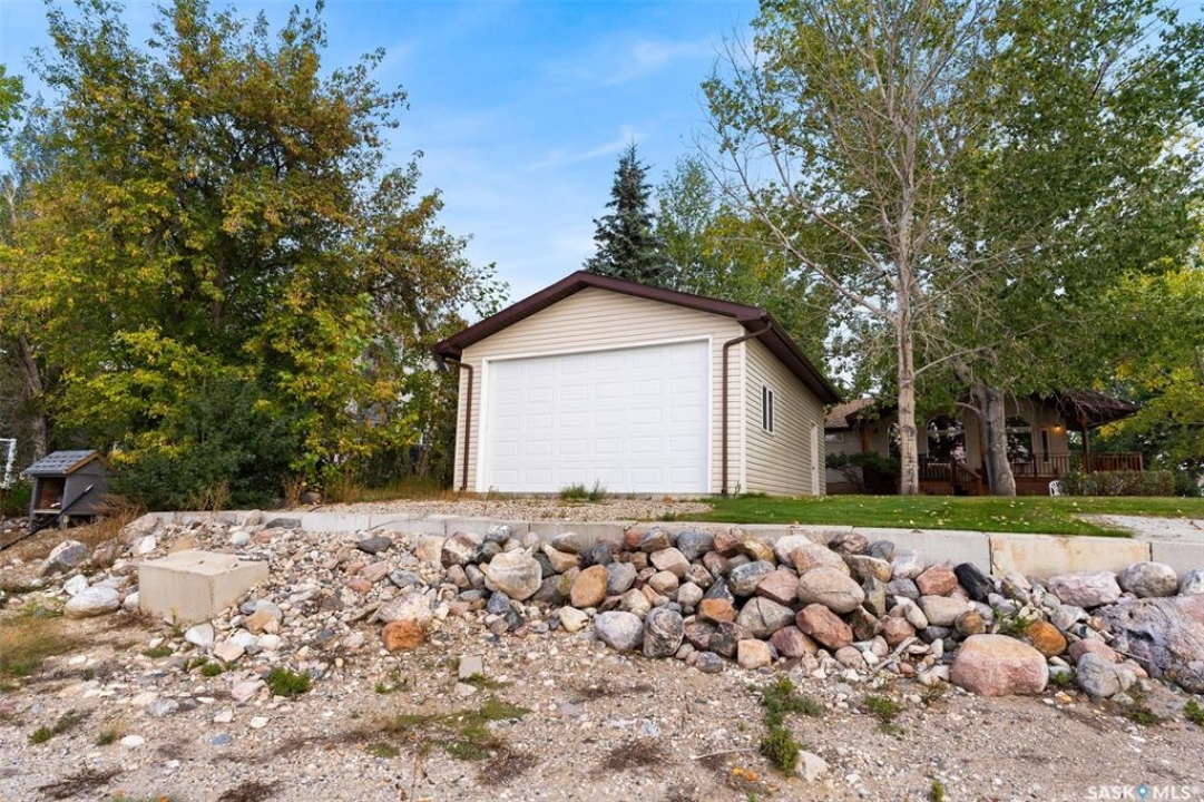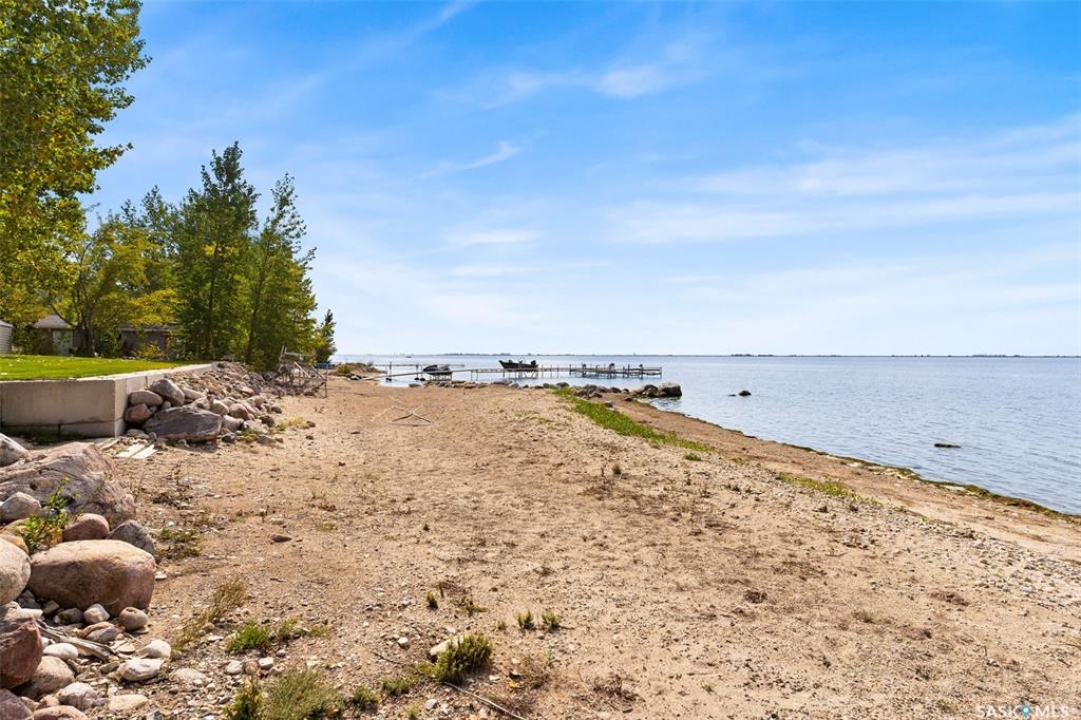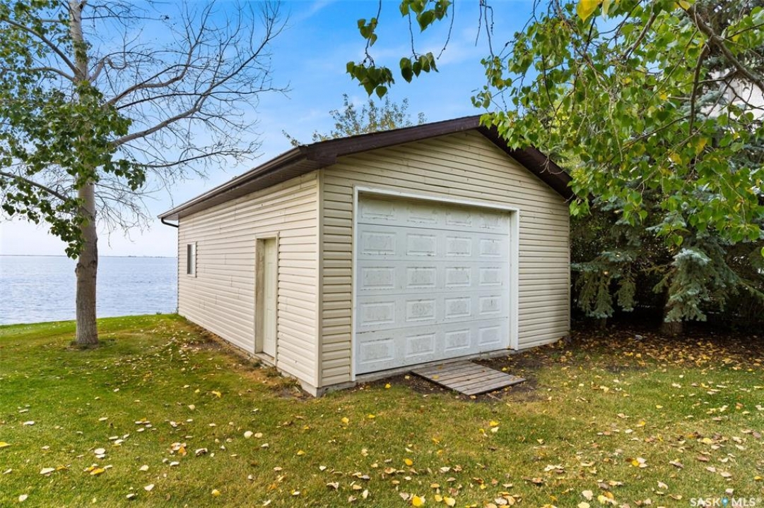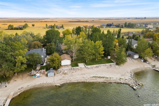 Check out this Fabulous AAA waterfront property (144' of sandy beach) with oversize double car garage and an additional boathouse garage at Collingwood Lakeshore Estates just 1 hour North of Regina on Last Mountain lake. There is an ADDITIONAL titled lot across the street for future building or additional parking and storage that is included in the sale. This beautiful fully landscaped yard is so private with mature trees, underground sprinklers and numerous patios totalling just over a 1 acre land. Walking up to this 4 season home you automatically see has so much the property has to offer with a beautiful covered private deck just off the front entry which is absolutely perfect for those morning coffees. The smart design of the house gives you breathtaking west views of the lake. Stepping into the foyer you immediately see the modern entertainers kitchen which overlooks the livingroom and dining room with 14' vaulted ceiling with feature natural gas fireplace all overlooking west views of the lake the lake with oversize windows. The fabulous kitchen with granite countertops has a large breakfast island and comes complete with stove, fridge, built in dishwasher and microwave hood fan. The dining area is conveniently set off to the front and side of the great room with direct exit to another covered deck. The large primary bedroom has a convenient 3 piece ensuite. There are 2 additional bedrooms, 4 piece bath and a laundry /storage room that completes the home. The detached drive thru boat house garage is perfect for all of your toys. The detached double car main garage is also heated. This home is an absolute gem and is such a pleasure to show. For a virtual walkthru please click on link or view https://unbranded.youriguide.com/194_gordon_drive_collingwood_sk/