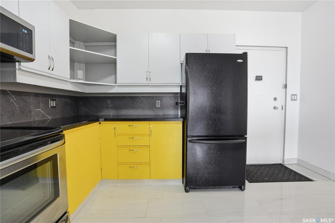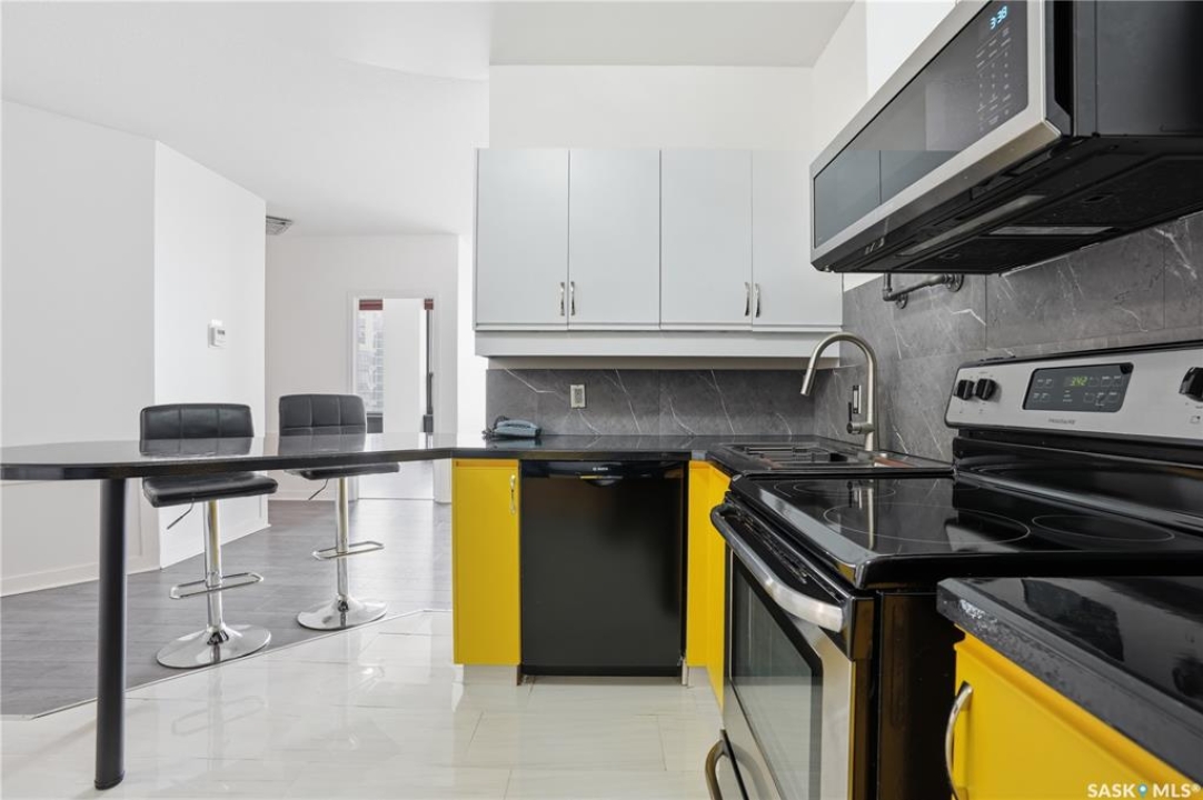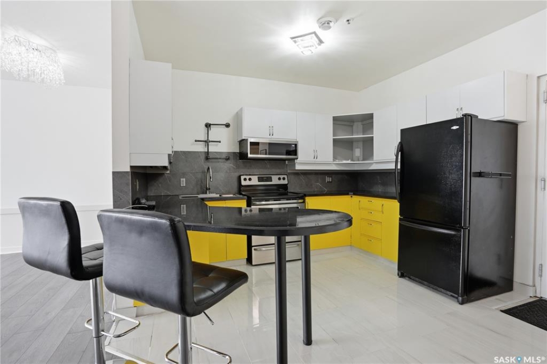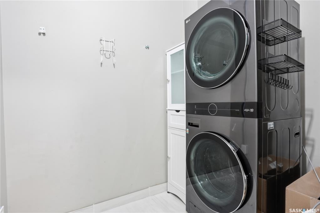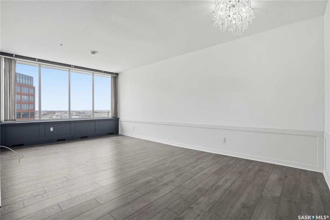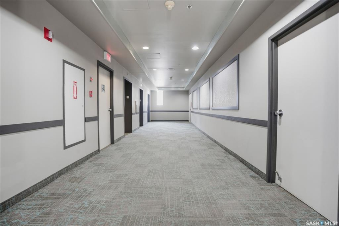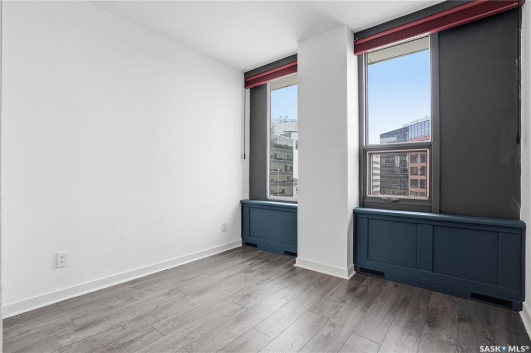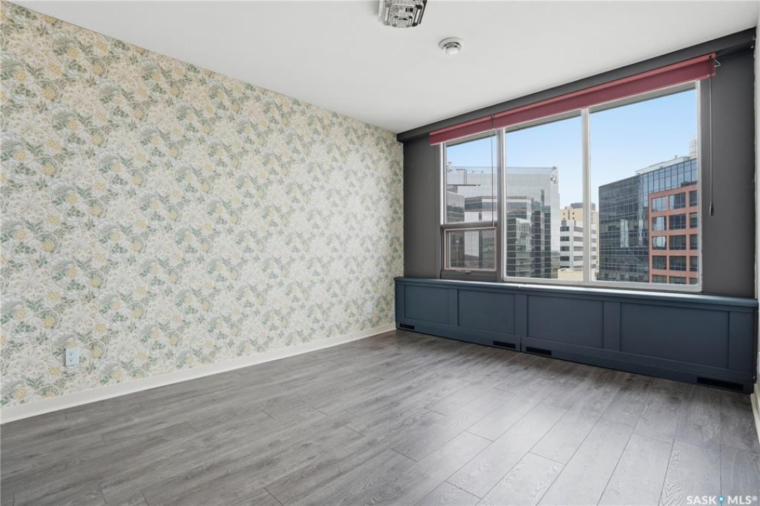 For the modern professional who prioritizes efficiency and security, this 1,019-square-foot residence in the iconic Hamilton building delivers a high-functioning "lock-and-leave" lifestyle in the heart of downtown Regina. The interior has been methodically updated to a professional standard, featuring fresh paint and new laminate flooring throughout to create a bright, modern, and immediate-occupancy environment. The kitchen is designed for maximum utility with ample cabinetry, stainless steel appliances, ceramic tiled flooring and a built-in dishwasher, complemented by a main bathroom that has been upgraded with a new vanity, fixtures, and backsplash. The layout includes two generous bedrooms positioned to capture expansive north-facing city views, with the primary suite serving as a dedicated retreat featuring a private 4-piece ensuite and stylish feature wallpaper. Modern technical integration is a key highlight, with smart plugs, smart light switches, and custom blinds installed throughout to ensure seamless control of the home environment. Beyond the unit itself, the Hamilton provides a managed living experience characterized by the professional concierge service. This infrastructure is supported by a comprehensive suite of amenities including a fully equipped fitness centre, designated storage, and a maintained outdoor patio area with BBQ and hot tub. Just imagine the peace of mind that comes from a home that is as secure as it is sophisticated, allowing you to transition effortlessly between your professional commitments and your private life.