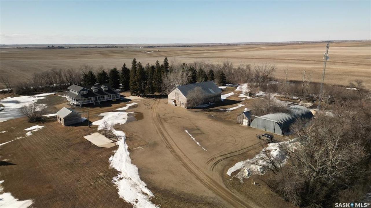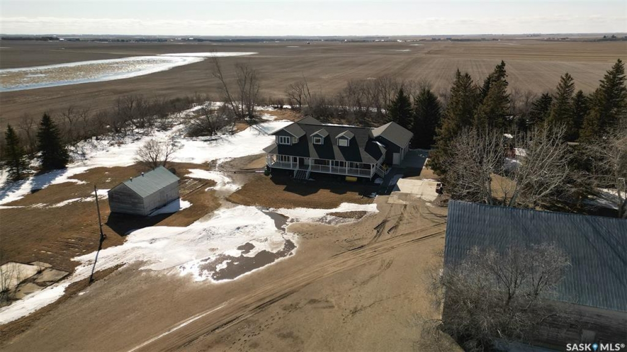 Welcome to the Bruce Acreage located just North of the Sherwood Forest Rd & Armour Rd, NW of the City of Regina, Sk. just minutes away from the Sherwood Forest 9 hole golf course and the new Costco currently under construct. Built in 2017, this 3 bed. Custom Nelson package on 19.29 acres features a direct entry att. 3 car garage, energy walls with additional 2" Styrofoam insulation, Hardie board siding, 2 full baths, 2 l/2 baths plus a upstairs games room that includes a pool table. Mature landscaping of evergreens, poplars & assorted shrubs along with out builds. that consist of a 36' x 30' bungalow converted to a heated workshop, metal clad roof barn 40' x 70' that still has the stalls in it, ideal for horses, etc. metal Quonset–35' x 70', another workshop 14' x 24' & garden area. Building just by the house will be removed. The mature landscaping on the south side of the property is on the neighbouring � and new owners will be able to use the shade of the trees plus the lawn. The current owners keep the grass mowed. No easement at present just a hand shake agreement for the use. The remaining 10 cultivated acres that belong to the acreage are rented out on a year to year basis. Crop belongs to the tenant. Owners receive a cash rent. Features: Triple glazed JELD-WEN windows, Hardie board siding, Kinetico water softener, Viqua Ultra Violet water treatment system, Culligan R/O system. UV & RO systems were installed in 2020. Lennox high effi. furnace & Lennox c/air, Kitchen Craft custom built cupboards with quartz counter top, large island, gas stove, refrig., dish washer, wine fridge, main floor laundry appliances new in 2025, 3 person energy efficient low EMF FAR Infrared sauna, basement upright freezer, basement refrig. wrap around deck, 160 foot well, septic system installed in 2016. TV is satellite–Shaw & there is an internet tower in the yard. Awaiting new owners. For further information or a viewing contact the selling agent or your real estate agent.