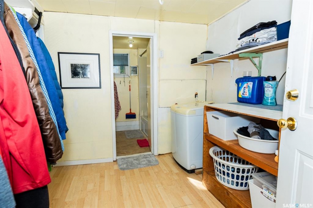 Tiny house.. approx. 560 sq. ft. Large lot: 112.5 x 120. with a 10 x 20 outbuilding. The owner is selling as is, some furniture, dishes, if the buyer wants these items, they will be included. 2 beds, 2 baths. 560 sq. ft. bungalow. Basement has a separate entrance, owner has rented this out in the past. Ceiling height is lower than 8 ft. in this home, does not show in the photos. Potentially there is a large pavement levy of $20,000+. Buyer should consult with the Town of Kerrobert admin. regarding the pavement levy and how it may affect this property If you are unable to view this property in person, you will require a different realtor than the listing realtor to offer on this property.