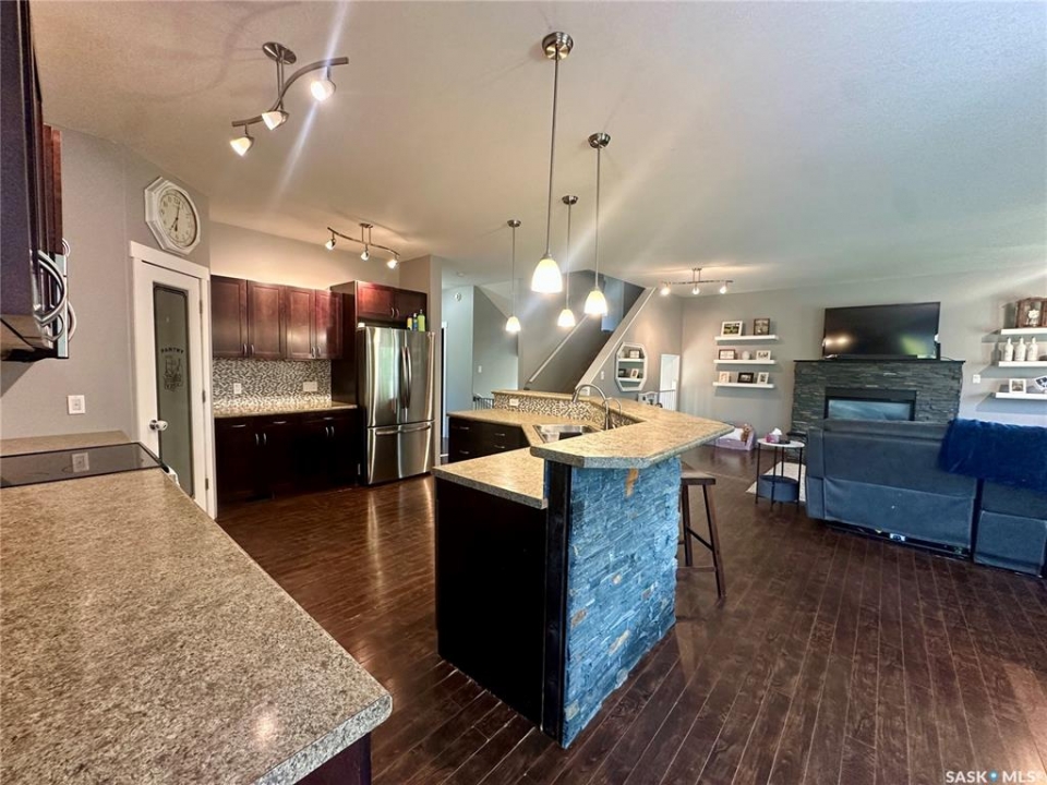 Welcome to this incredibly spacious 3,322sqft. 4-level split home nestled on a private 1.91-acre lot on the edge of town. With 7 bedrooms and 4 bathrooms, this property offers plenty of space and flexibility for a large or growing family. The main floor features an open-concept layout with a bright and spacious living room with gas fireplace, dining area and kitchen. The kitchen is equipped with a large island with bar seating, a walk-in pantry and direct access to the deck – perfect for entertaining. A main floor bedroom and home office finish off the space. Just a few steps down, you'll find a mudroom, a 4PC bathroom, and access to the double attached garage, yard and basement. Second level offers even more living space with a cozy recreational room and three additional bedrooms. The third level is a standout featuring a large laundry room with sink, another bedroom, a 5PC bathroom and the show stopping primary bedroom. The primary bedroom is massive, with a walk-in closet and luxurious 5PC ensuite, including a jetted tub and walk-in shower. The basement offers excellent suite potential with its own full-size kitchen, living room with gas fireplace roughed in, bedroom and 4PC bathroom. It also includes a utility room and large storage room already plumbed for a second laundry area. Basement also features in-floor heat. The home is serviced by a well and septic system (tank and mound); the mound, well pump and lines from the house have all been replaced. Plumbing throughout the home has been replaced, including new gas boiler system, on demand hot water tank, and water softener. Exterior upgrades included shingles and vinyl siding. The attached garage is insulated and heated and includes a custom exhaust system – ideal for using the smoker year-round, no matter the weather. Outside you will find the large deck overlooking the yard. Yard offers plenty of space for RV parking and garden. Options are unlimited out here. Interested? Contact your agent today!