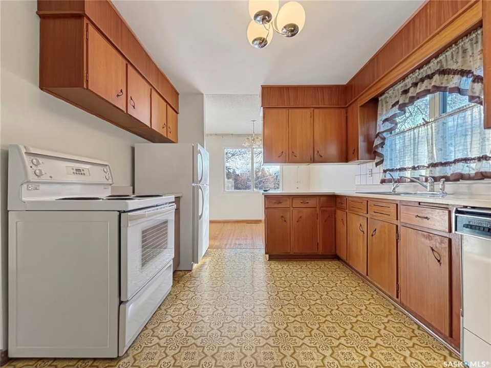 Solid 3+1 bedroom, 2 bath bungalow on a quiet crescent in Westview. Some upgraded windows. Hardwood floor evident in dining room, may be present in living room as well, buyer to verify. Open style mahogany kitchen with eating nook. Basement is fully developed with family room, bedroom, bathroom, workshop, and laundry/utility/storage area. Huge backyard. Single attached garage with door opener. Quick possession date is possible.