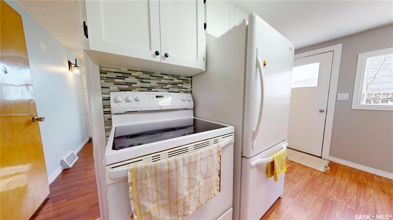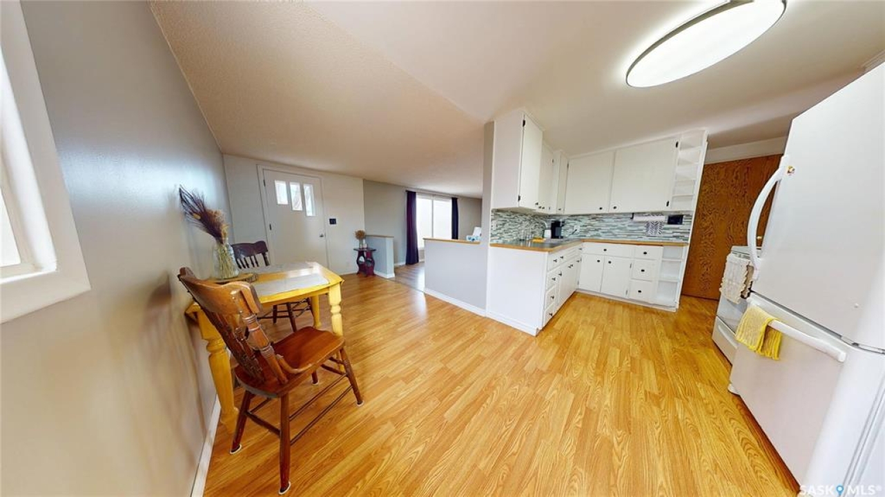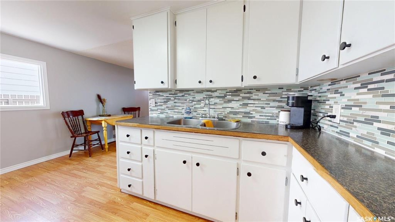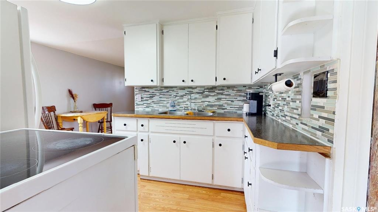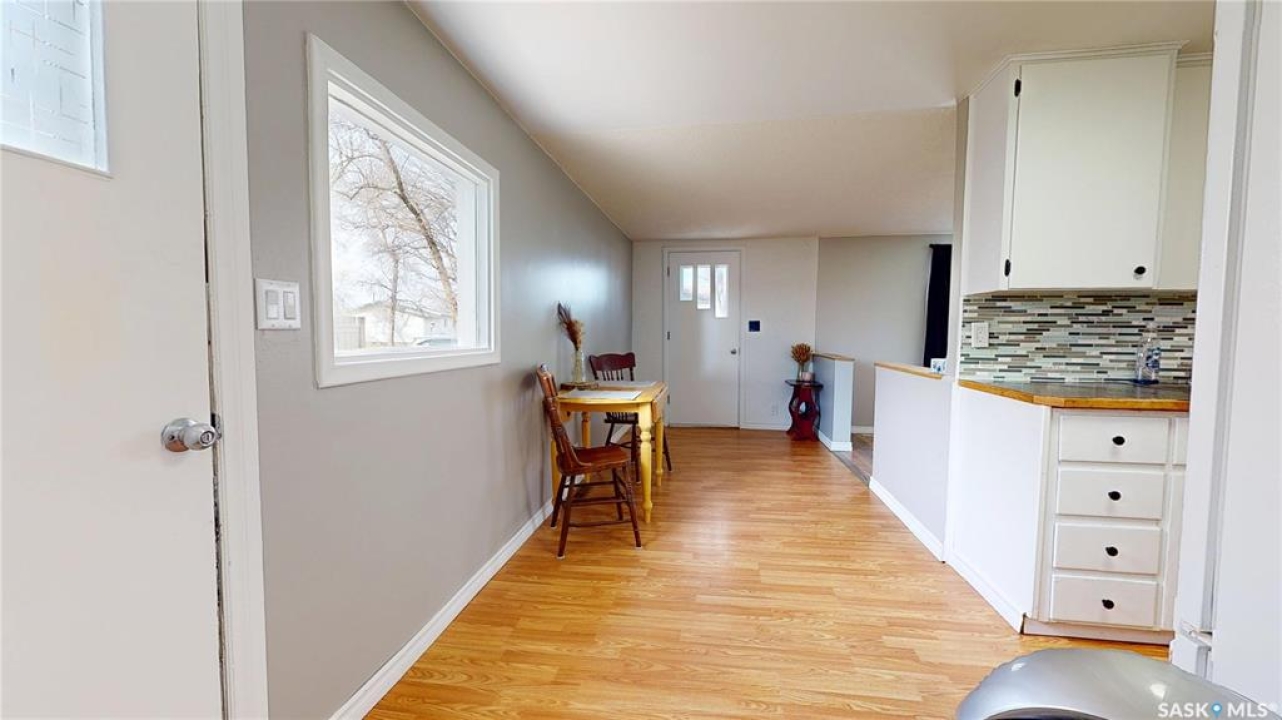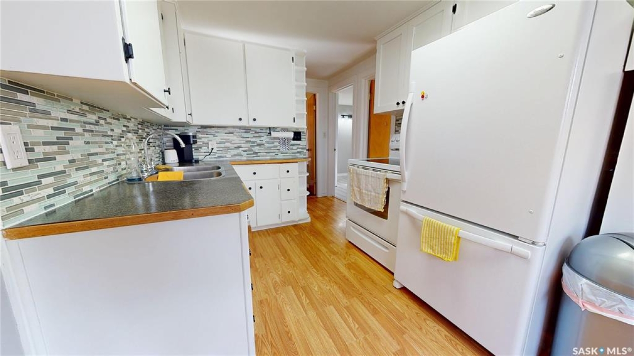 This quaint, move-in-ready home offers an affordable opportunity in the growing community of Maple Creek, just 20 minutes from Cypress Hills and 1 hour from Medicine Hat. Ideal for a single buyer tired of renting or a couple looking to downsize, the home features a bright living room with updated laminate flooring and fresh paint, a functional kitchen with plenty of storage, and a main bedroom that fits a queen bed with updated flooring and window. The second bedroom makes an excellent office or guest room, while the third bedroom off the kitchen offers flexible space for a mudroom, main floor laundry, storage, or bonus area. The 3-piece bathroom is compact but nicely updated with good storage, a new vanity, and updated fixtures. Additional updates include all new light fixtures, fresh paint, furnace (2023), hot water tank (2022), central air/heat pump (2025), and shingles around 2021. The basement provides laundry, storage, and a small bonus space, while outside you'll find a low-maintenance stucco exterior, partially fenced yard, front-drive, additional rear parking, and an older storage shed with room to build a new garage. Priced to sell in today's competitive market.