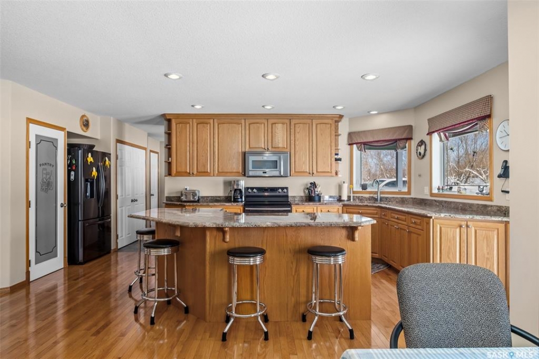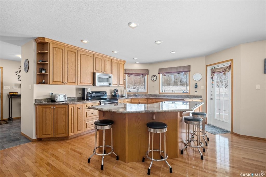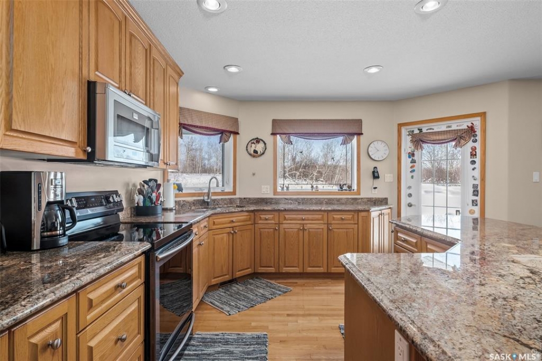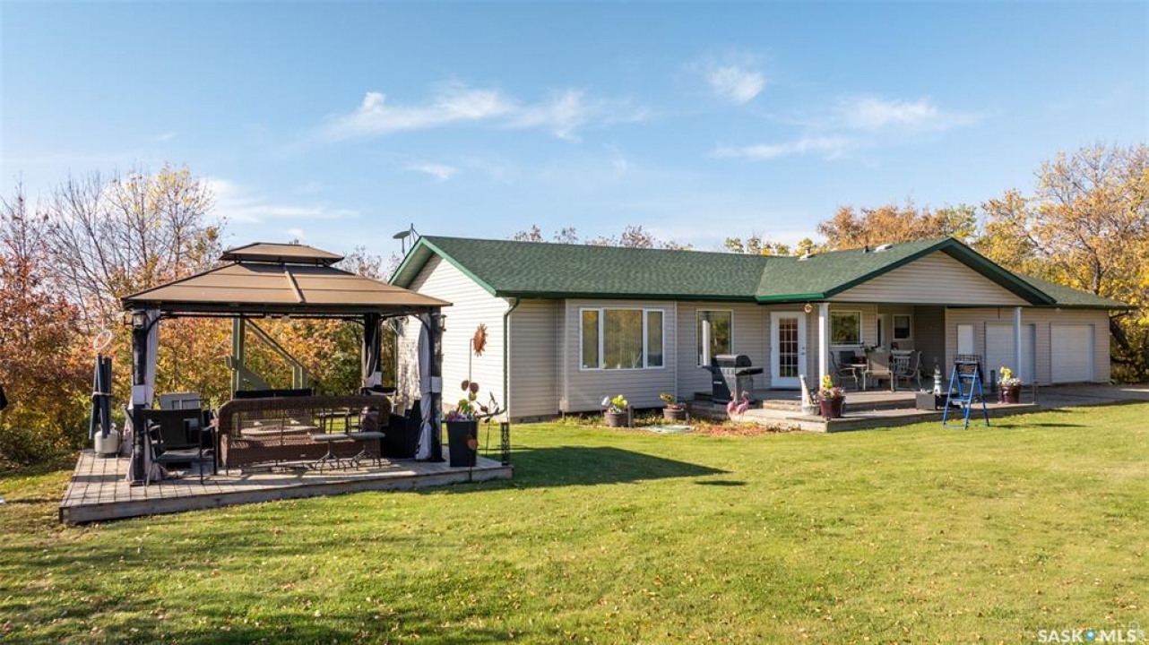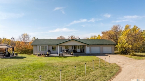 An incredibly hard to find property! Only a few short moments to the city of Prince Albert and the newly developed Yard District this sprawling ranch style acreage rests on 318 acres of land. The residence details 5 bedrooms, 3 bathrooms, 1,506 square feet of living space that is showered with an abundance of warming natural light, city water, lagoon and a 30 x 30 heated (in-floor) attached garage. Additionally, the home features a beautifully upgraded oak kitchen with granite counter tops, stainless appliances, large formal dining area with vast amount of entertainment space throughout the main and lower level. The property provides gated entry, a detached double garage, and beautiful scenery.
