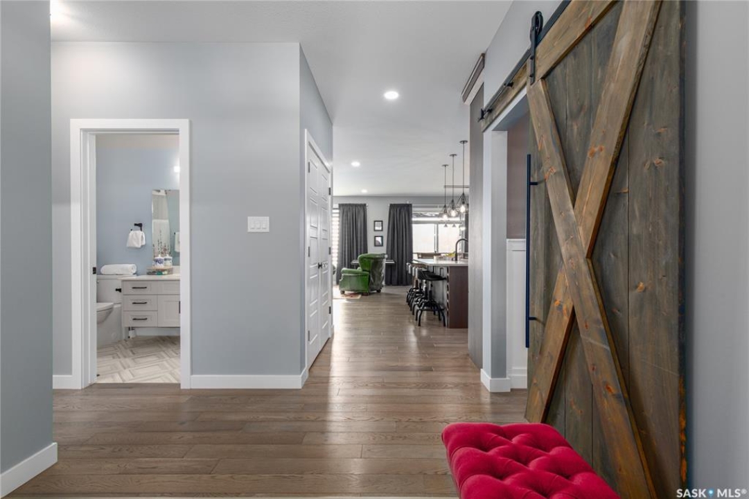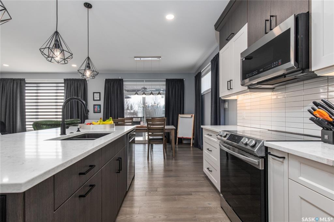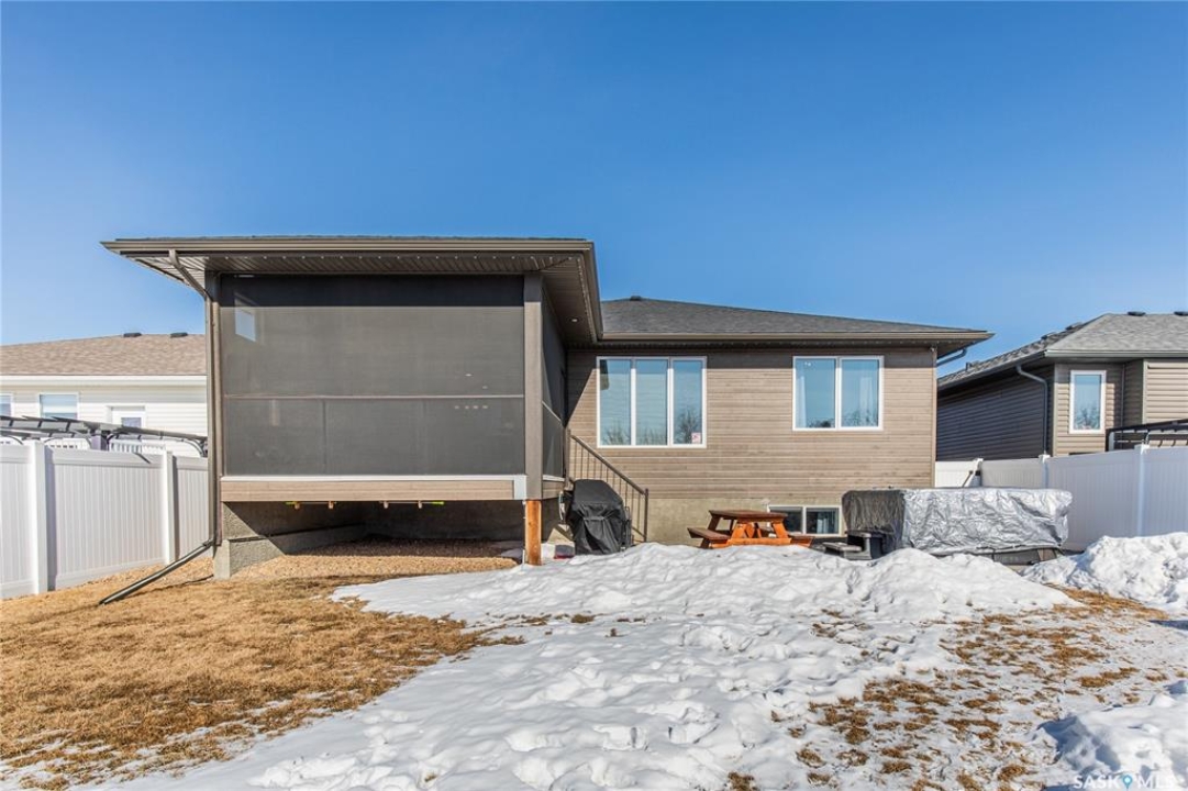 Welcome to this home located in the desirable Westpark neighbourhood of Moose Jaw! Offering over 2,900 sq ft of beautifully finished living space across 2 levels, this property perfectly blends luxury, functionality & modern convenience. Striking curb appeal features durable CanExcel “Snap Lap” siding with stone accents. Inside, a thoughtfully designed layout showcasing custom cabinetry throughout, quartz countertops & under-cabinet lighting. Kitchen has engineered hardwood flooring, a breakfast bar island complete with a BI wine rack & seamless flow into the main living areas. This home offers 4 bedrooms, 3 baths & a dedicated office space -ideal for a work-from-home lifestyle. Main floor laundry for your convenience. Fully developed lower level is perfect for entertaining & relaxation, featuring a family room, games area & a multi-use exercise/media or craft room. Enjoy evenings by the gas fireplace or entertain guests at the wet bar. Step tread lighting adds an extra touch of sophistication and safety. Step outside & experience true outdoor living. Covered deck features a Suncoast enclosure with composite decking, gas fireplace, commercial-grade radiant heater & natural gas hookup - creating the perfect space to entertain or unwind in comfort throughout the seasons. Vinyl-fenced yard offers privacy with no backyard neighbours & includes a paving stone patio, also complete with natural gas hookup. Smart technology underground sprinklers make lawn care effortless & permanent Gemstone lighting enhances the home year-round. Heated double attached garage is fully equipped with an EV charger, 220V plug & wash basin - ideal for projects & convenience. A 75-gallon hot water heater ensures you should never run out of hot water & there's even hot water access outside - perfect for rinsing off after yard work or outdoor activities. This WestPark gem offers practicality, modern finishes & incredible indoor & outdoor living areas - a true must-see! Ask agent for feature sheet