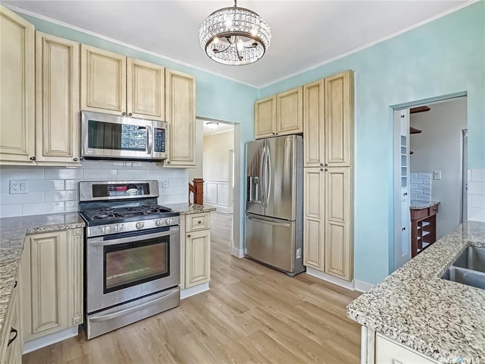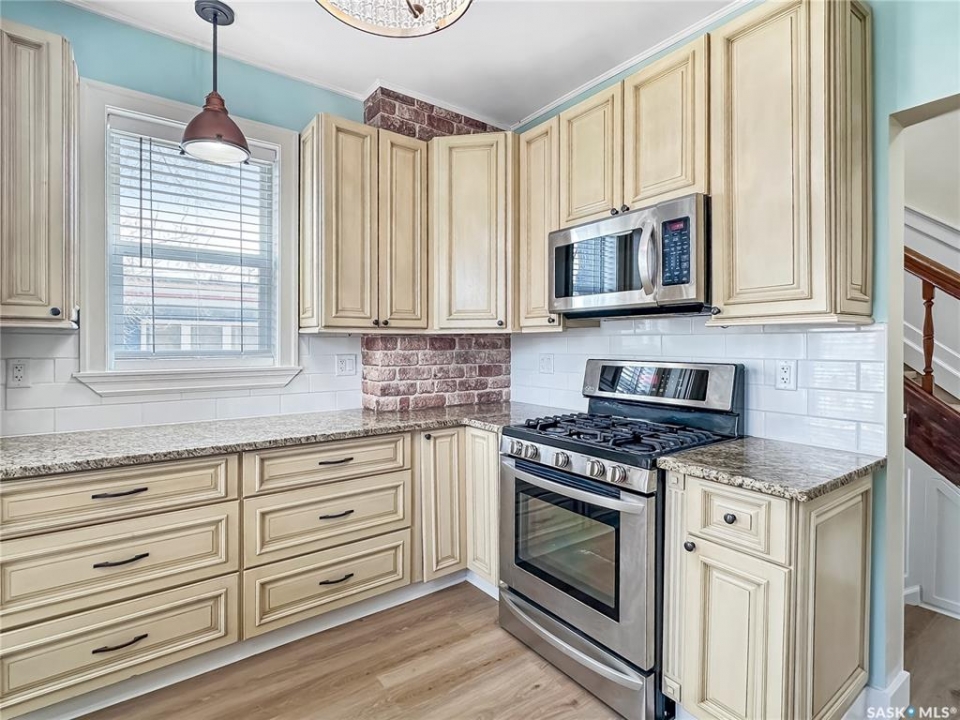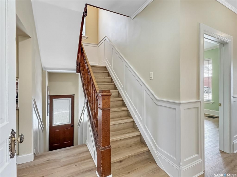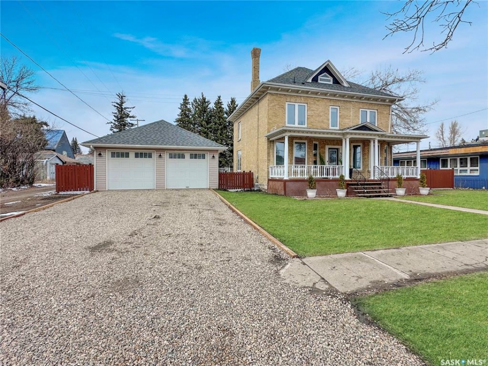 Welcome to this stunning, fully updated century home in the heart of Indian Head, offering 2,248 sq. ft. of thoughtfully designed living space across 2.5 levels, where timeless character and modern luxury come together seamlessly. The main floor is a true showpiece, featuring a beautifully renovated kitchen with granite countertops, updated appliances, and a charming butler's pantry complete with its own sink, perfect for entertaining and everyday convenience. The dining area flows effortlessly into an inviting front sitting room, where classic pocket doors add warmth and distinction. A versatile space near the entrance offers the perfect setting for a home office or reading nook, while a convenient 2-piece bath completes the level. Upstairs, the second floor has been refreshed with new flooring and paint and offers four bedrooms, including an impressive primary suite with a walk-in closet and a private 3-piece ensuite. A well-appointed 4-piece bathroom with in-suite laundry adds both style and function. The third floor is a standout feature, an inspiring loft-style retreat of approximately 325 sq. ft., showcasing vaulted ceilings, exposed beams, and a beautifully finished 3-piece tiled bathroom. Whether used as a guest suite, studio, or personal escape, this space is truly one of a kind. Outside, the home continues to impress with a beautifully landscaped yard, a brick patio perfect for relaxing or entertaining, a double detached garage, and an expansive 100-foot wide lot. Ideally situated just off Grand Avenue, you're only a short walk to schools, the pool, and local rinks, offering the perfect balance of small-town charm and everyday convenience. A rare opportunity to own a turn-key character home with exceptional space, style, and presence. Call you favorite local agents today!