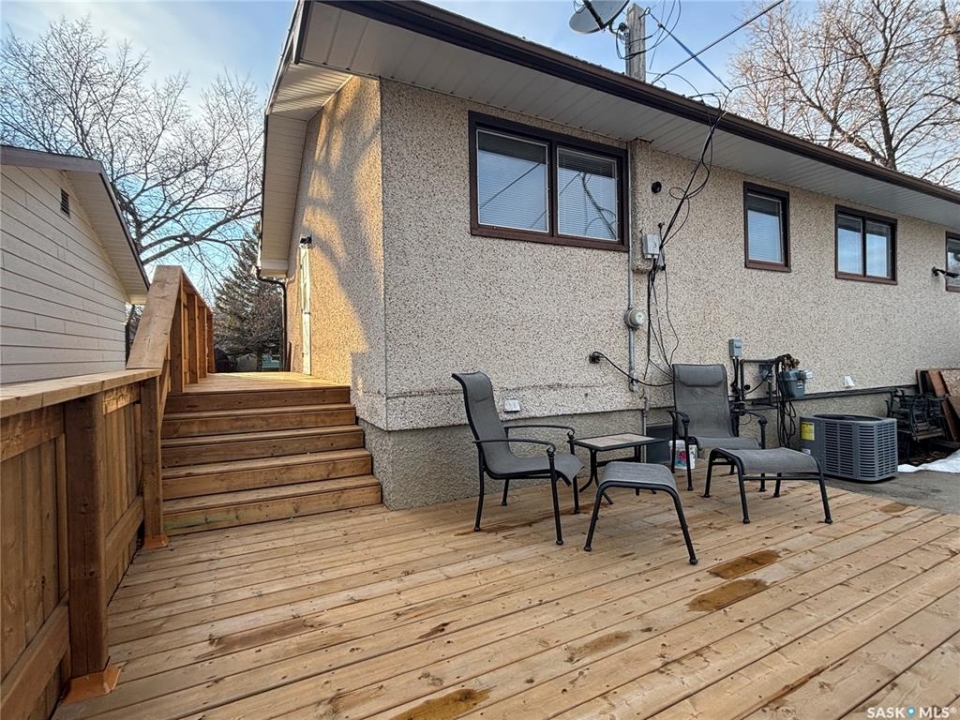 Welcome to this well-maintained home situated on a desirable corner lot, offering excellent curb appeal with its durable stucco exterior and long-lasting metal roof. Enjoy the convenience of ample parking, including a spacious double car garage. Step inside to a bright and inviting main floor featuring a west-facing kitchen and living room, filling the space with beautiful natural light throughout the day. Main floor laundry adds everyday convenience, while recent upgrades such as a new furnace and central air conditioning (September 2025) provide year-round comfort. Outdoor living is a highlight with a brand-new deck—perfect for entertaining or relaxing—alongside a cozy firepit area ideal for evenings with family and friends. The fully developed lower level boasts a large family room, offering plenty of space for recreation or movie nights, as well as a generously sized utility room for additional storage and functionality. Located just minutes from a grocery store and an elementary school, this home combines comfort, practicality, and an unbeatable location—perfect for families or anyone looking for convenience and space. Call today to set up a private tour.