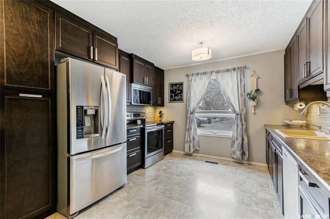 Welcome to 7354 Blakeney Drive, a well-maintained family home located in the desirable neighbourhood of Sherwood Estates in Regina. Known for its quiet, friendly, and safe atmosphere, this area is perfect for families, with nearby schools, parks, and plenty of young families in the community. The Plainsview school bus conveniently stops right across the street, and the home backs onto green space where kids can play safely. You'll also enjoy close proximity to the North West Leisure Centre, YMCA, and a variety of shopping options. Offering 1,652 square feet of living space, this 4-bedroom, 2-bathroom home features a functional and inviting layout. The nicely finished kitchen includes stainless steel appliances and under-cabinet lighting, providing both style and practicality. A sunken living room adds character and offers direct access to the spacious backyard, creating a seamless flow for everyday living and entertaining. Both bathrooms are generously sized and feature full 4-piece layouts, with one conveniently located on the main floor and the other upstairs. The basement remains unfinished, offering excellent additional space and future development potential to suit your needs. The 20 x 24 attached garage comes with the above-head storage and is heated, making it ideal for Saskatchewan winters. Situated on a 5,408 square foot lot, the large backyard backs onto open green space, extending your sense of space while adding privacy. This is a fantastic opportunity to own a family home in a welcoming and well-connected neighbourhood. Call today!